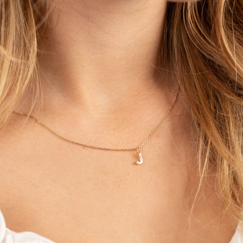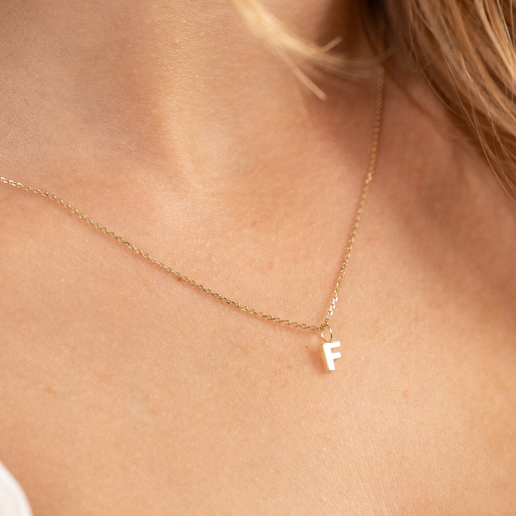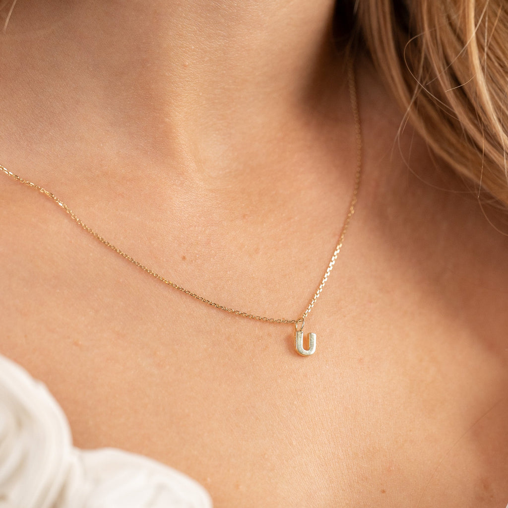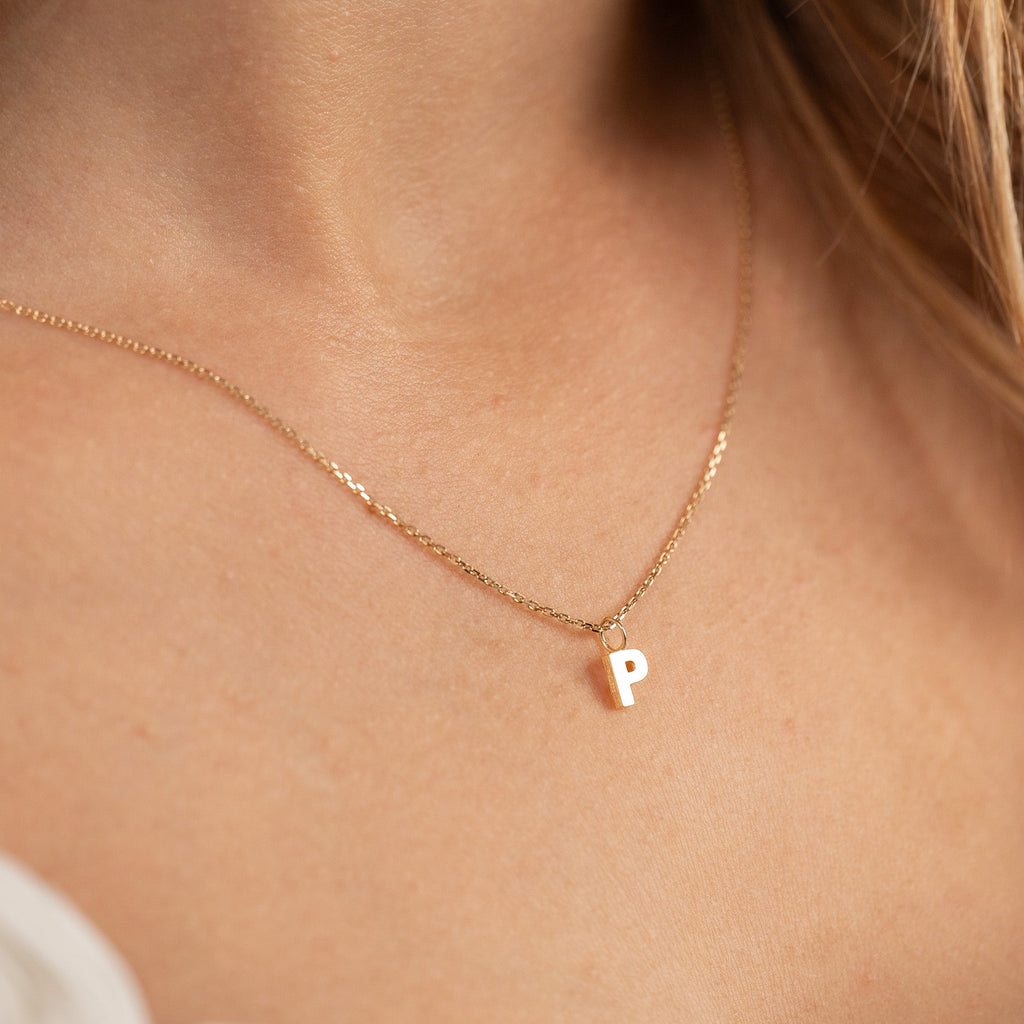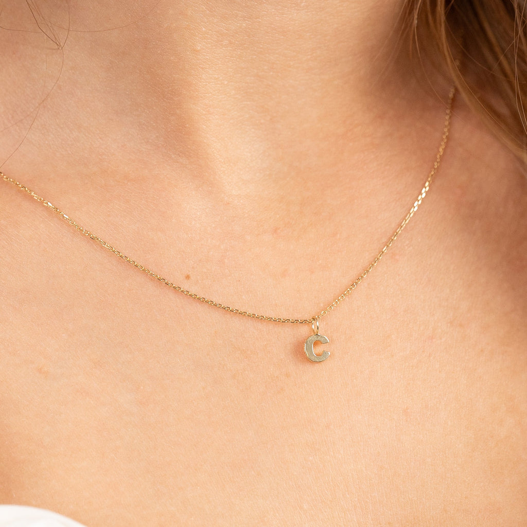 Vårt Letter Solid Gold anheng er laget av 100% resirkulert 9 karat massivt gull. Bokstavene måler 6 mm i høyden.