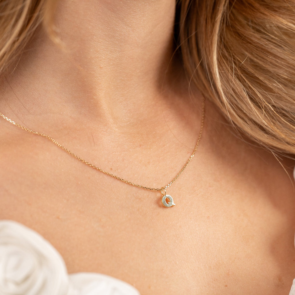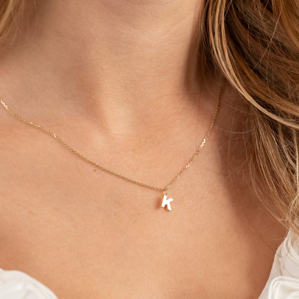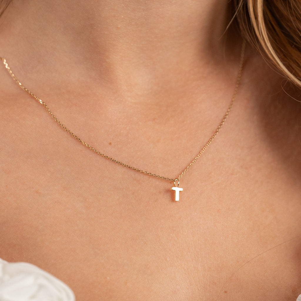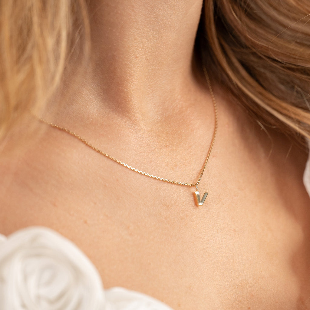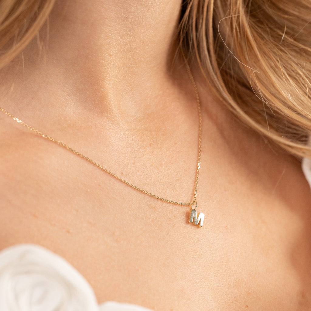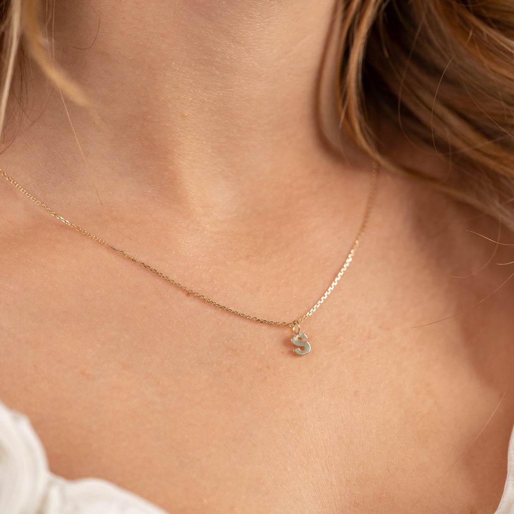 Vårt Letter Solid Gold anheng er laget av 100% resirkulert 9 karat massivt gull. Bokstavene måler 6 mm i høyden.