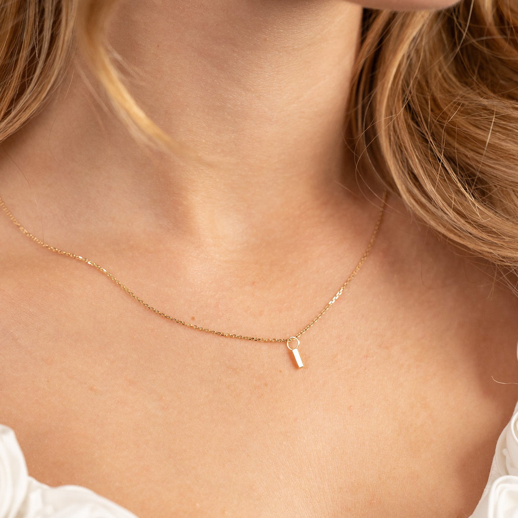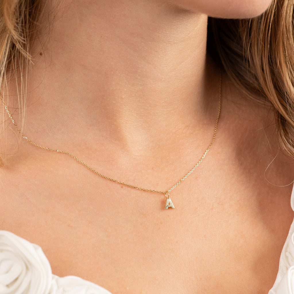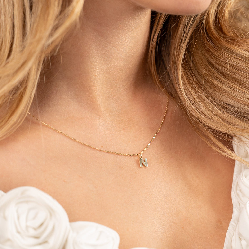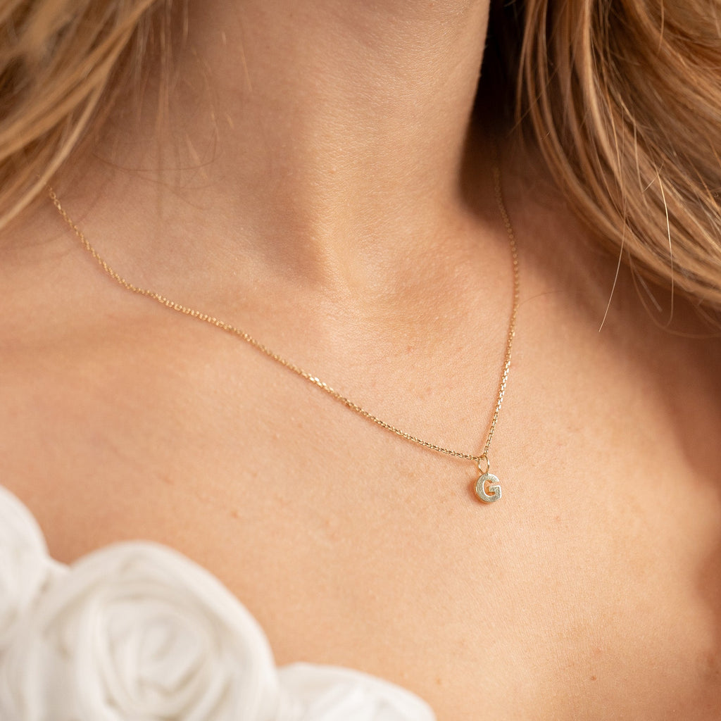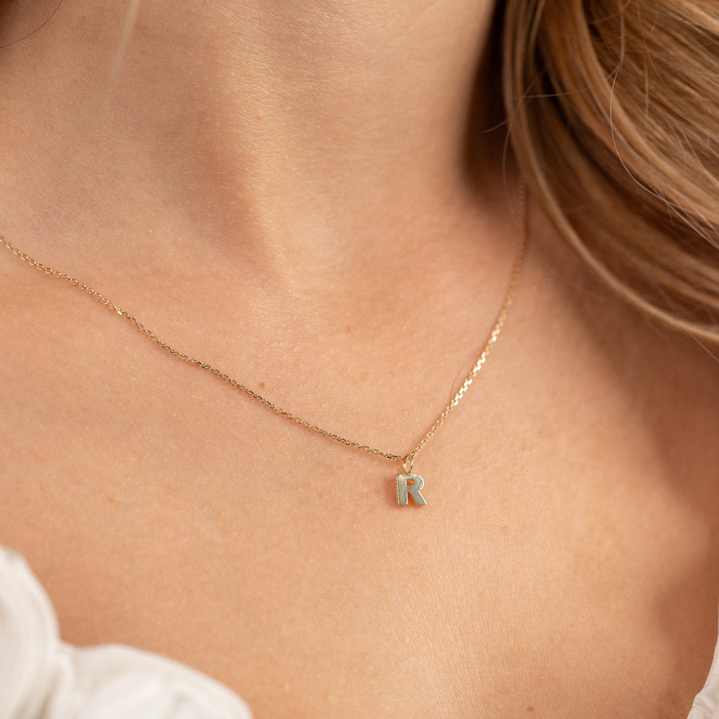 Vårt Letter Solid Gold anheng er laget av 100% resirkulert 9 karat massivt gull. Bokstavene måler 6 mm i høyden.
