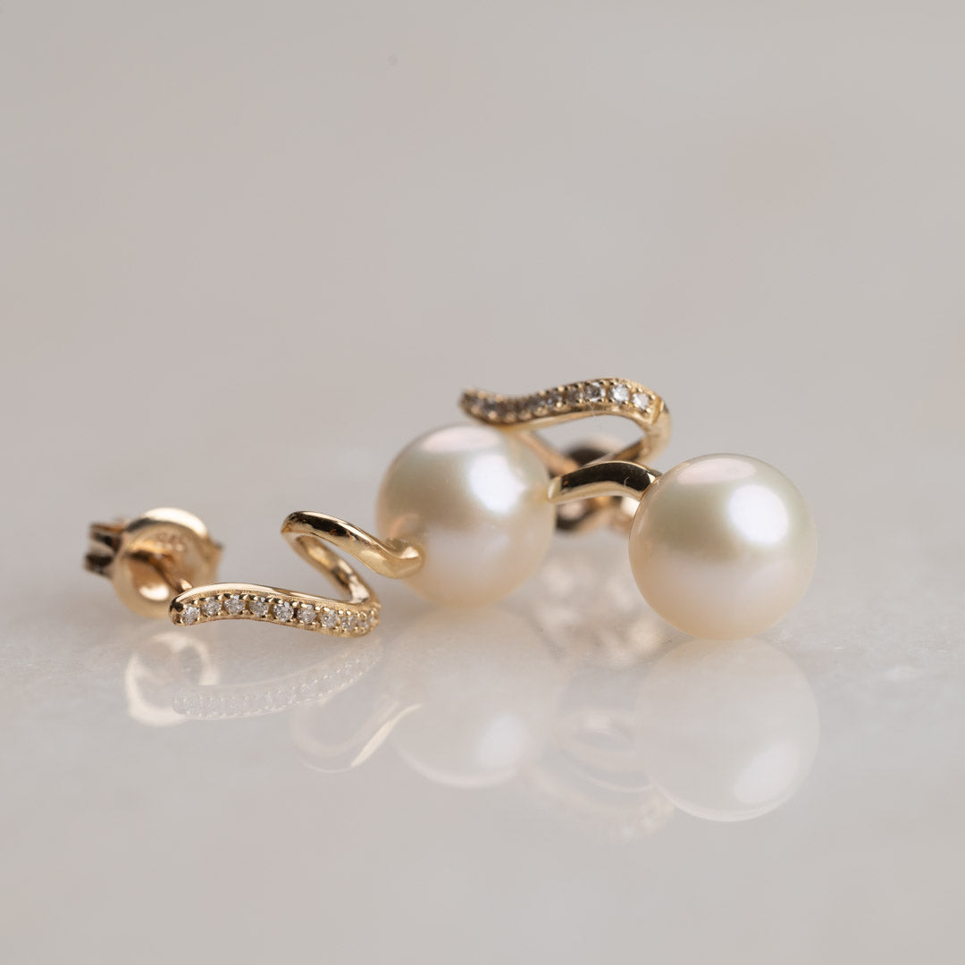Perleøreringer med diamanter i 9 karat massivt gull