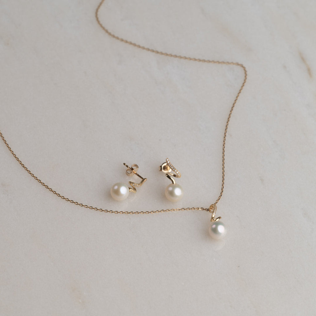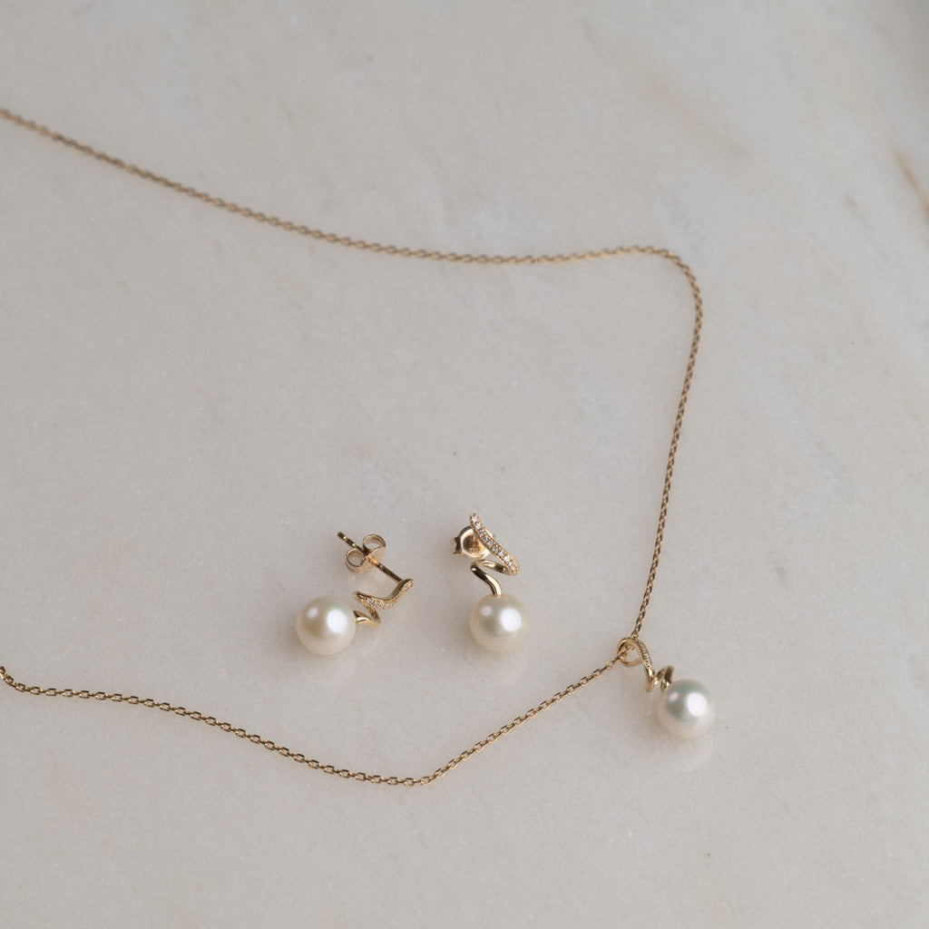 LORA PEARL DIAMOND SOLID GOLD EARRING