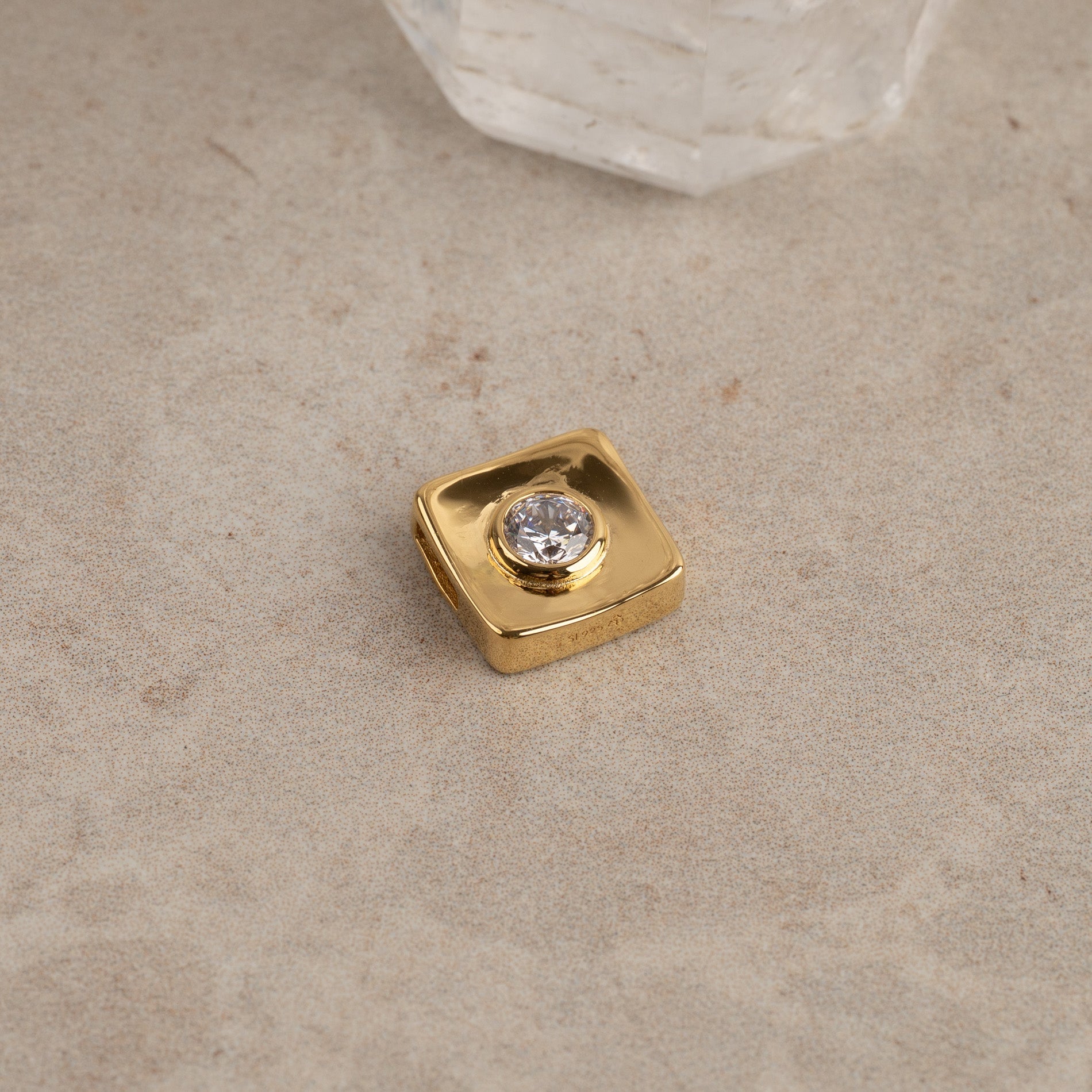 Firkantet anheng i forgylt sterlingsølv med zirkon
