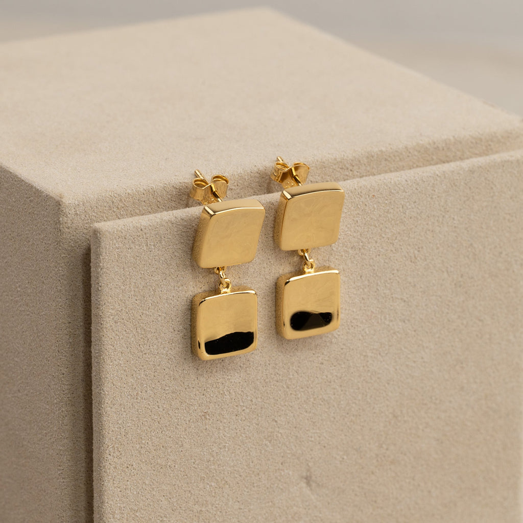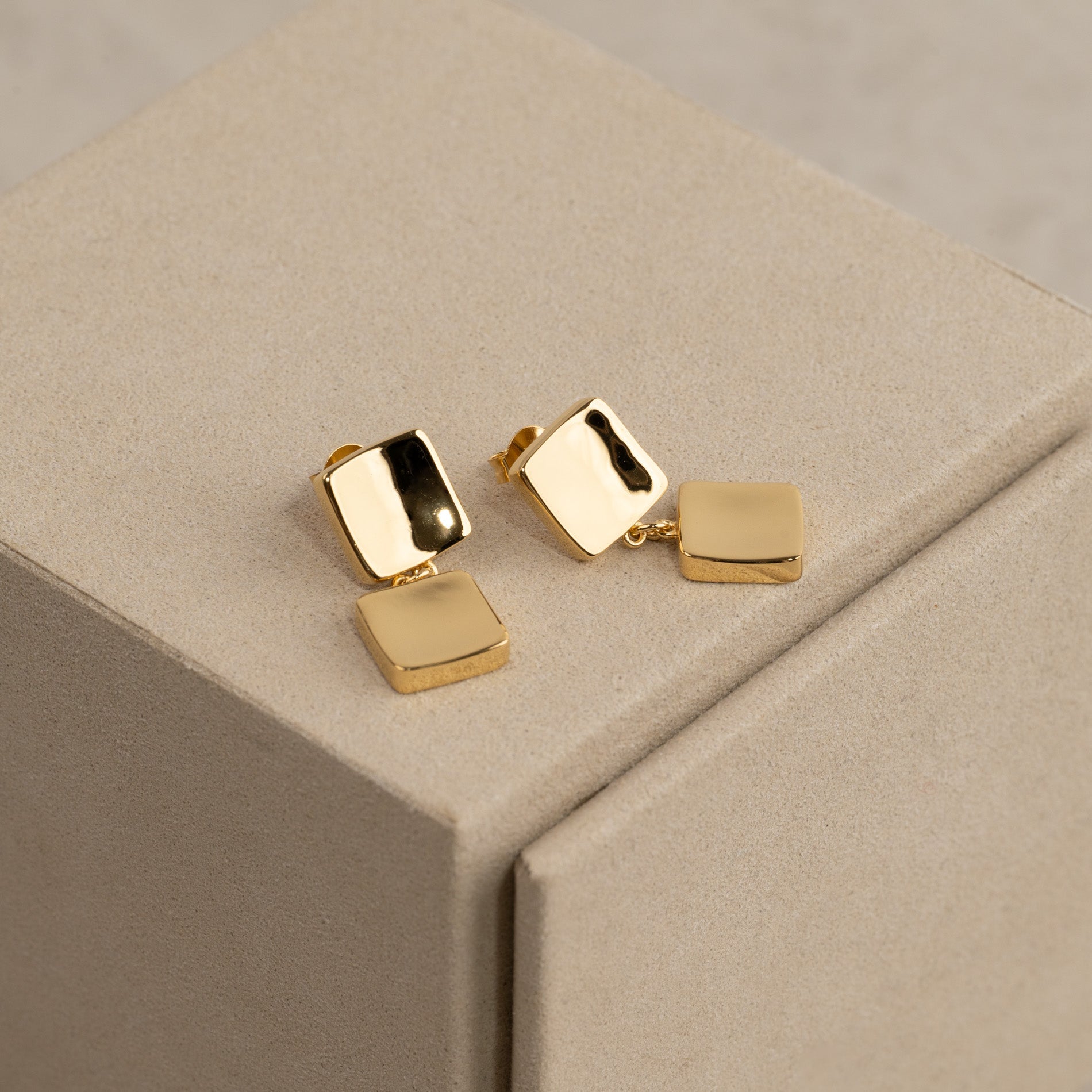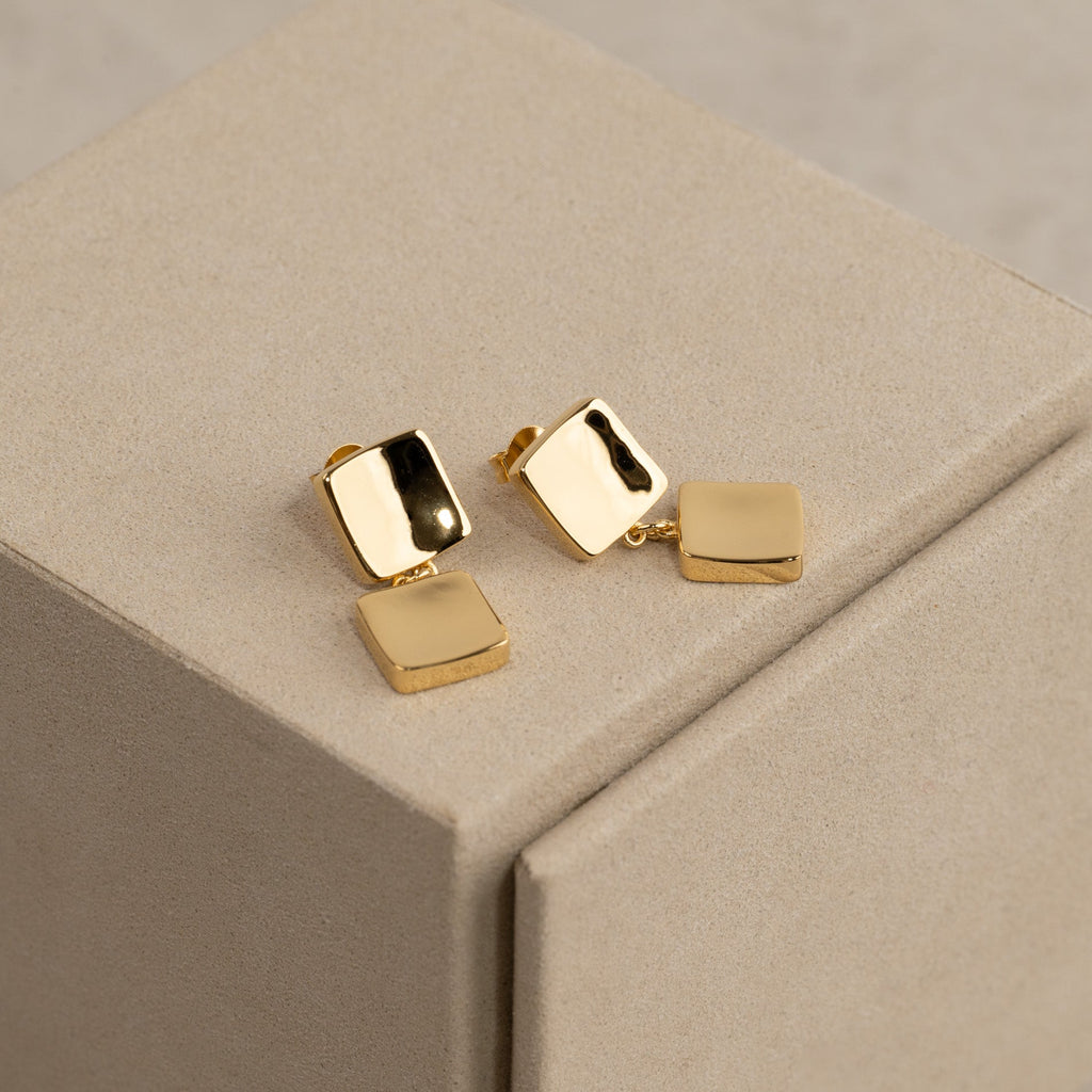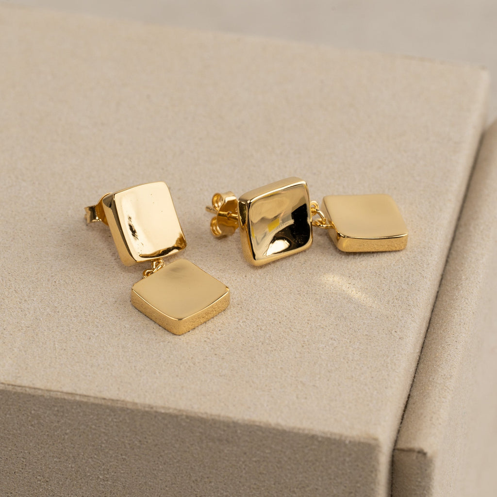 Firkantede øredobber i forgylt sterlingsølv i et elegant, retroinspireret design