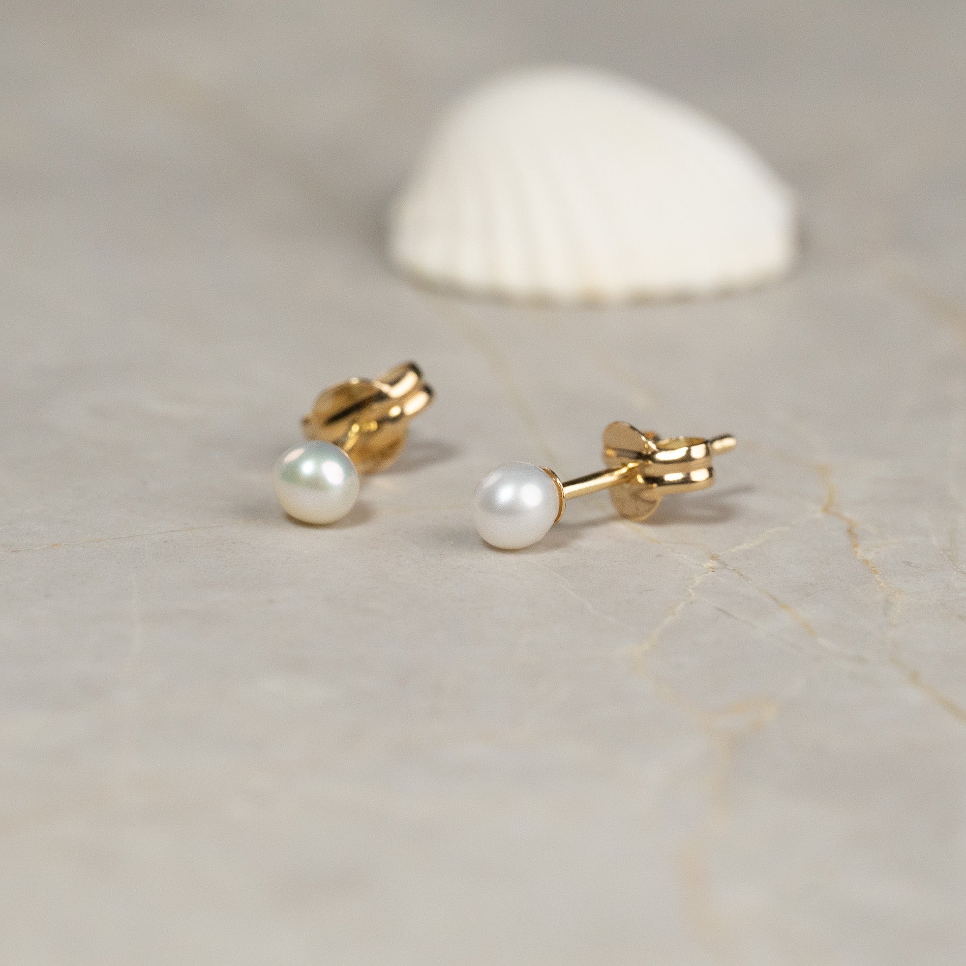 MAGGIE PEARL SOLID GOLD STUD EARRING - 3mm