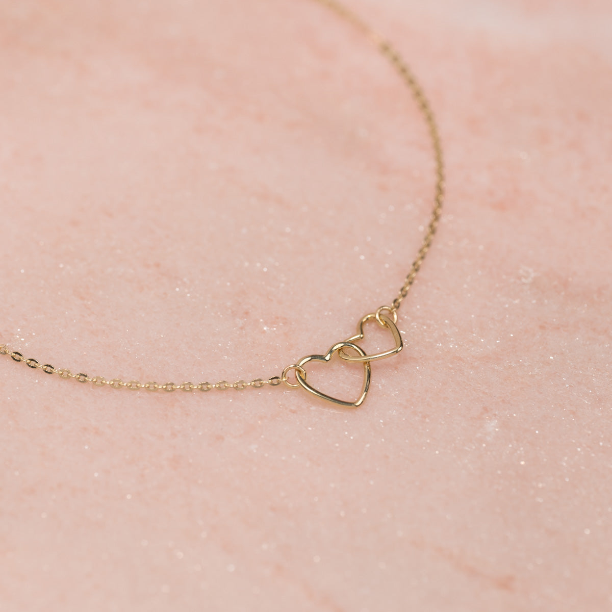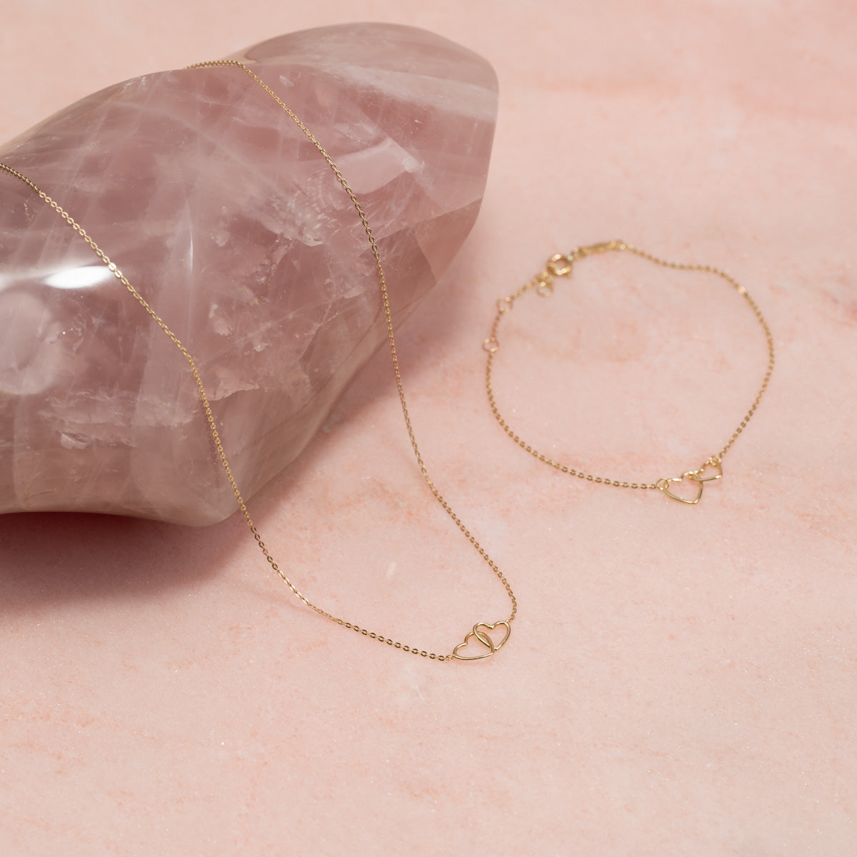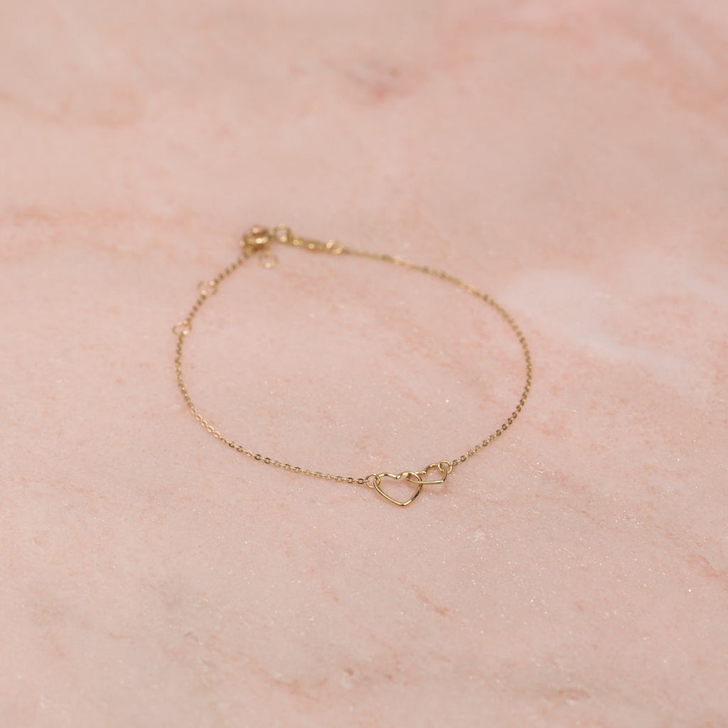 Vårt Mila armbånd er laget i 100% resirkulert 9 karat massivt gull. Armbåndet har et klassisk og tidløst design. Armbåndet har et lite hjerte og et større hjerte som sitter koblet sammen i det vakre ankerkjedet.