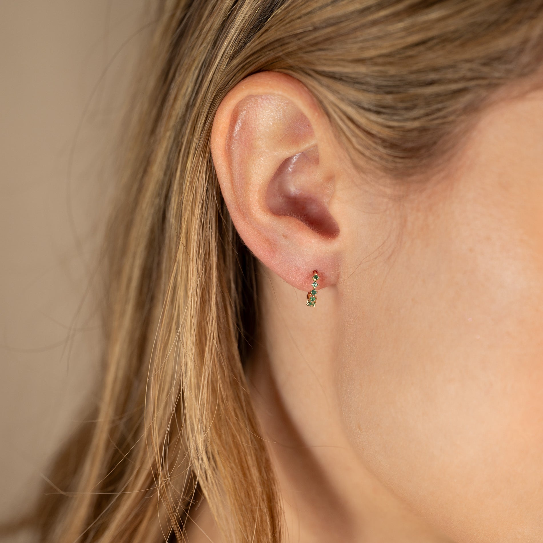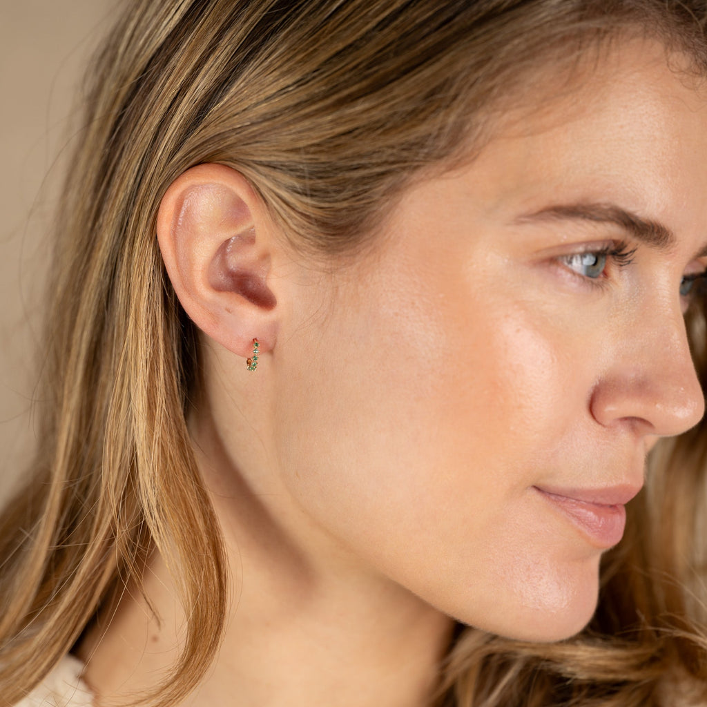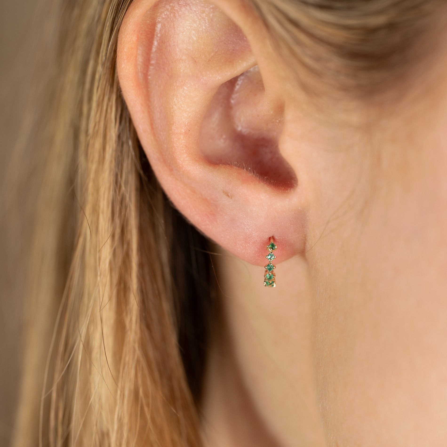 Øreringene er laget i 100% resirkulert 9 karat massivt gull med flotte, grønne agater. De fine creolene har et unikt design som gjør øreringene feminine og delikate, og de passer til enhver anledning.