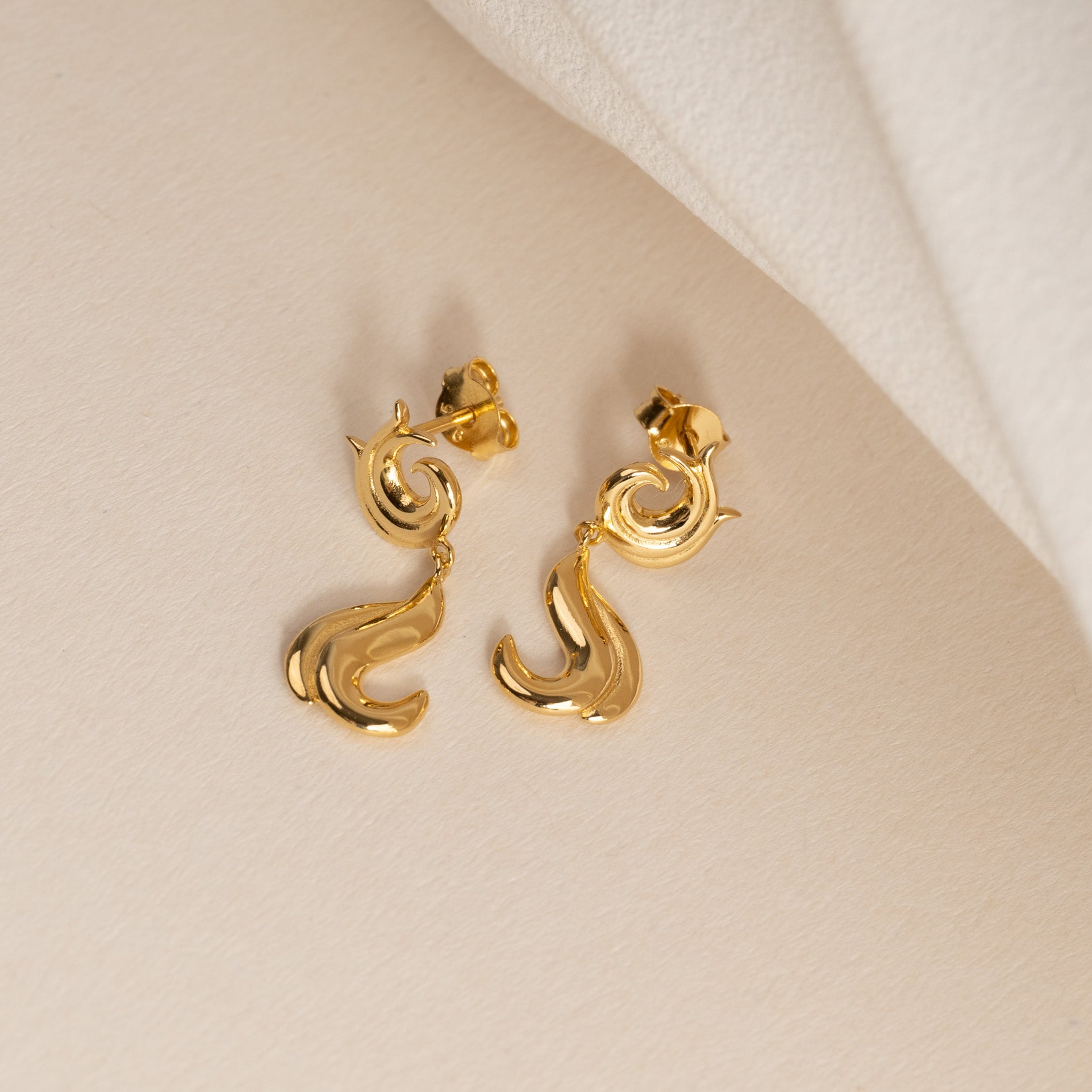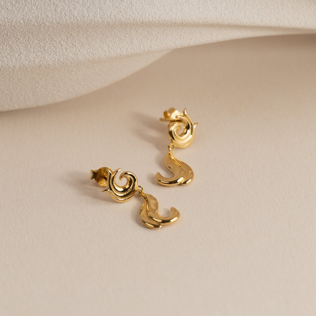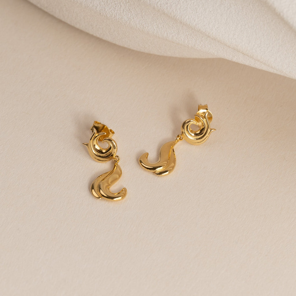 Øredobber i 100% resirkulert 18 karat forgylt sterlingsølv med bølgeinspirerte detaljer, som gir et dynamisk og levende uttrykk. Et unikt og øyefangende valg til både hverdag og spesielle anledninger.