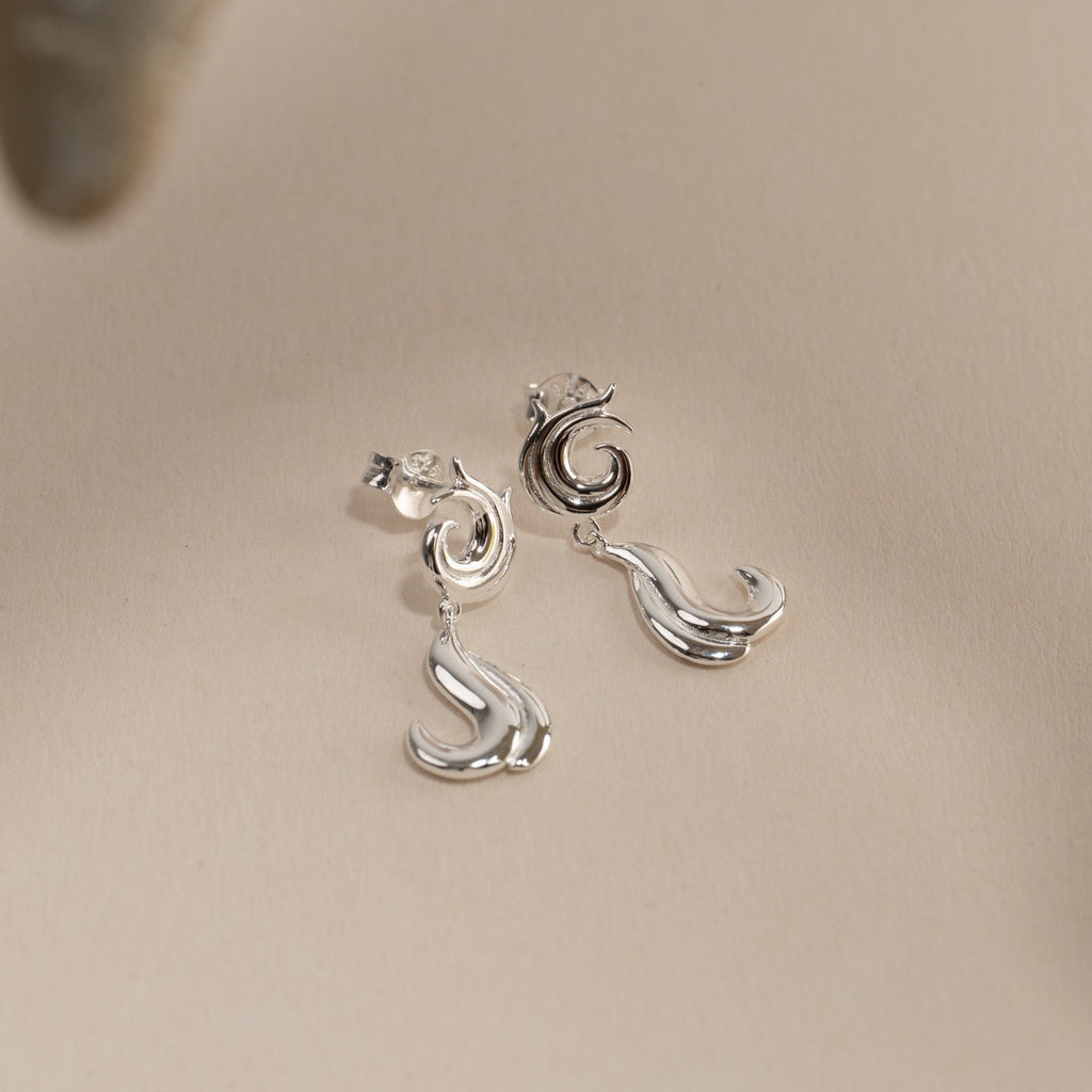 Øredobber i 100% resirkulert 925 sterlingsølv med bølgeinspirerte detaljer som, gir et dynamisk og levende uttrykk. Et unikt og øyefangende valg til både hverdag og spesielle anledninger.