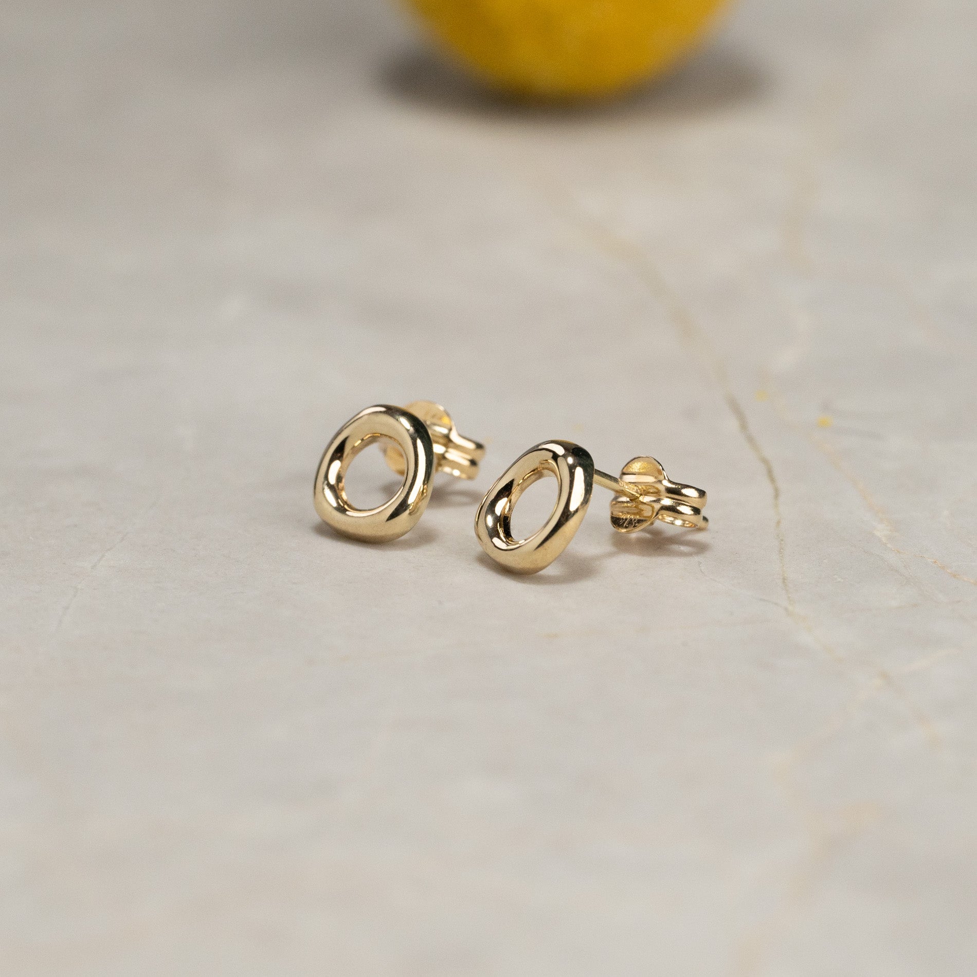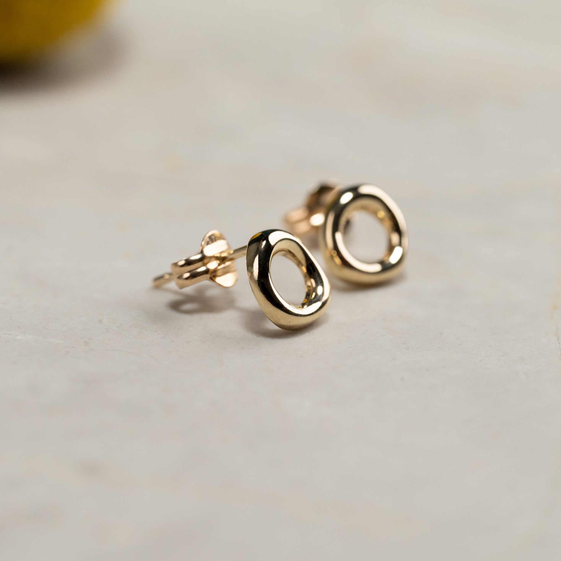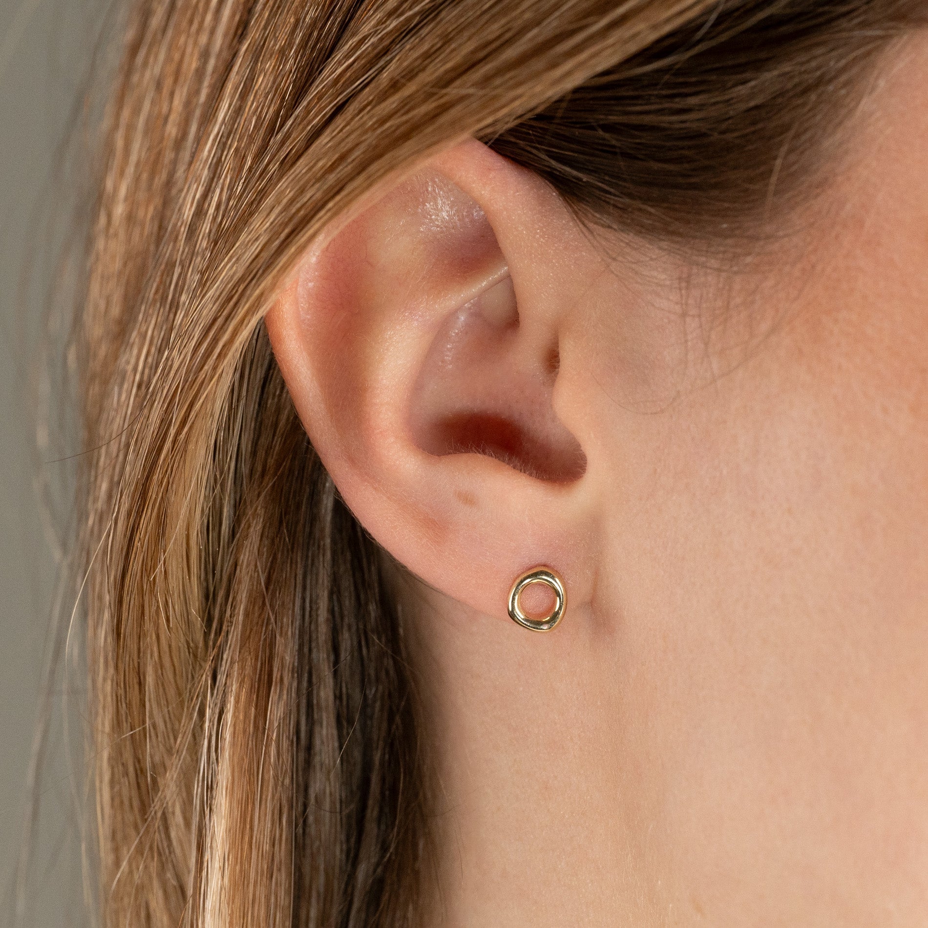 Øredobbene er laget av 100 % resirkulert massivt 9 karat gull.