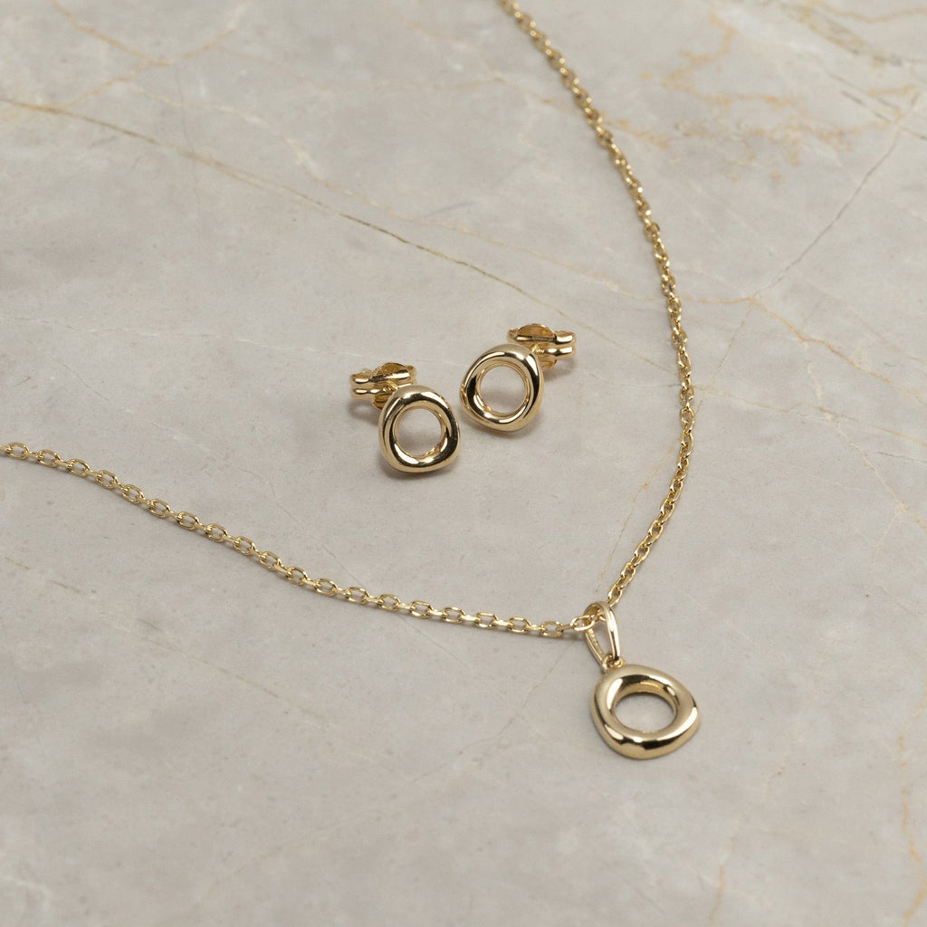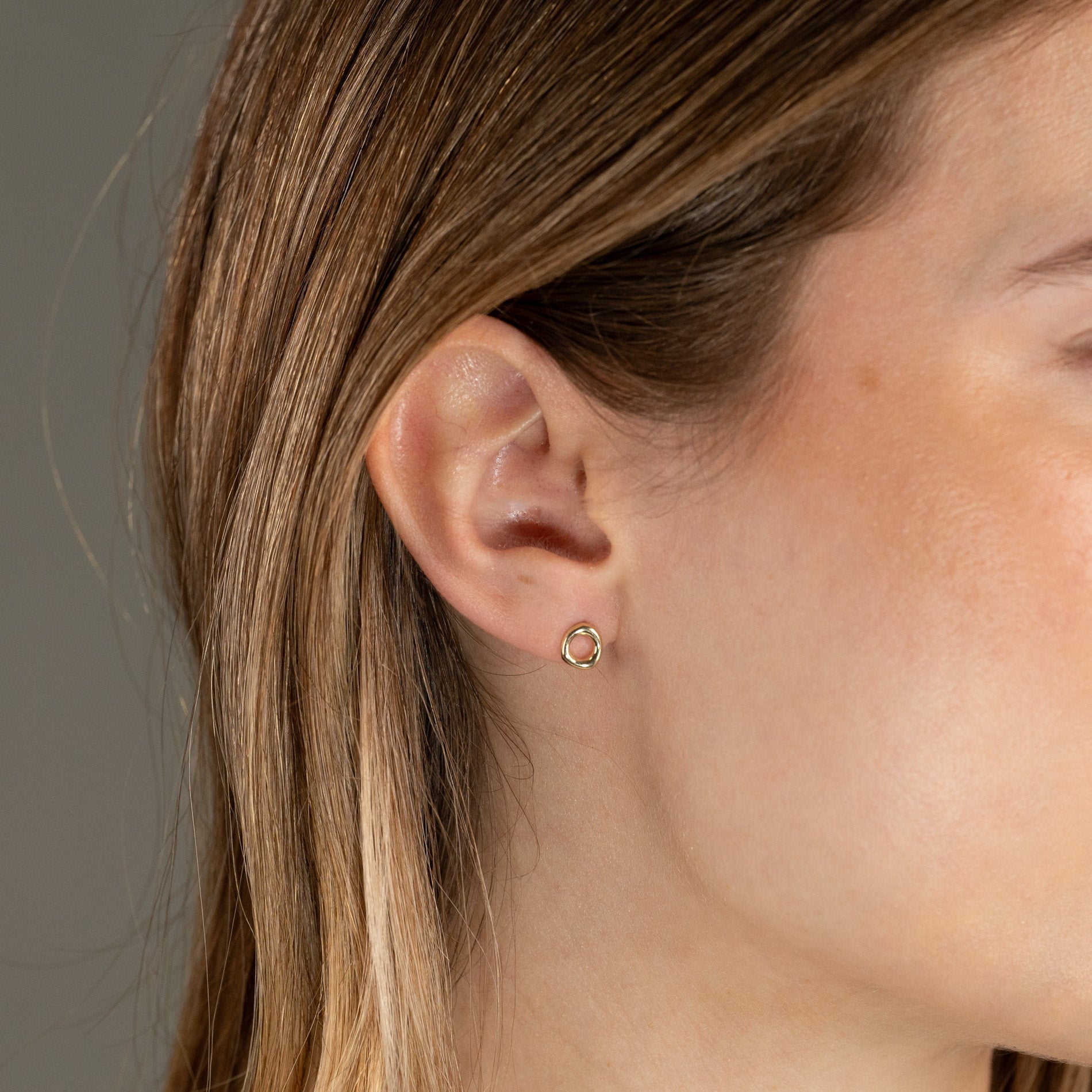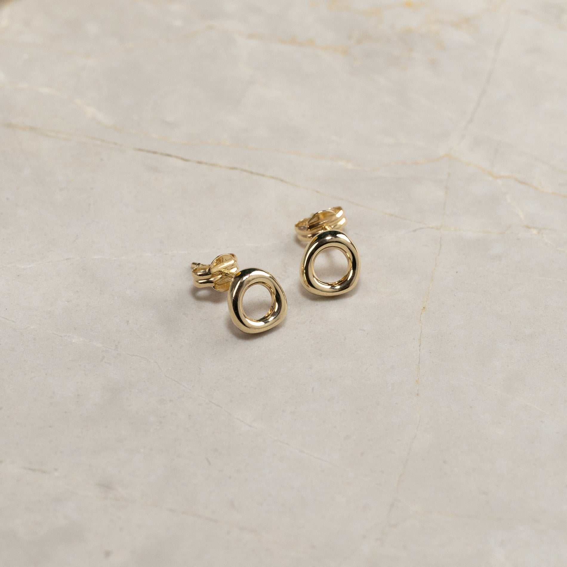 Øredobbene er laget av 100 % resirkulert massivt 9 karat gull.