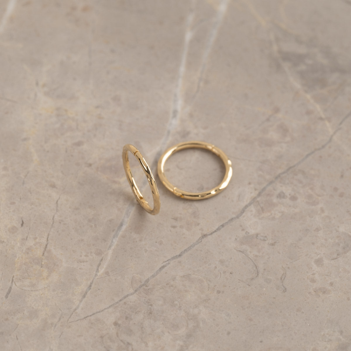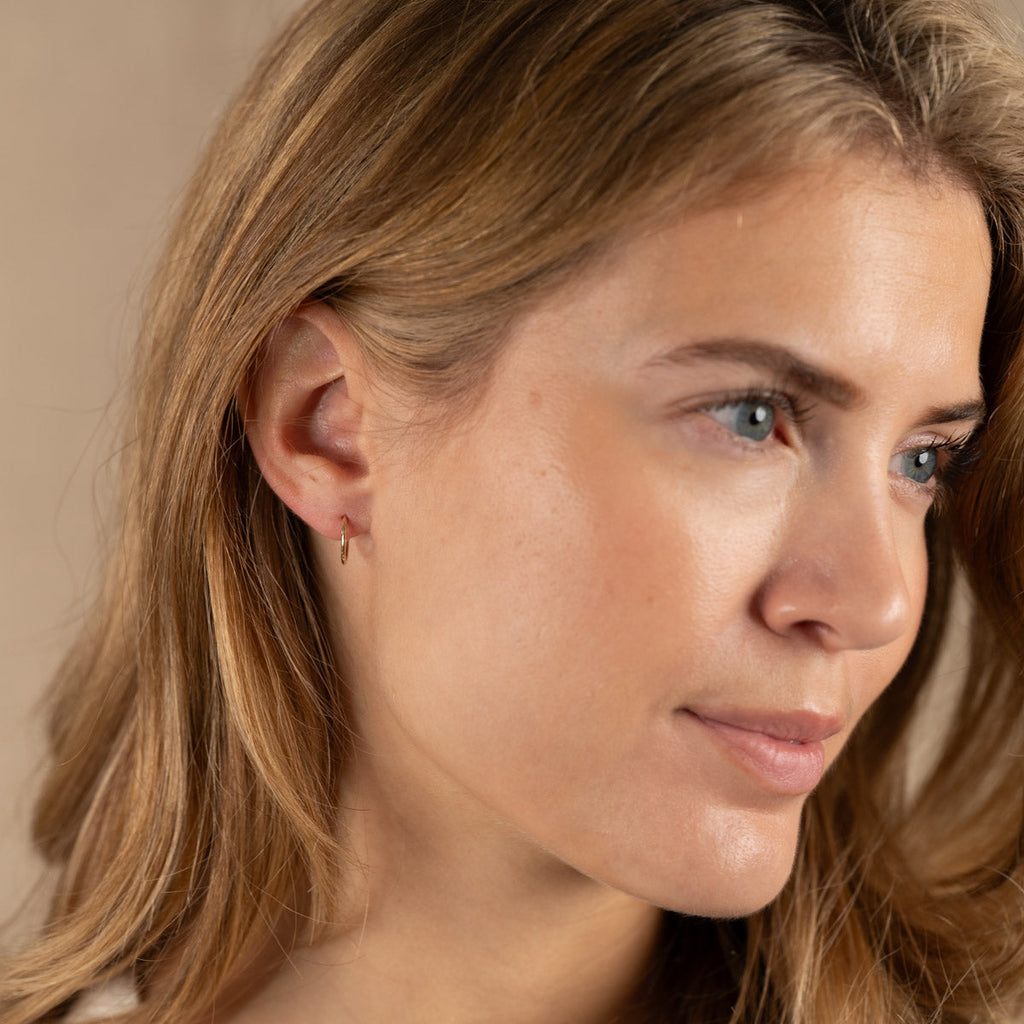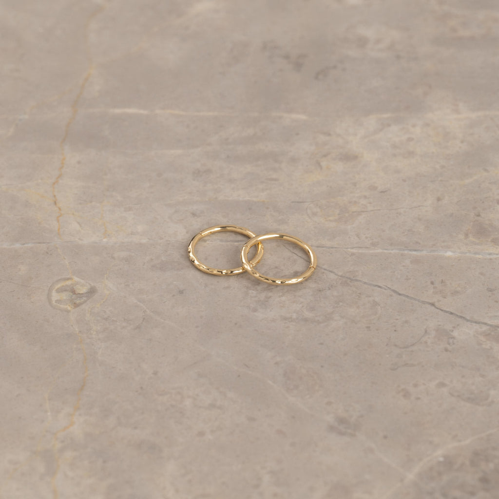 Øreringene er laget i 100% resirkulert 9 karat massivt gull. Øreringene har en fin tekstur i overflaten som gir øreringene et vakkert og undervurert uttrykk. Øreringen er perfekte til hverdags og er fine både alene eller i kombinasjon med våre andre øreringer.