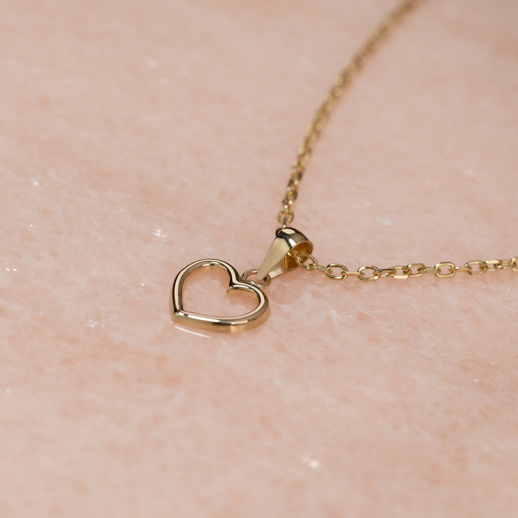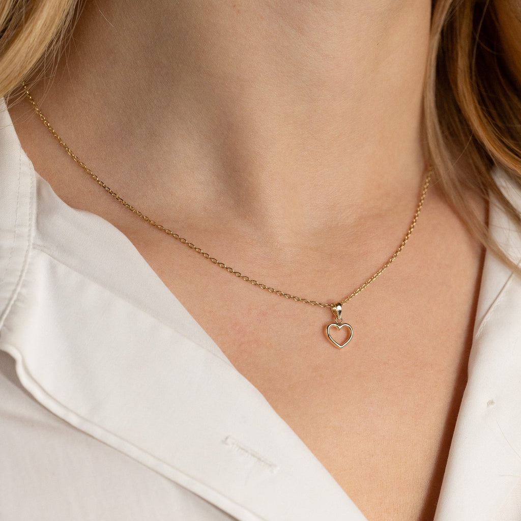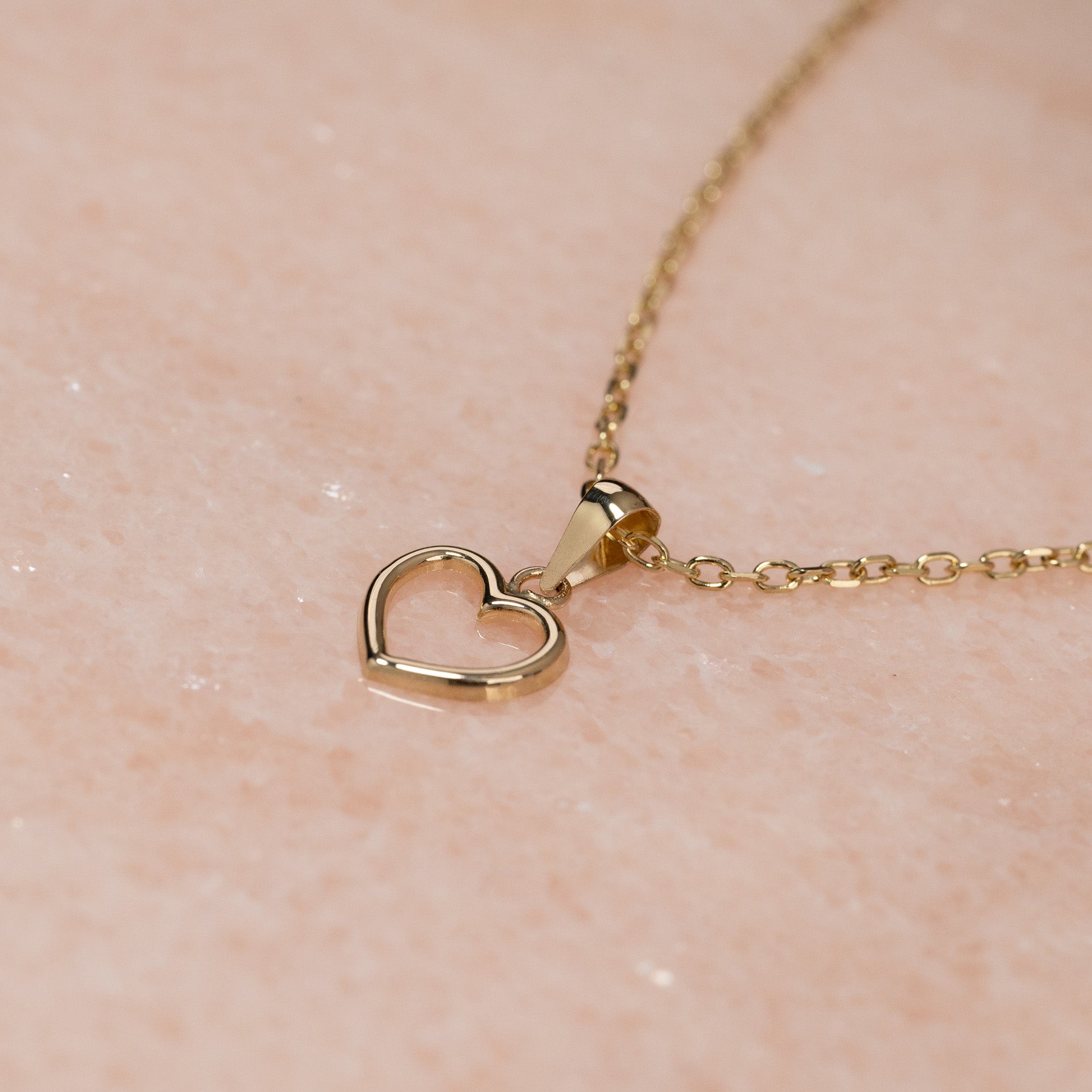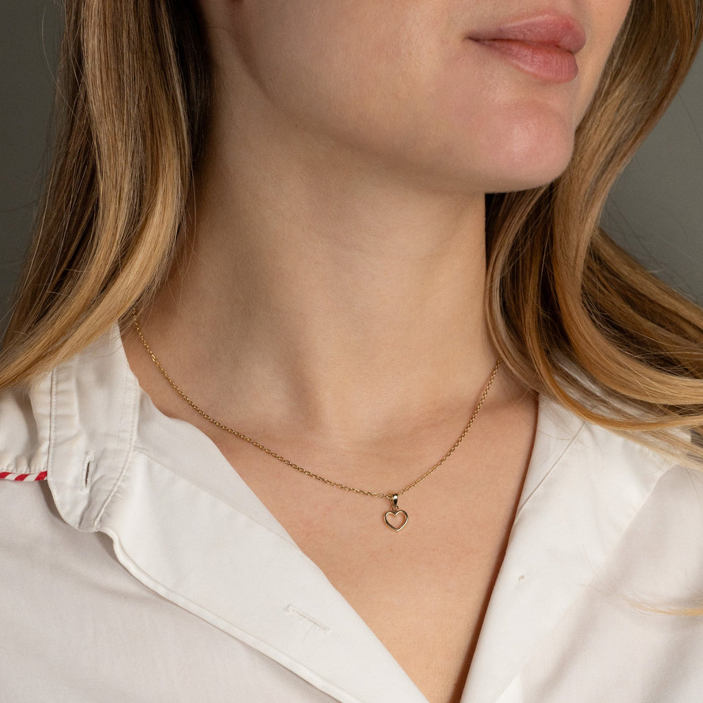 Åpent hjerteanheng laget av 100% resirkulert massivt 9 kt gull. Anhenget har et klassisk og tidløst design.