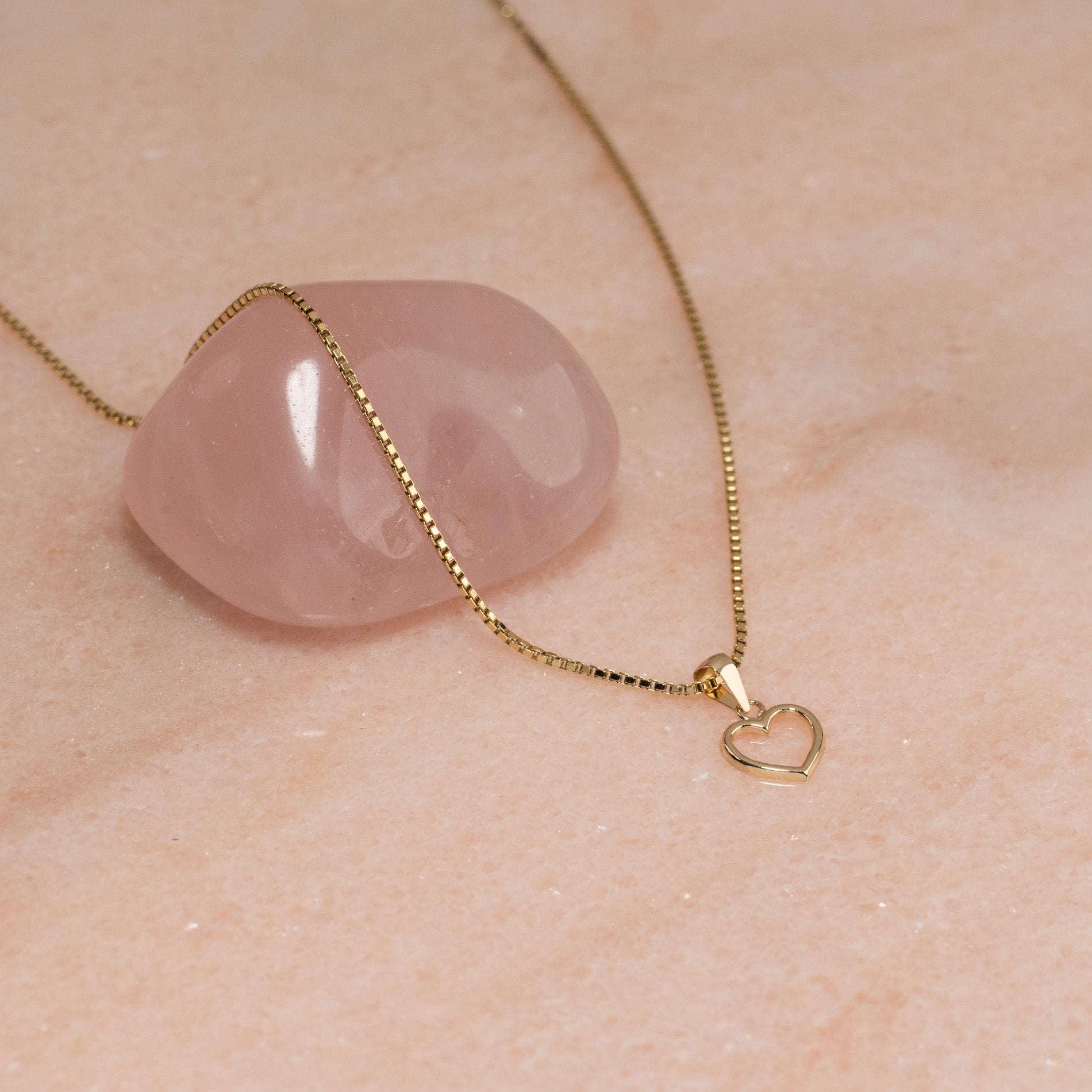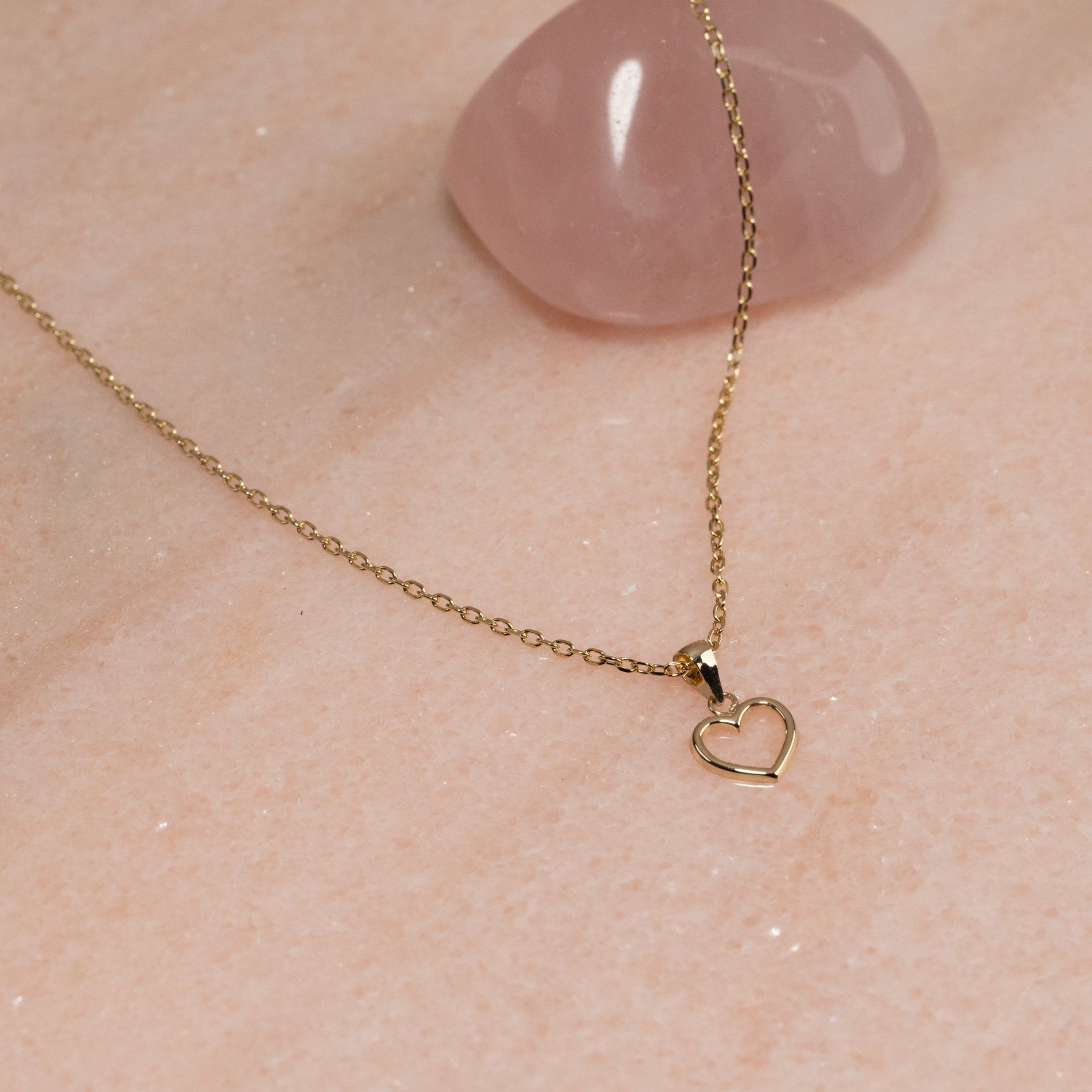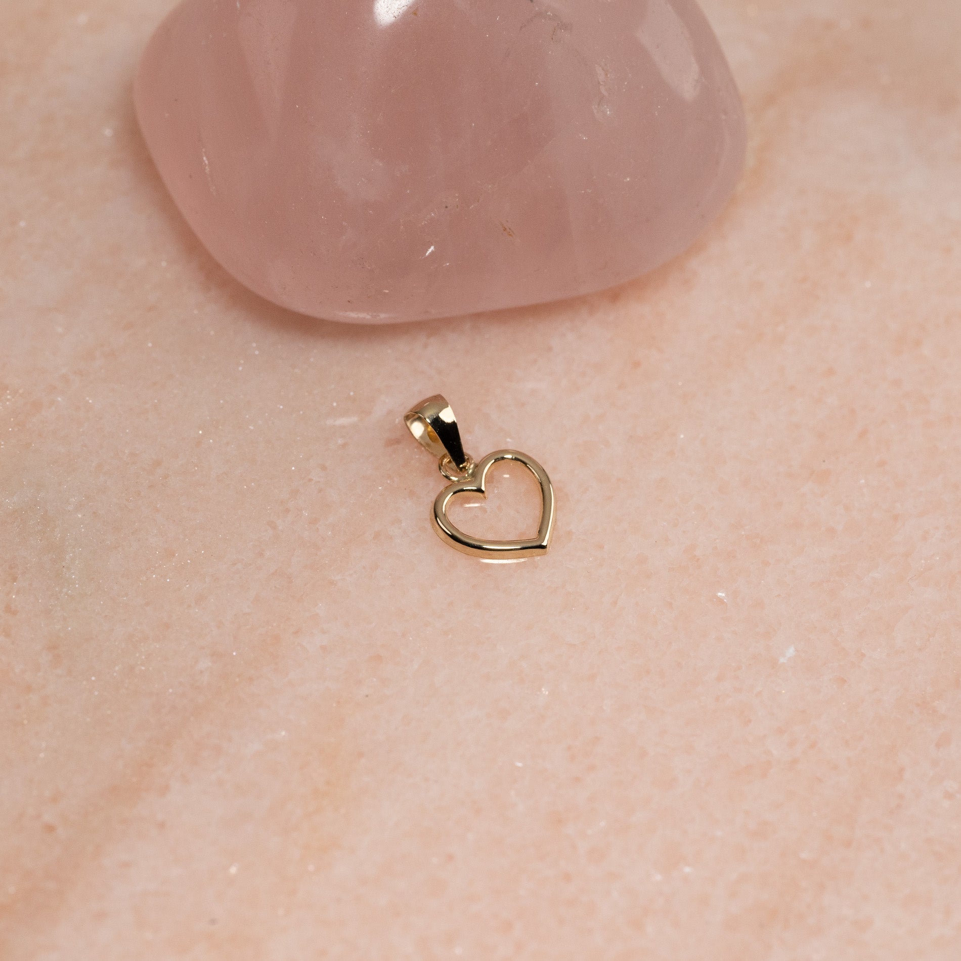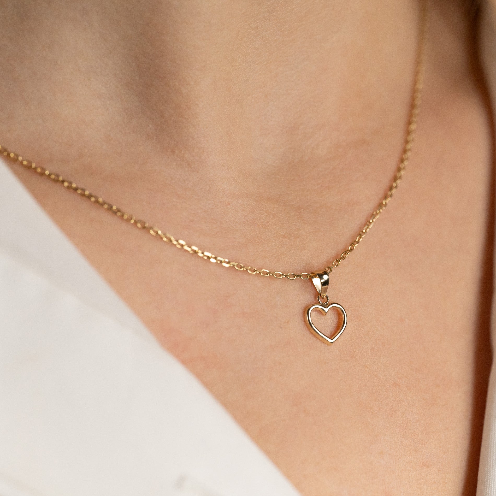 Åpent hjerteanheng laget av 100% resirkulert massivt 9 kt gull. Anhenget har et klassisk og tidløst design.