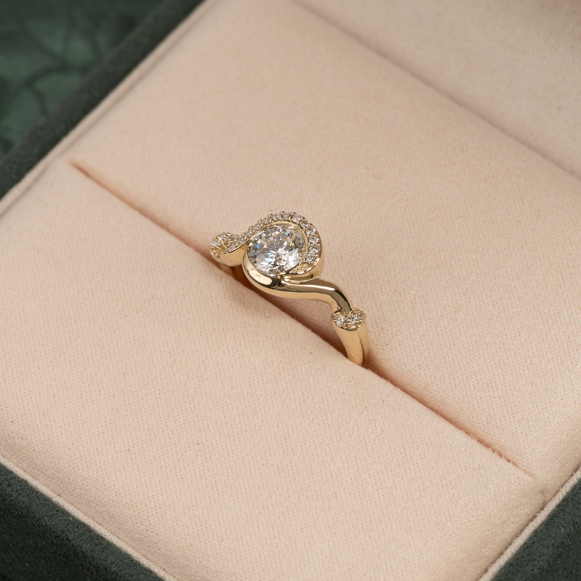 Organisk ring med et elegant, tvunnet design, fremstilt i 14 kt gull med laboratorieskapte diamanter