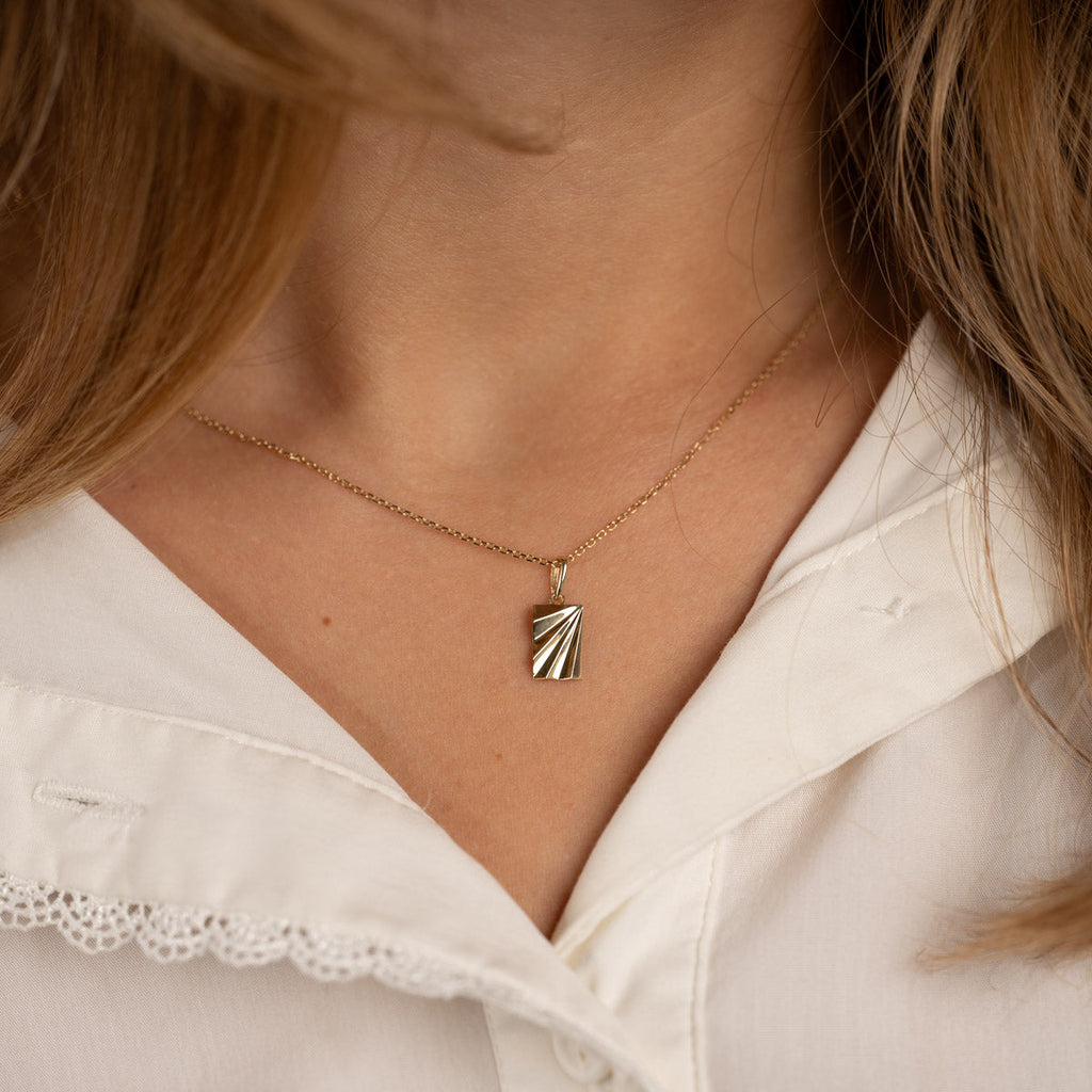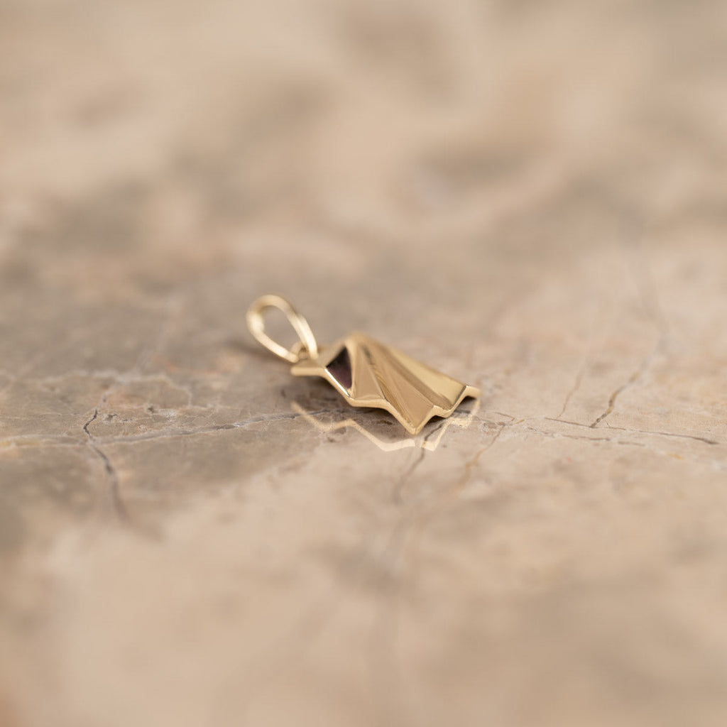 Anhenget er laget i 100% resirkulert 9 karat massivt gull. Anhenget er utformet med fine foldede detaljer, som gjør at anhenget skiller seg ut på en elegant måte.