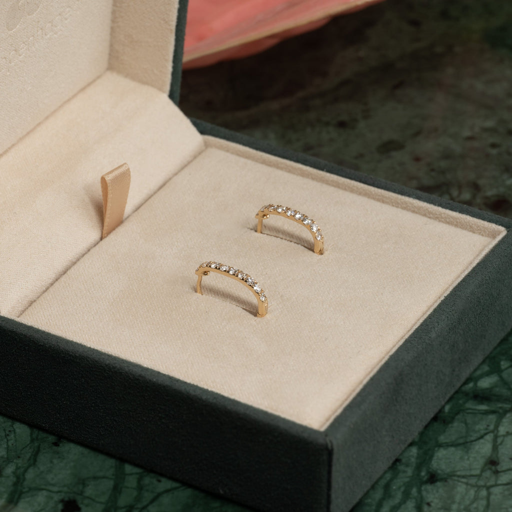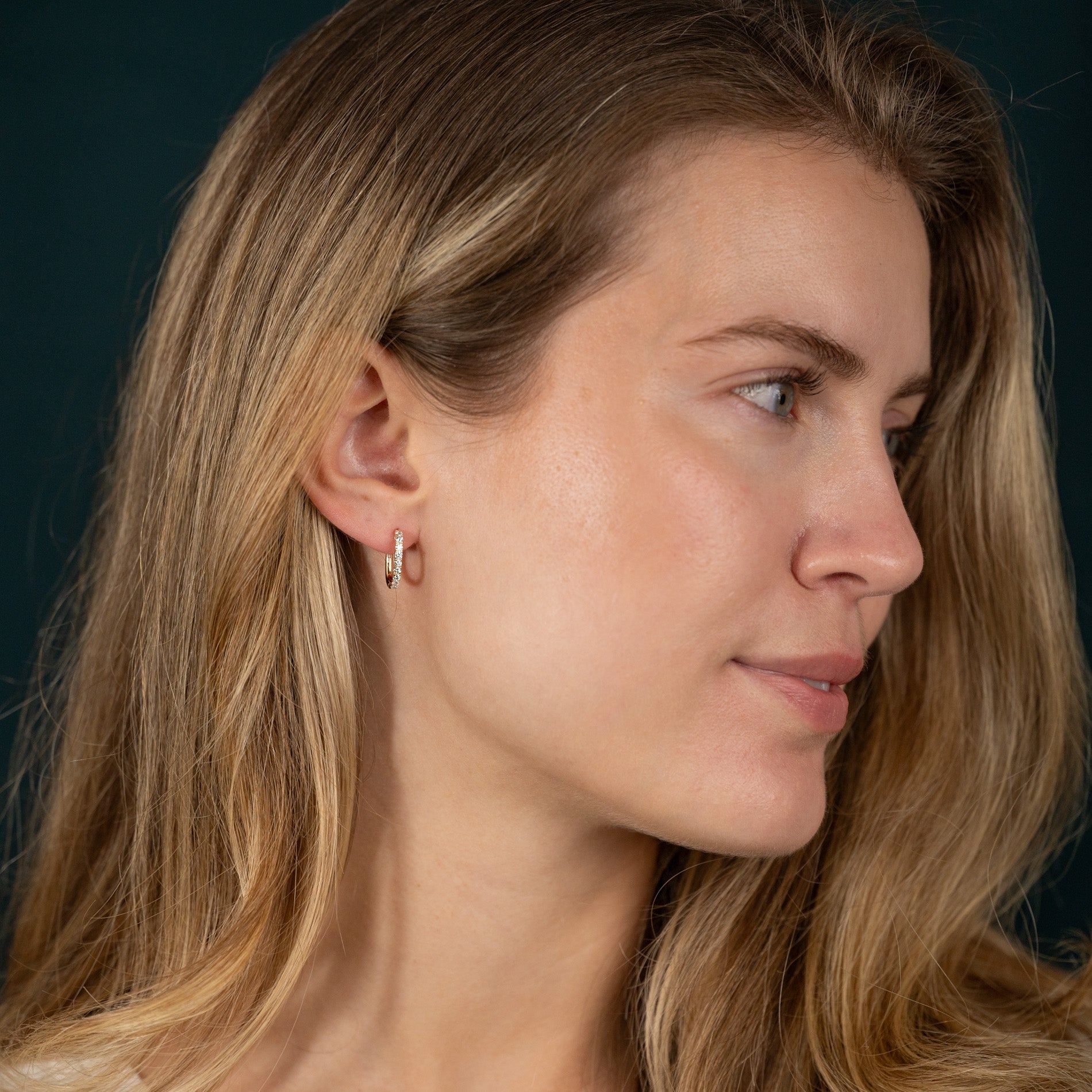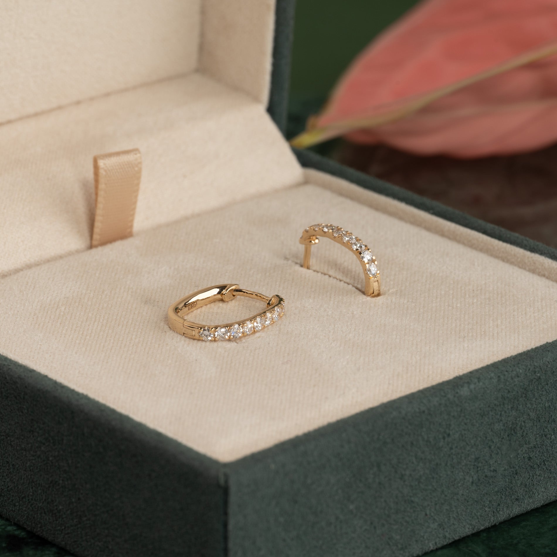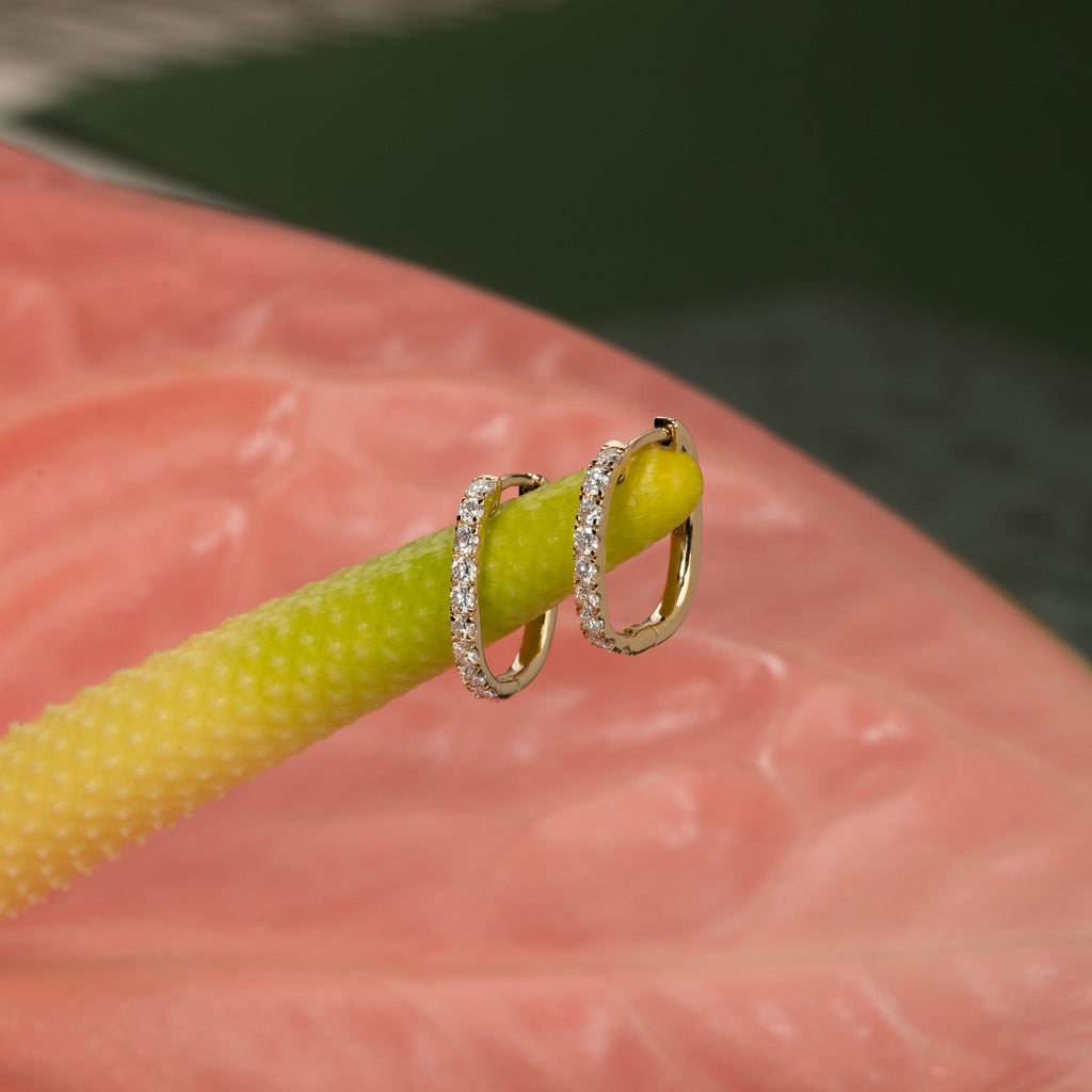 De ovale diamantcreolene er laget i 14kt. massivt gull med 18 lab-grown diamanter med en total vekt på 0,45 ct.