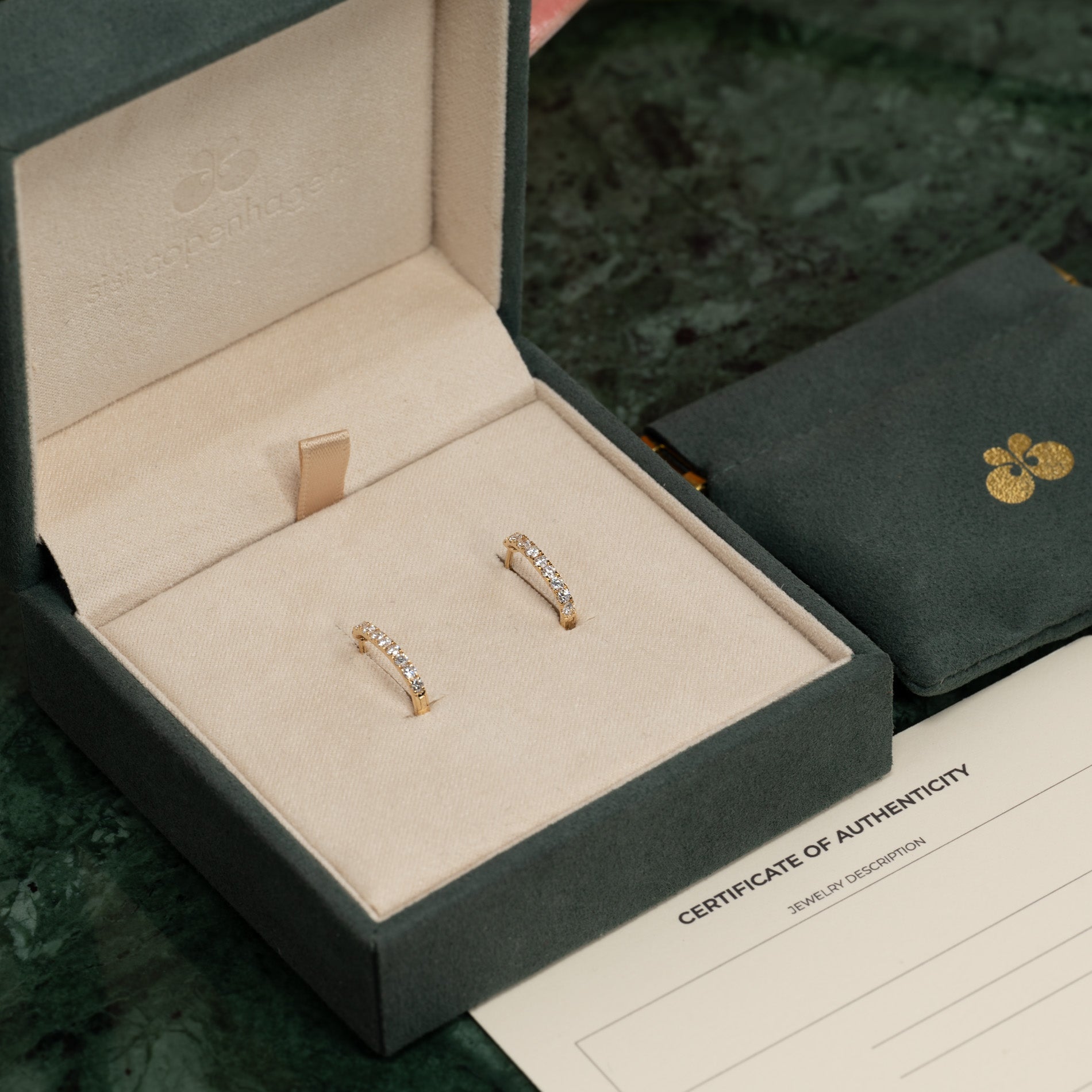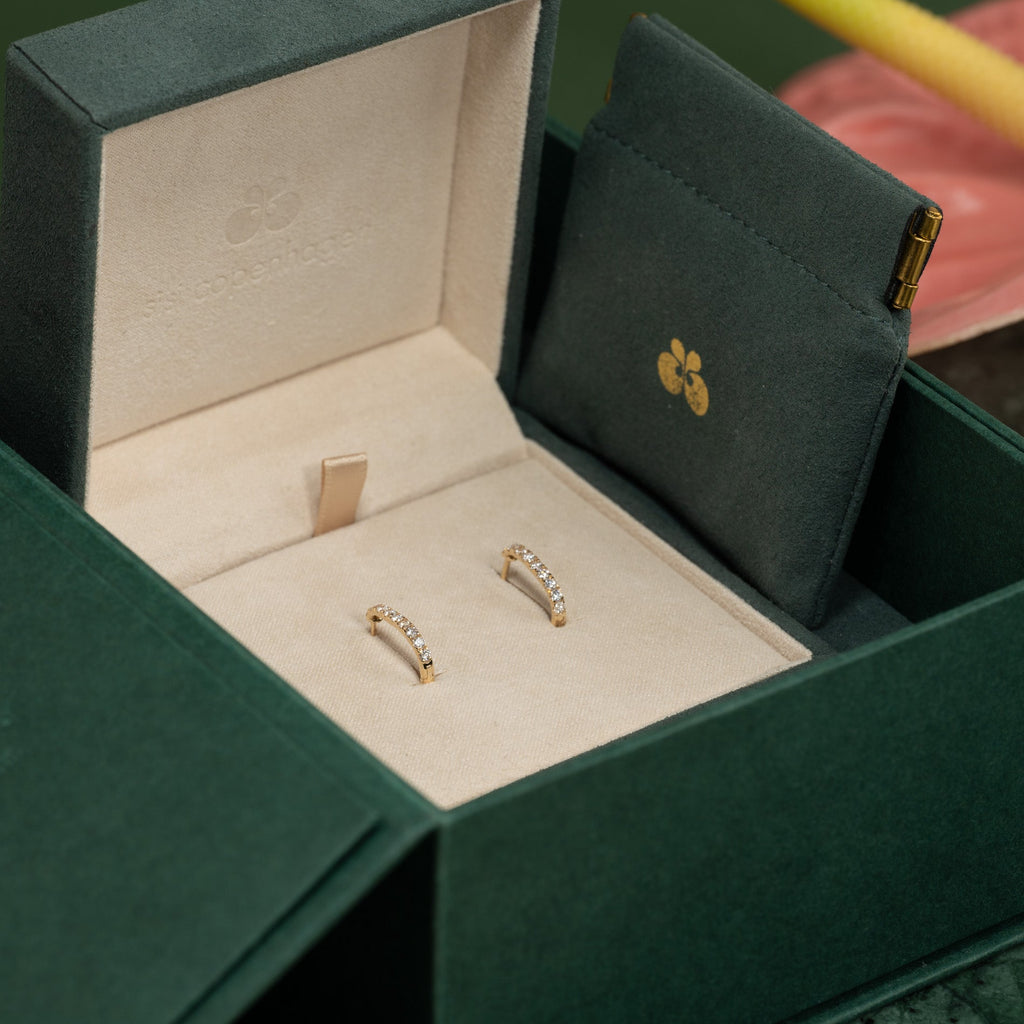 Øredobben kommer i vår eksklusive Diamond Collection boks med en flott smykkeeske, diamantsertifikat og pouch. Boksen er også perfekt om du skal gi smykket i gave.