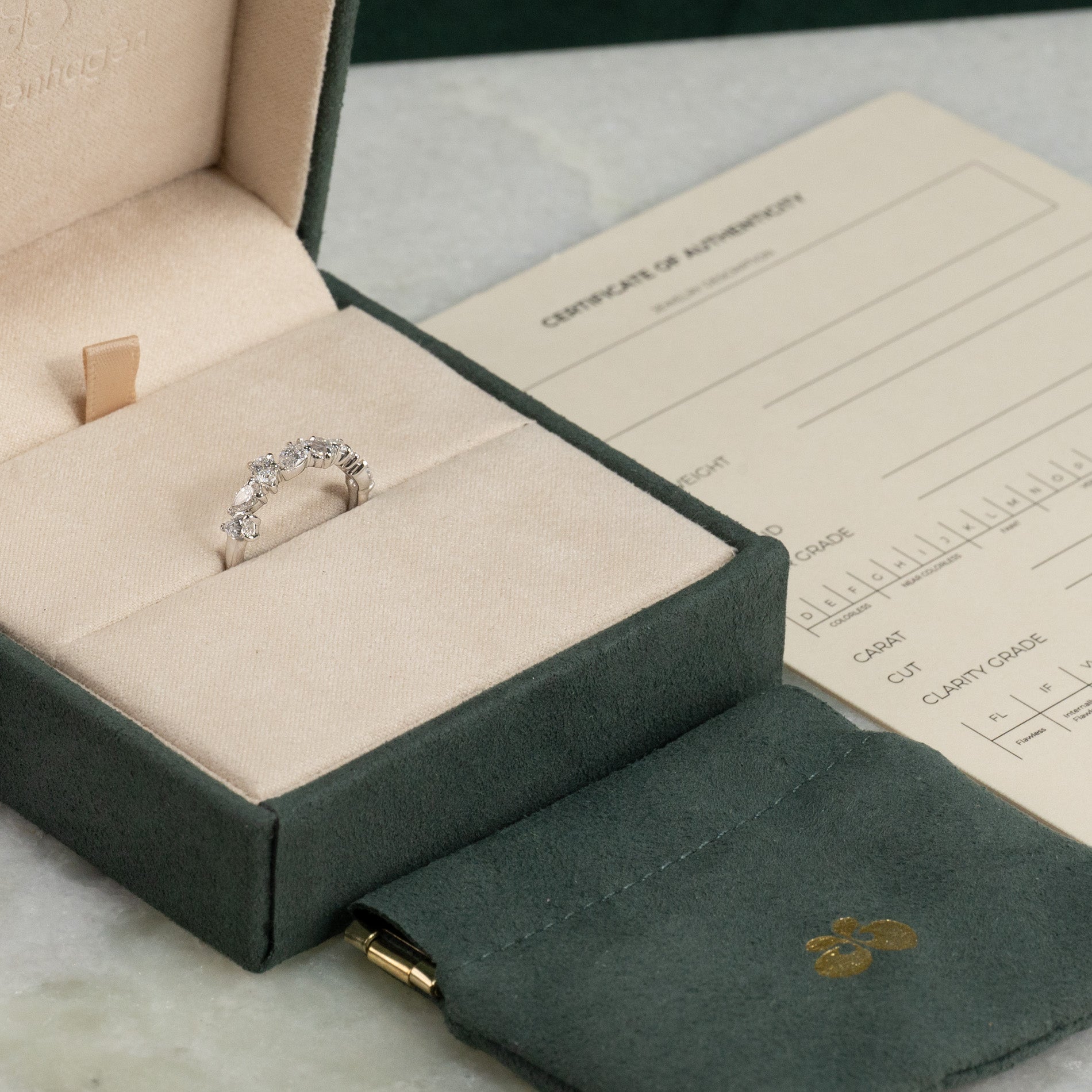 Sertifikatet inneholder all relevant og spesifikk informasjon om smykket, inkludert de 4 C'ene.