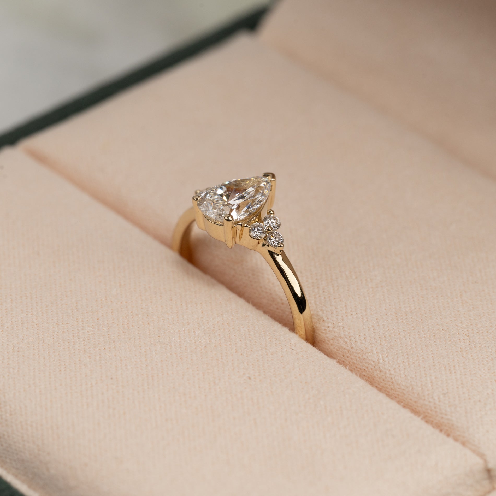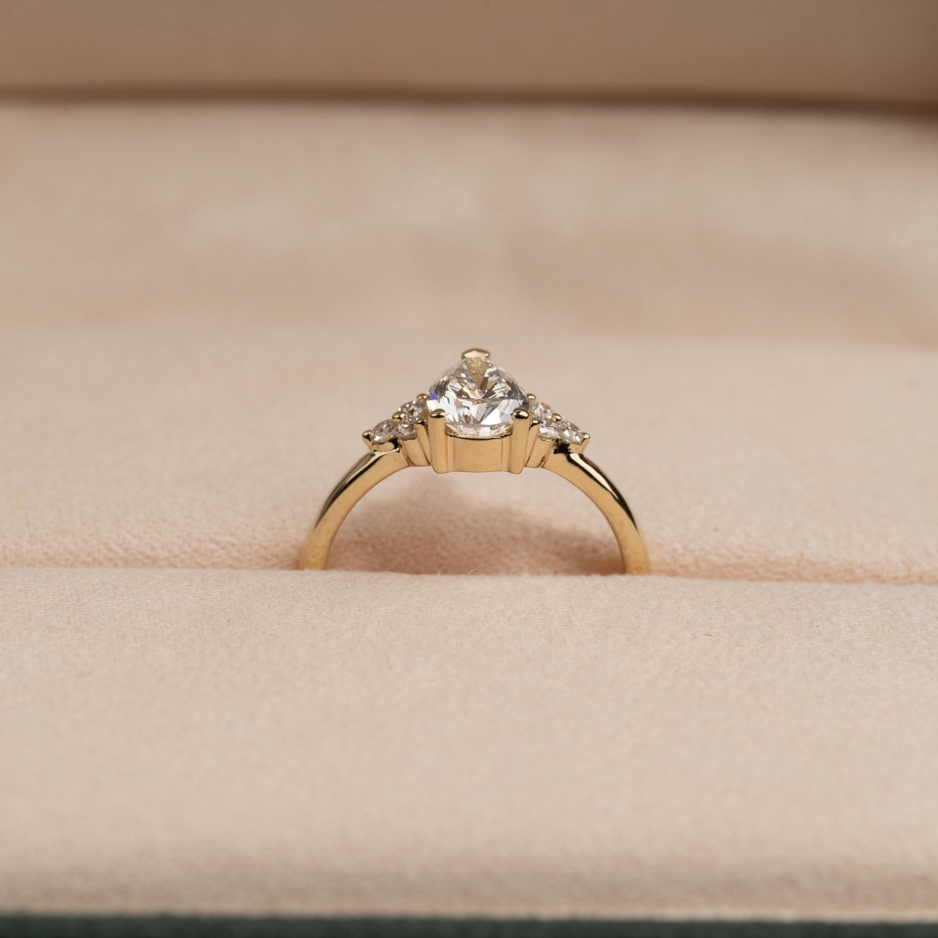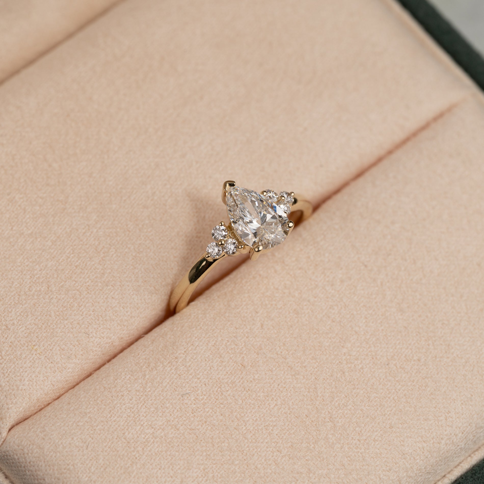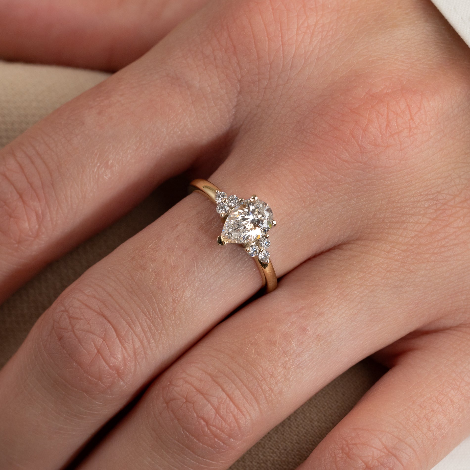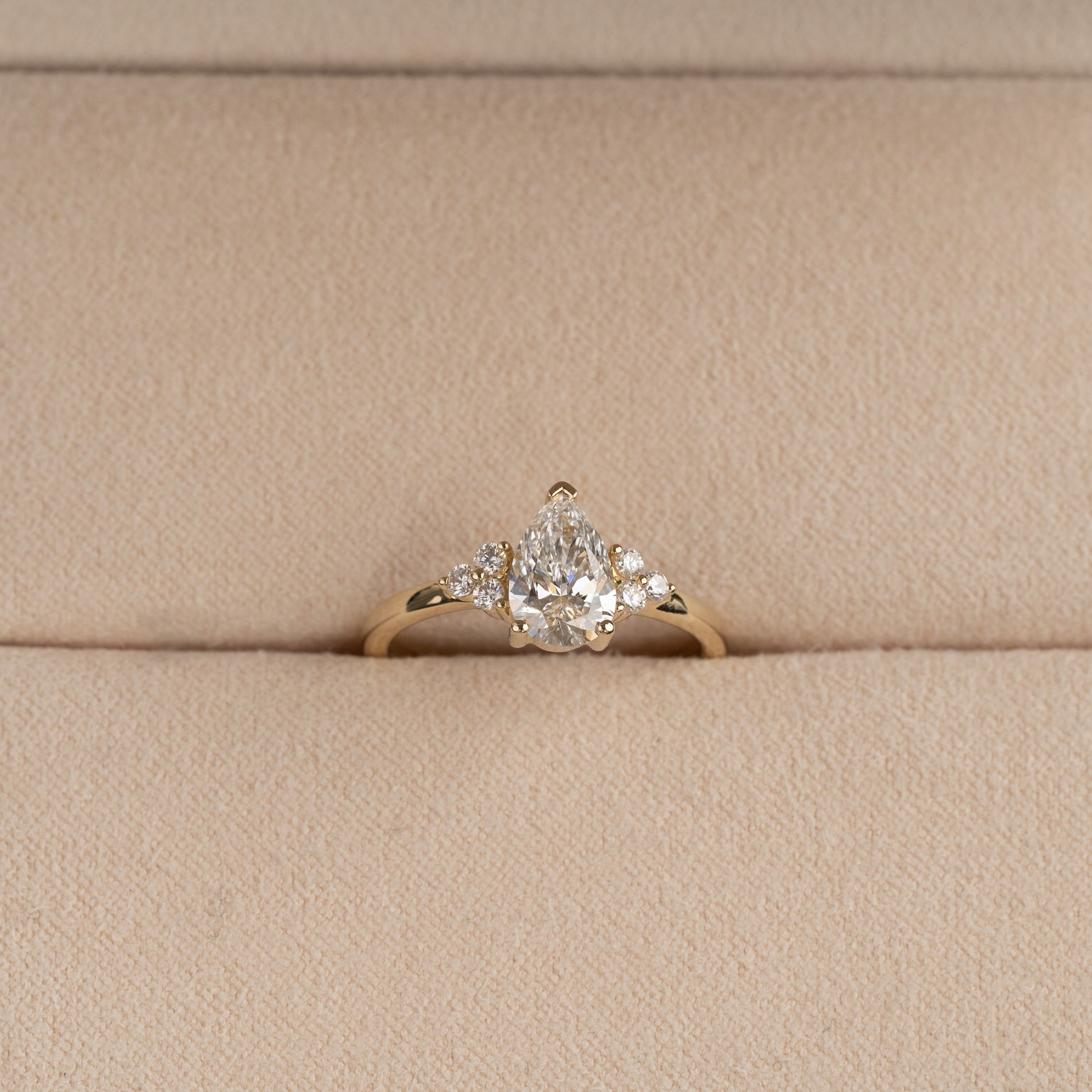 Pæreformet diamantring med en 1,0 ct lab-grown diamant og elegante sidestener