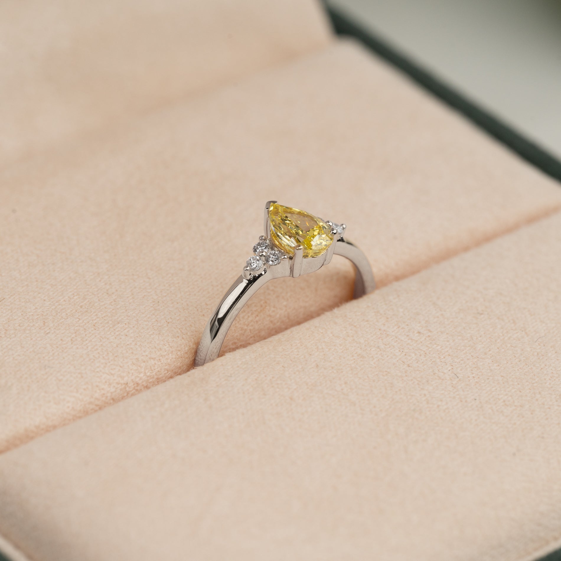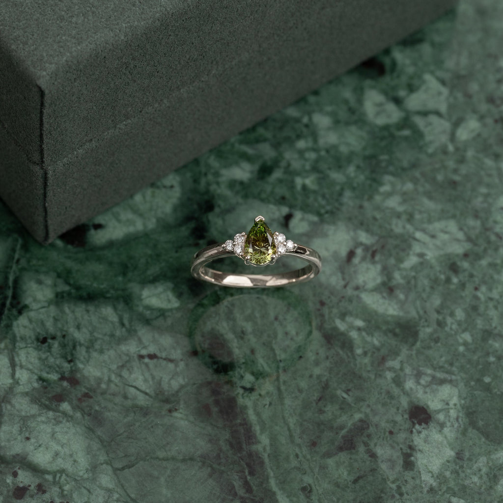 Den pæreformede diamanten tilfører et romantisk og elegant preg – perfekt for deg som leter etter en unik forlovelsesring eller en elegant cocktailring med personlighet.
