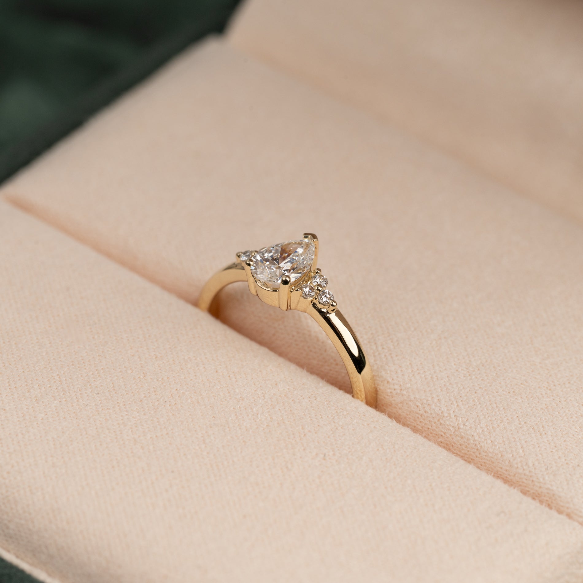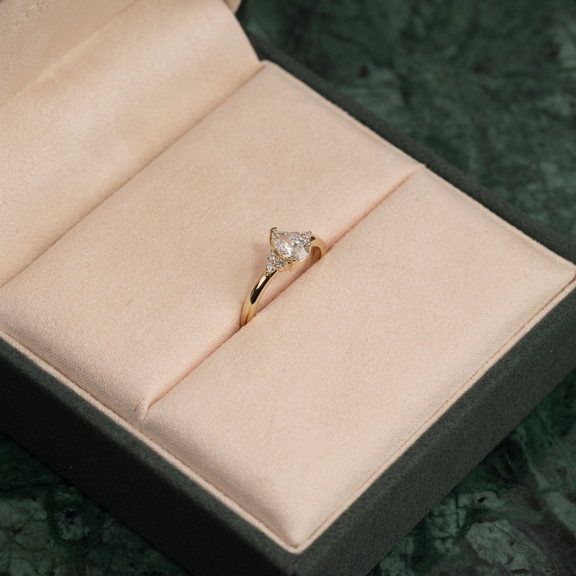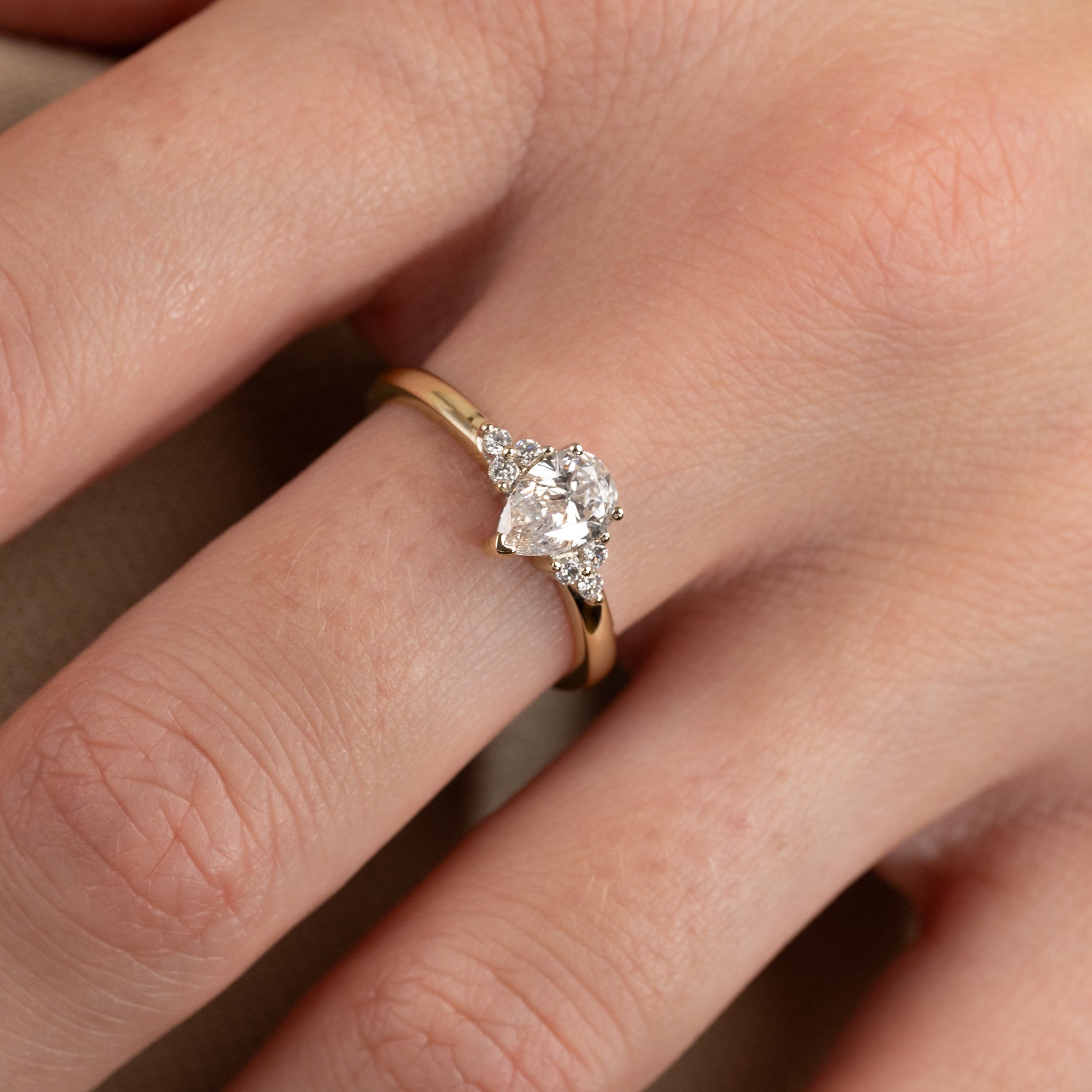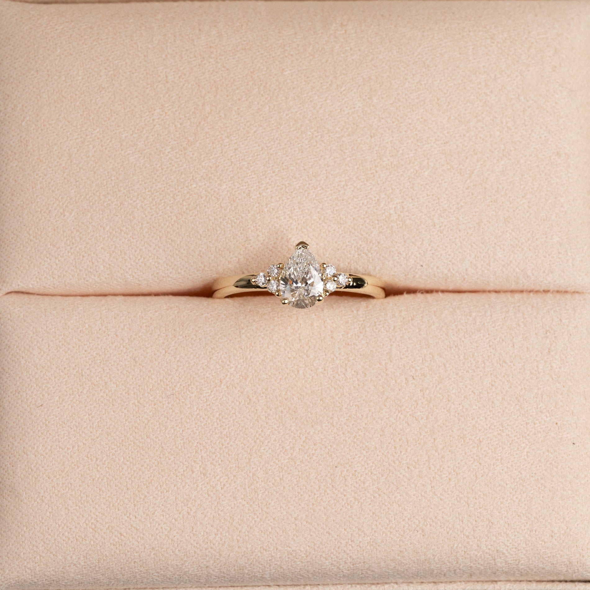 Pæreformet diamantring med en 0,60 ct lab-grown diamant og elegante sidestener