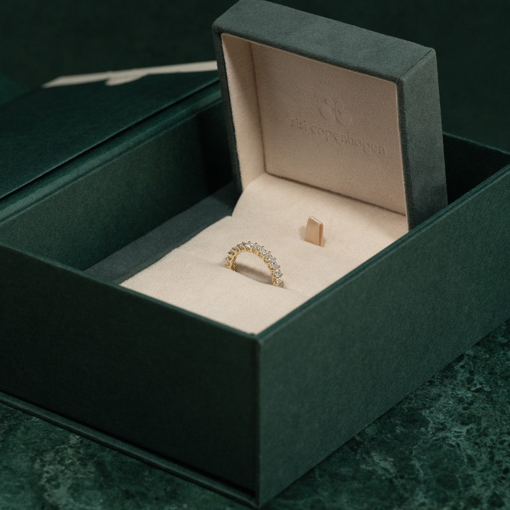 Ringen kommer i vår eksklusive Diamond Collection-boks. Boksen inneholder en smykkeeske, et diamant-sertifikat og en pouch.