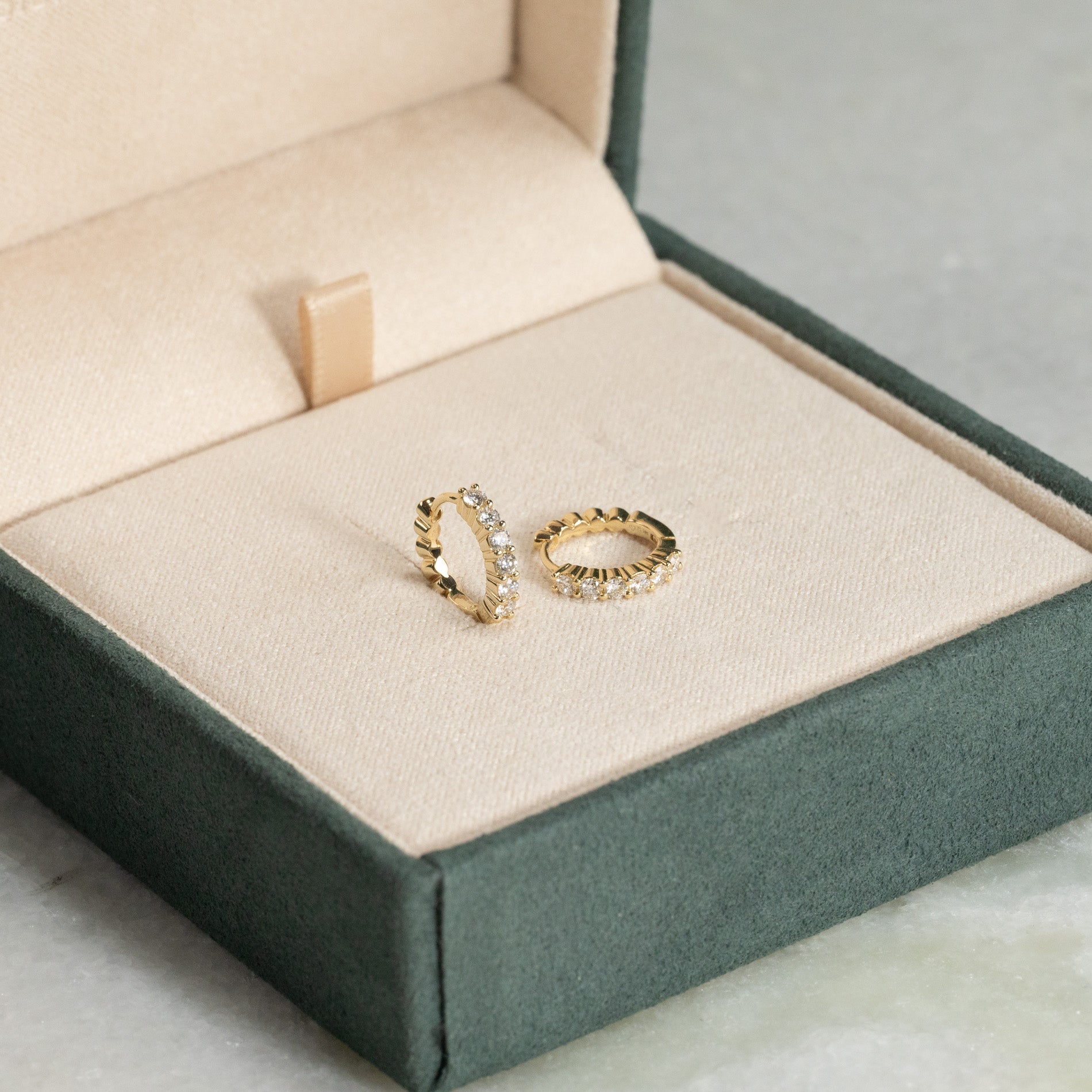Klassiske diamantvreoler laget med lab-dyrkede diamanter.