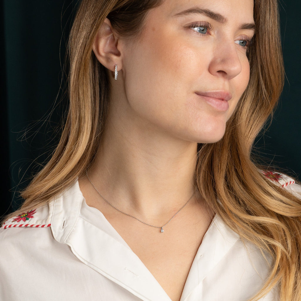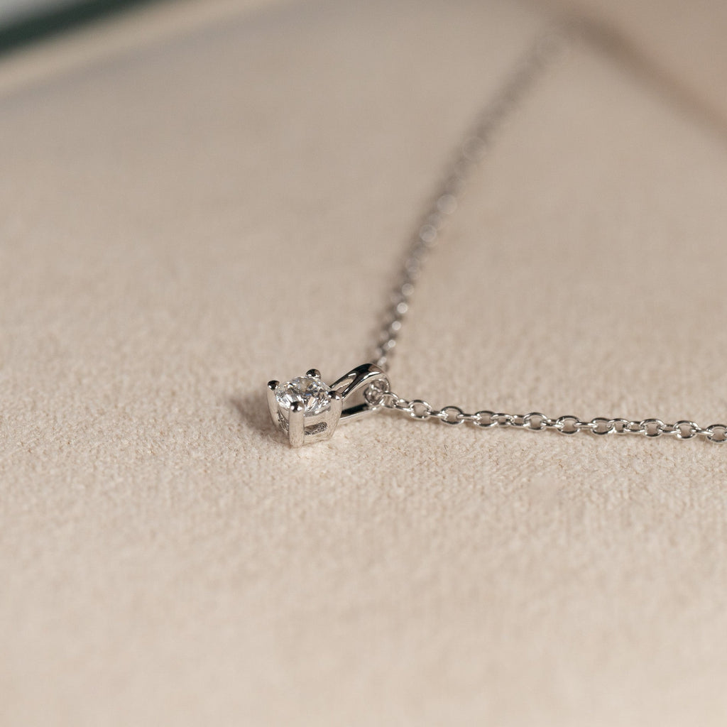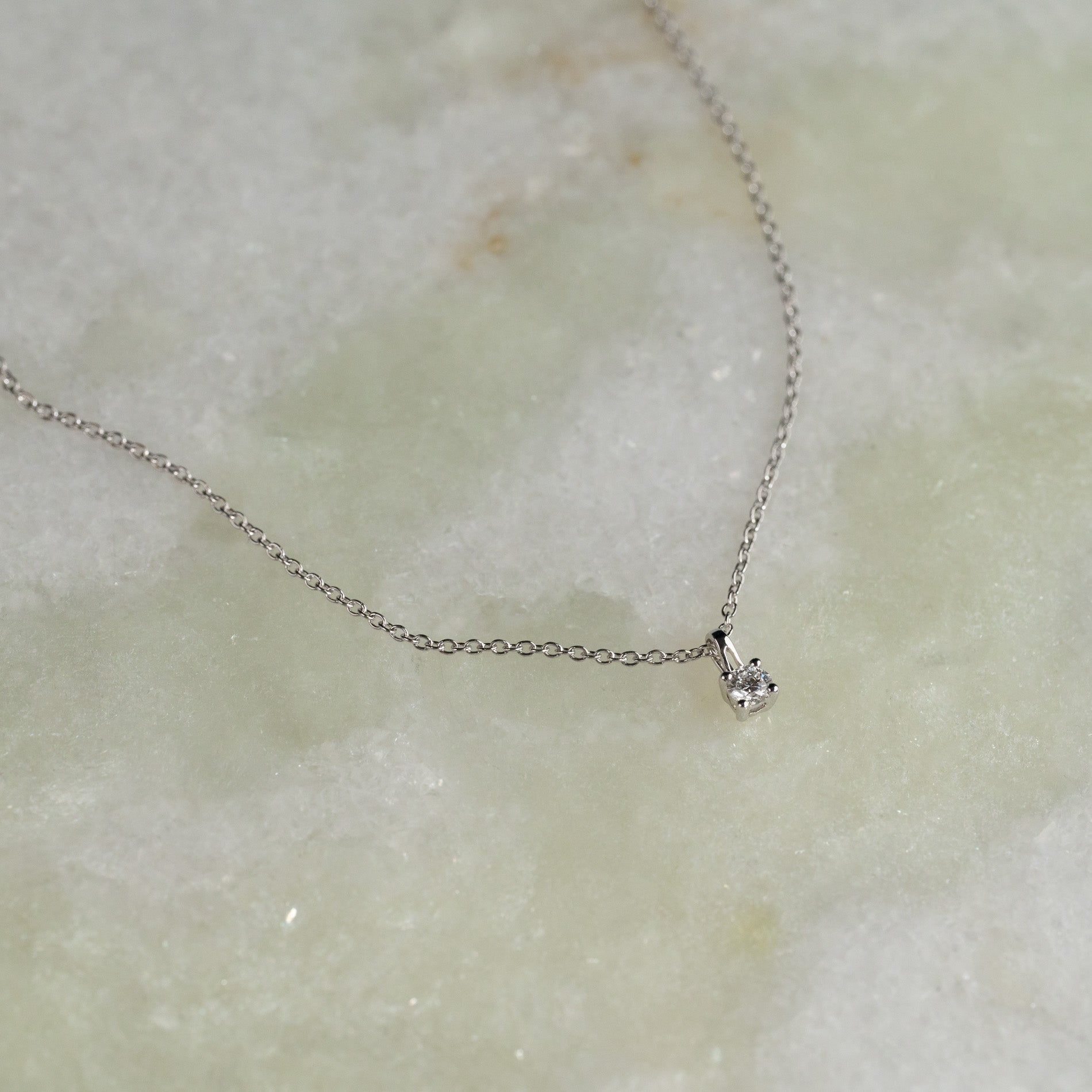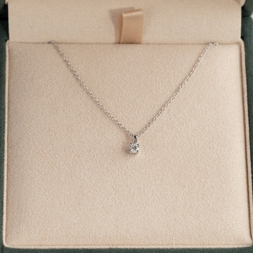 Solitaire diamant vedheng I 14 kt. Hvittgull med en 0,1 ct. brilliant-slipt lab-grown diamant.