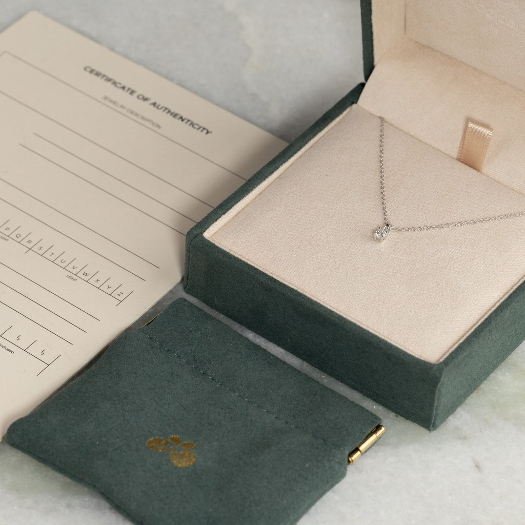 Alle diamantsmykkene våre fra vår Diamantkolleksjon kommer i vår eksklusive innpakning