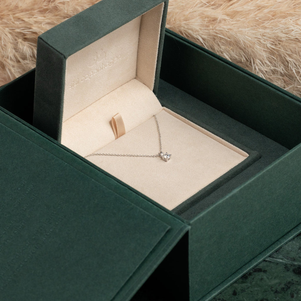 Alle diamantsmykkene våre fra vår Diamantkolleksjon kommer i vår eksklusive innpakning