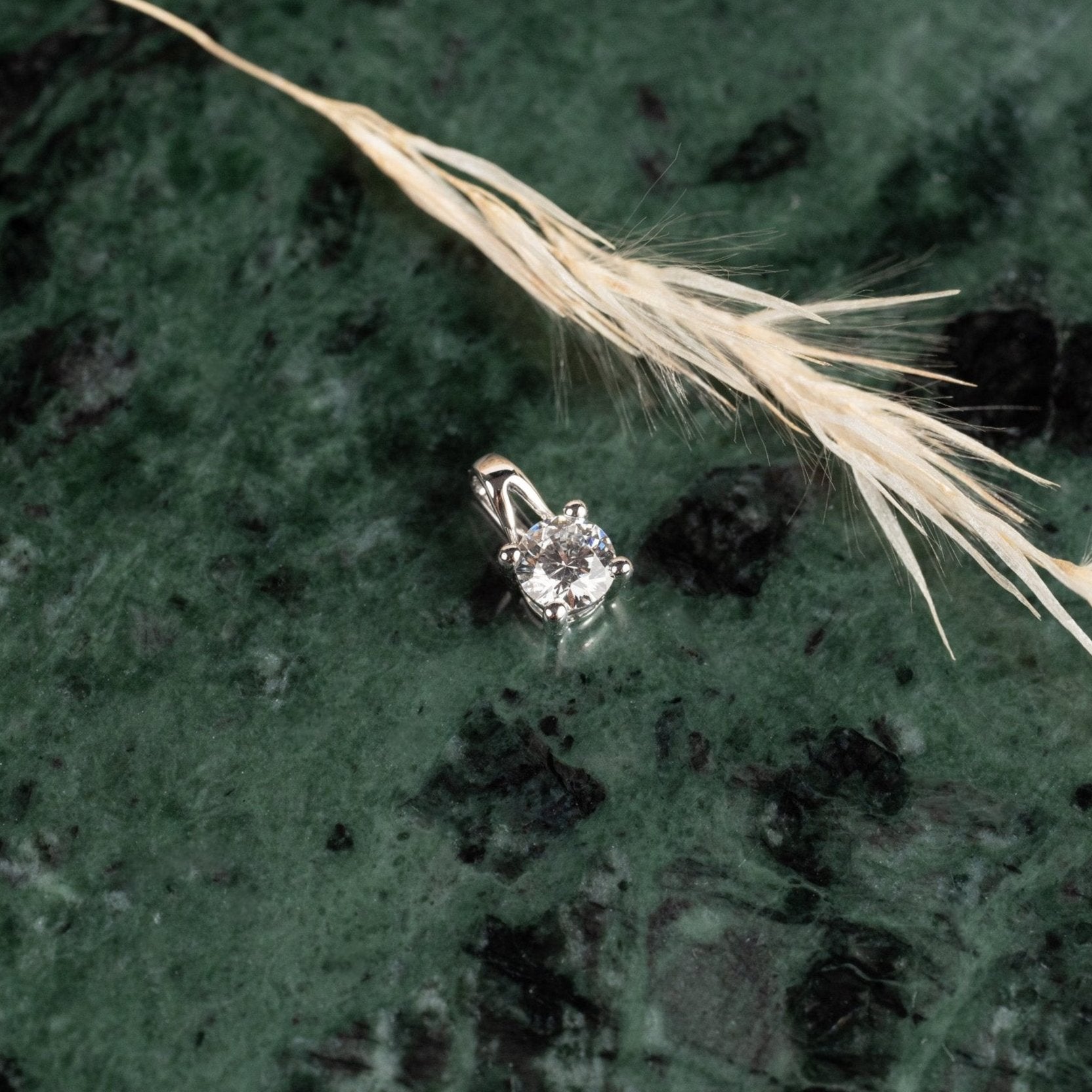 Vedhenget er laget av 14 karat massiv hvittgull med en etisk skapt laboratorie diamant som har en vekt på 0,25 ct. Diamantene har fargen E/F (River/Top Wesselton) og klarheten VVS.