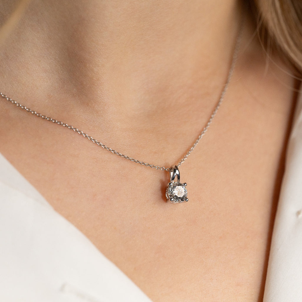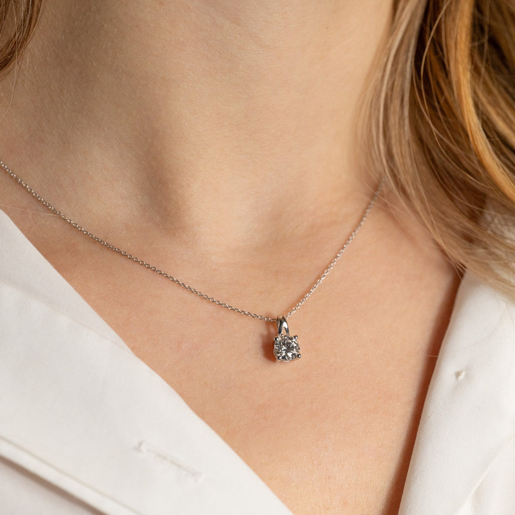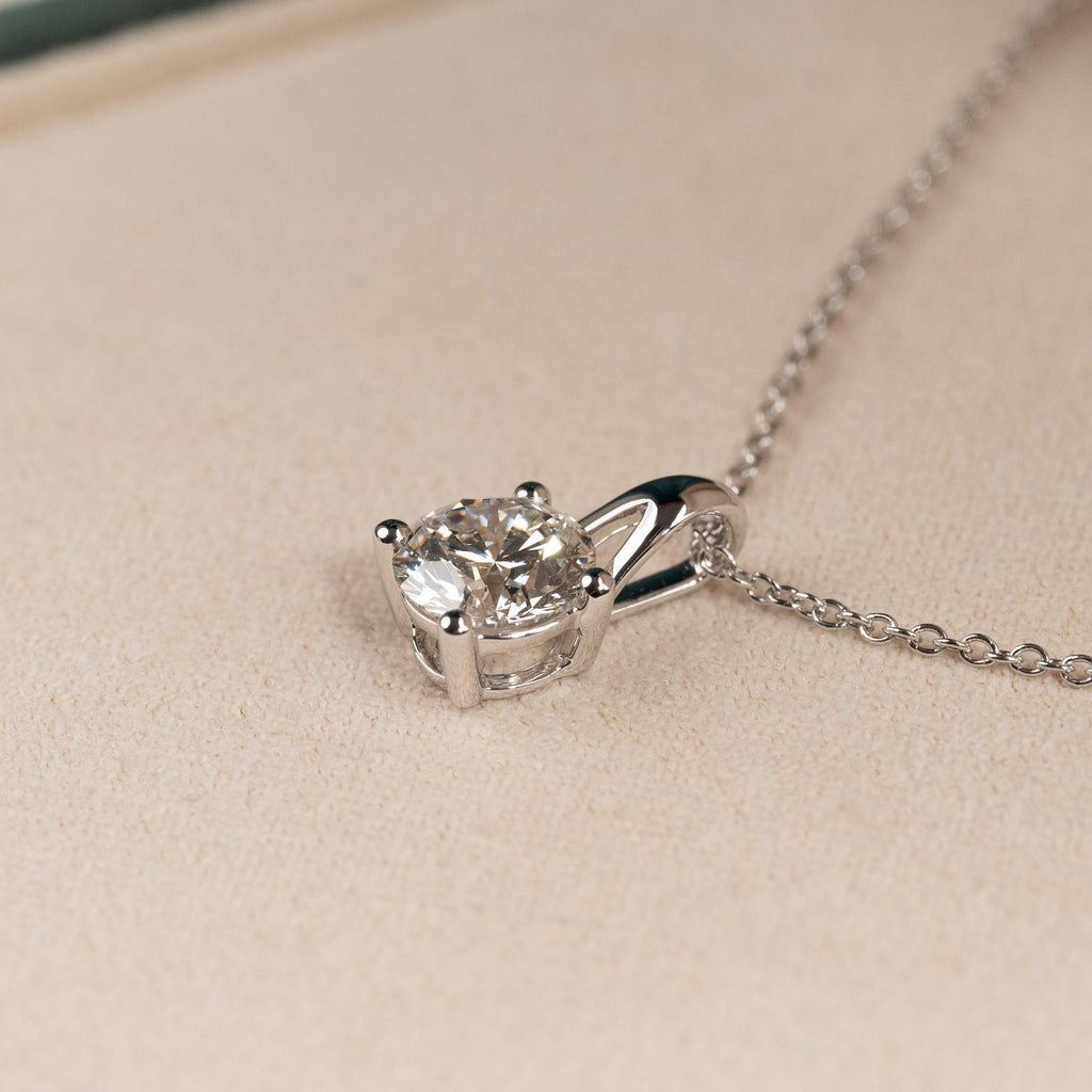 Solitaire diamant vedheng i 14 kt. hvittgull med en 1,0 ct. Brilliant -slepet lab-grown diamant.