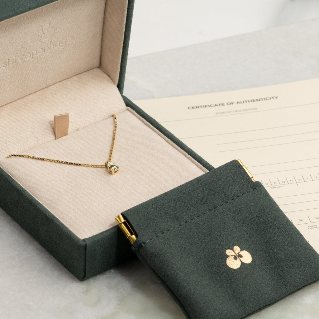 Smykket kommer i vår eksklusive Diamond Collection-eske med et flot smykkeskrin, Sisi Copenhagen Certificate of Authenticity og pouch. Esken er også perfekt, hvis smykket skal gis som gave.