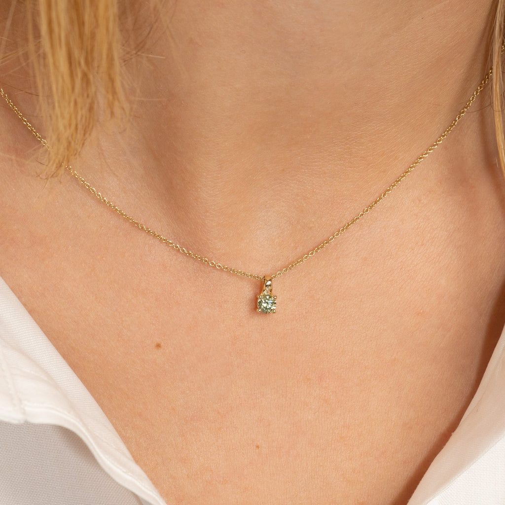 PRONG SOLITAIRE OCEAN GREEN DIAMOND PENDANT - 0.25ct - YG