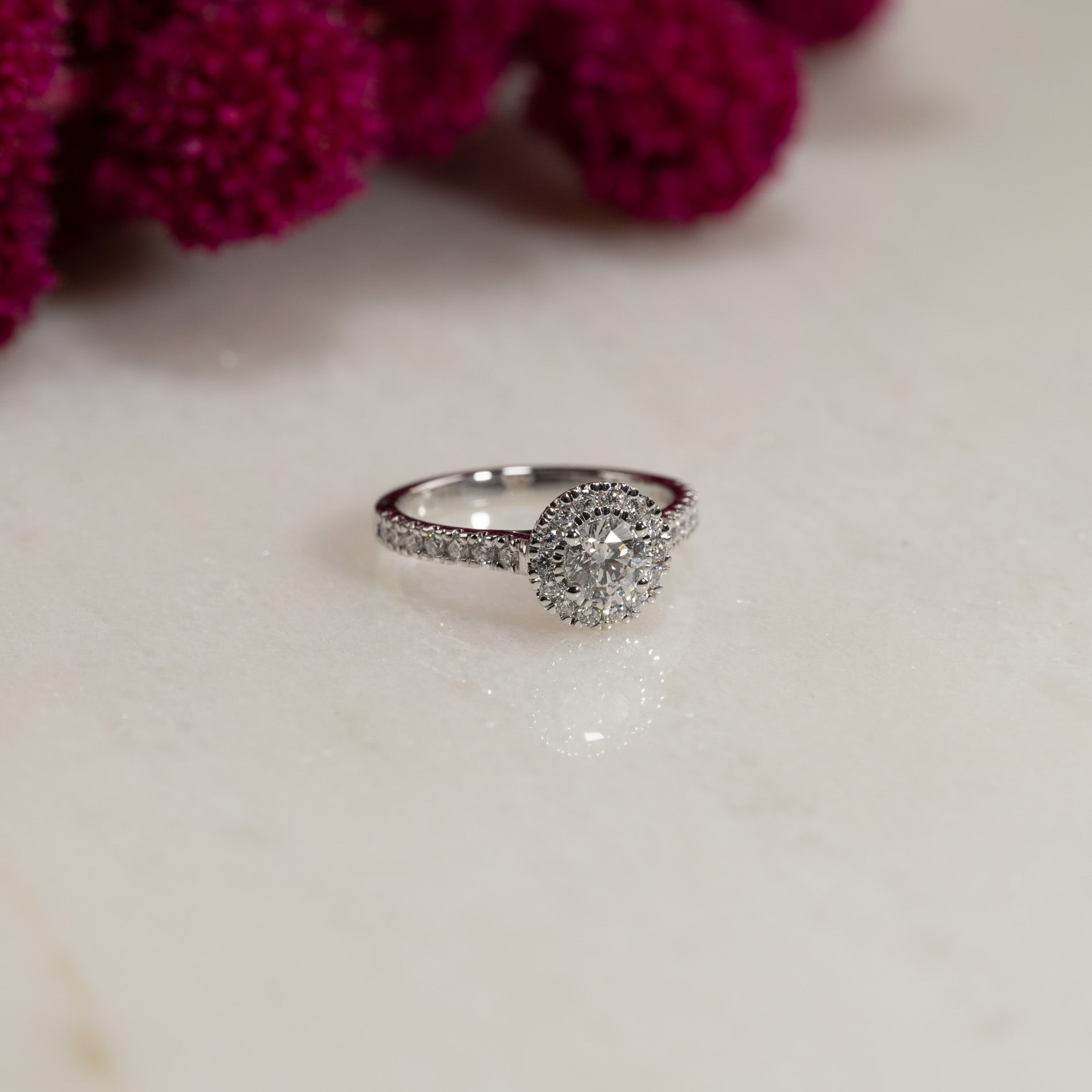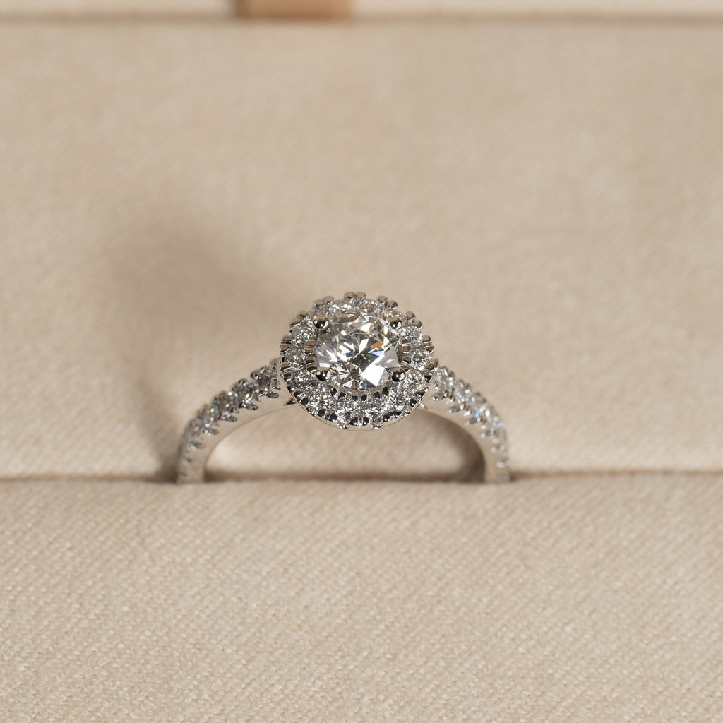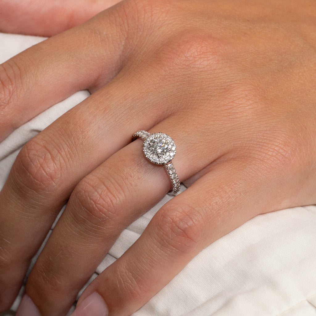 ROUND HALO ALLIANCE DIAMOND RING - 0.85ct - WG