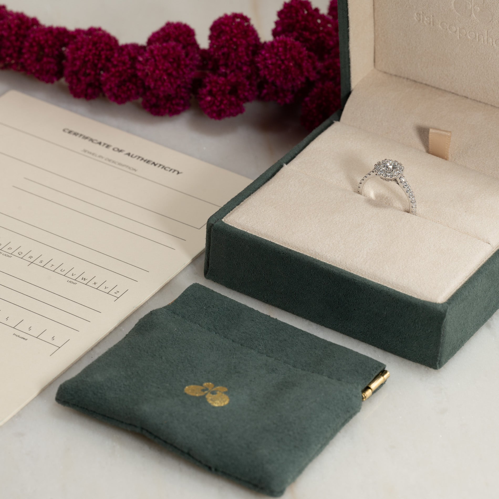 Sertifikatet inneholder all relevant og spesifikk informasjon om smykket, inkludert de 4 C'ene.
