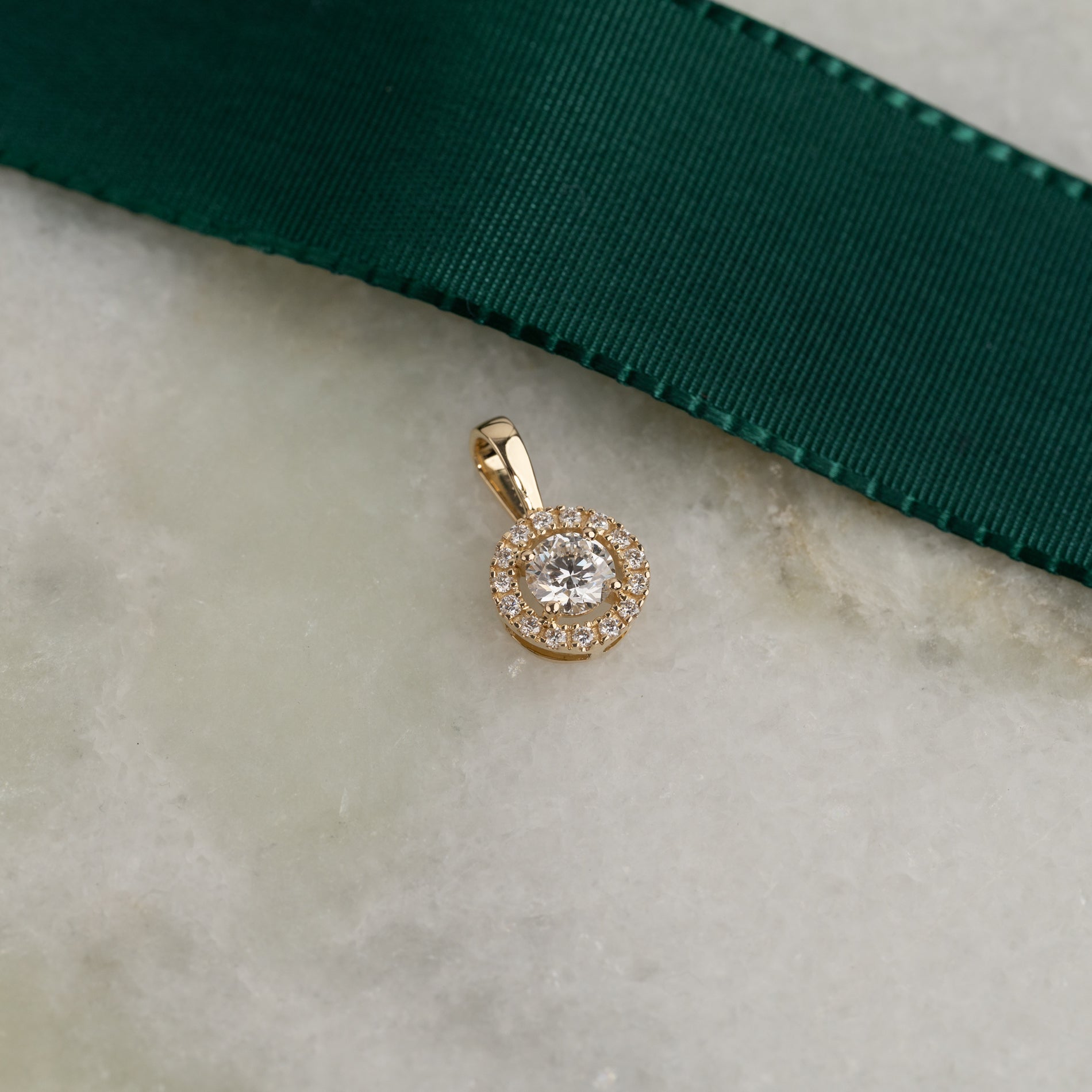 Anhenget er laget med laboratoriedyrkede diamanter. Diamanten har fargen E-F (River) og klarheten VVS. Smykket er laget med omtanke; diamantene er produsert blant annet med solenergi, og gullet er 100% sertifisert resirkulert.