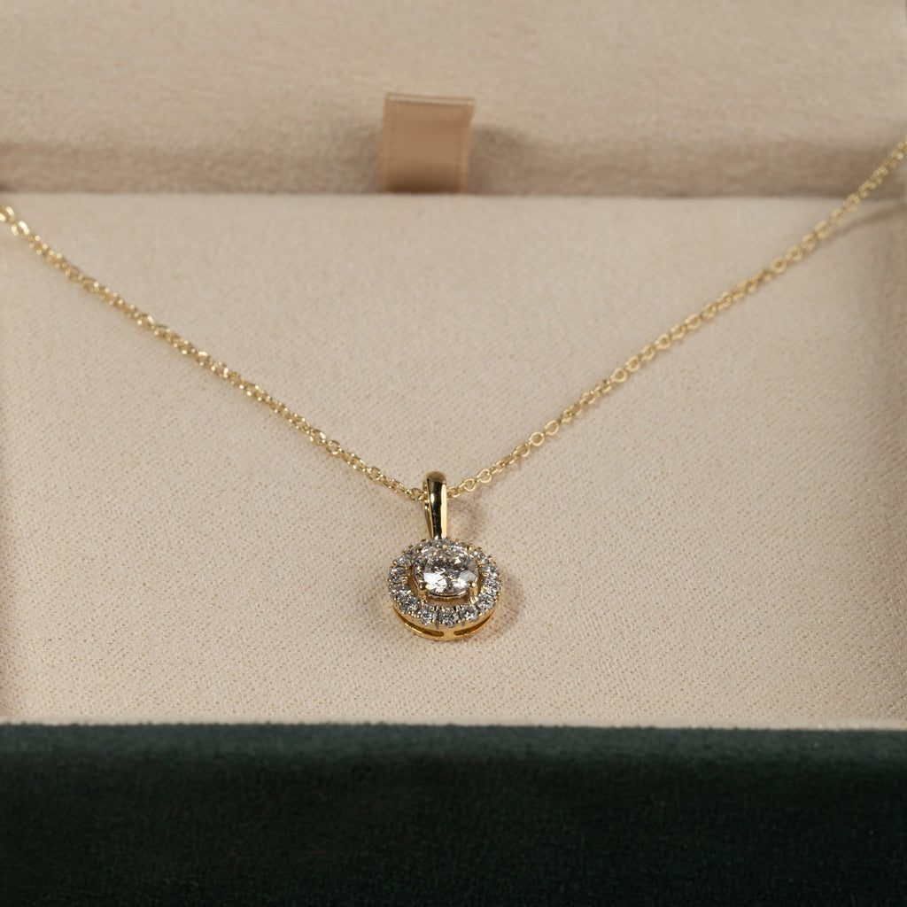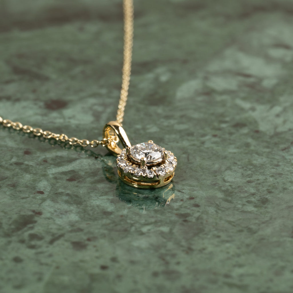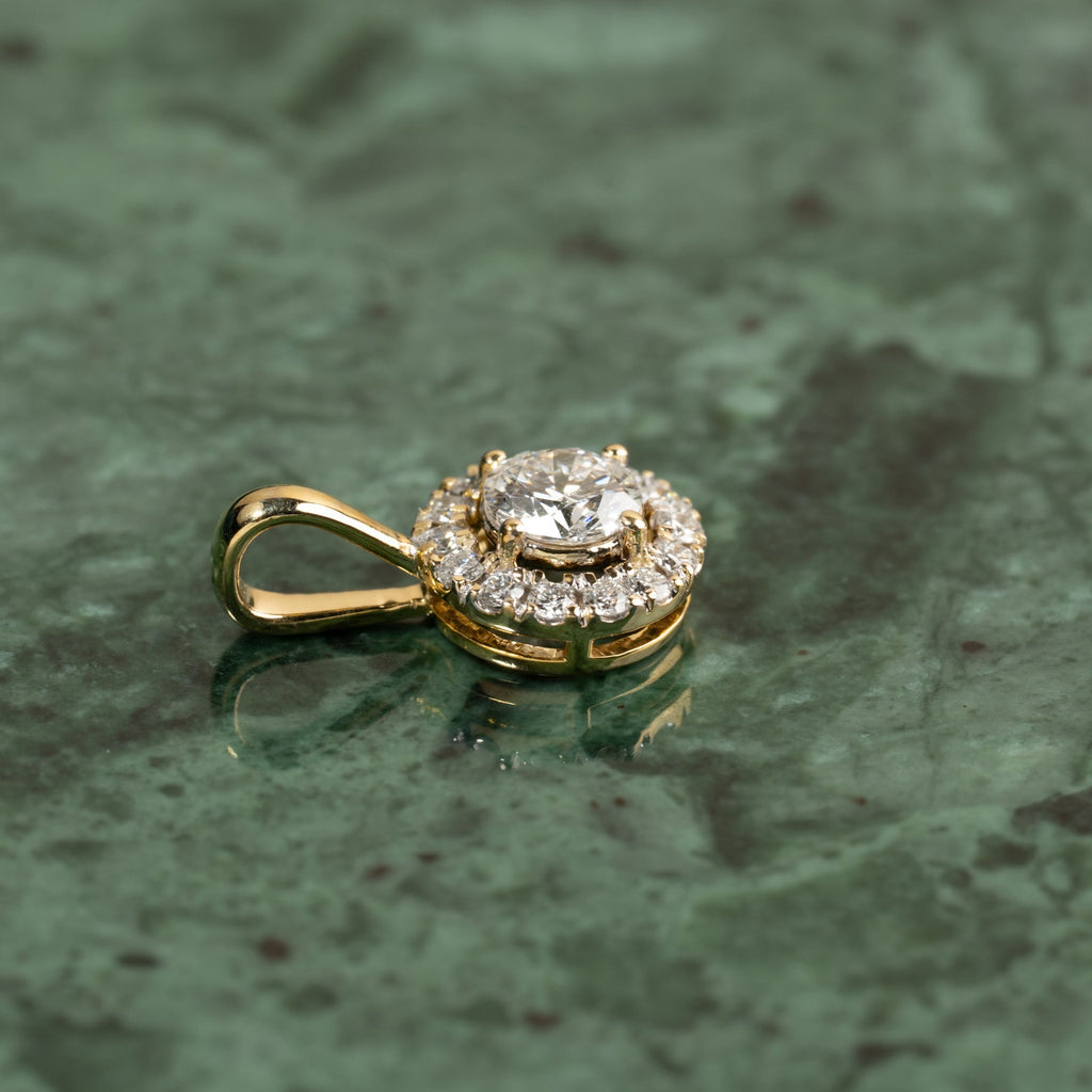 ROUND HALO DIAMOND PENDANT - 0.5ct - YG