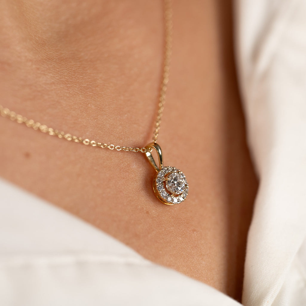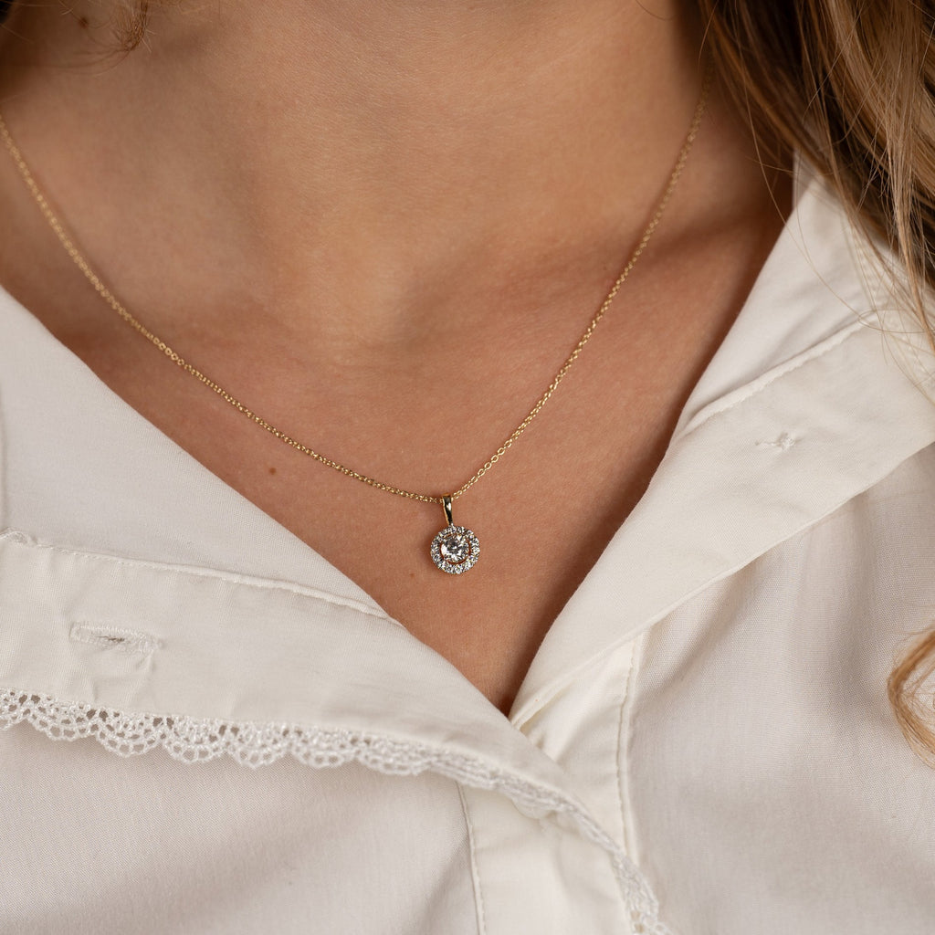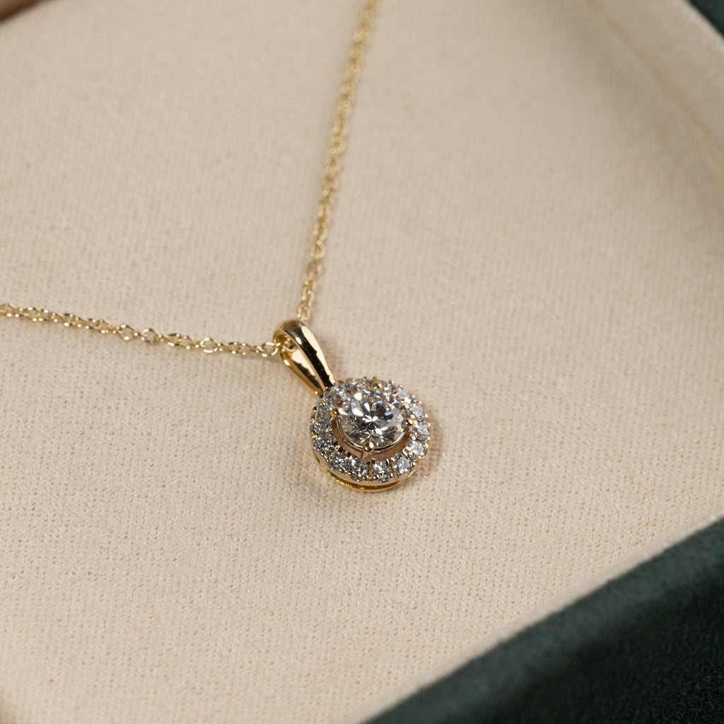 ROUND HALO DIAMOND PENDANT - 0.5ct - YG