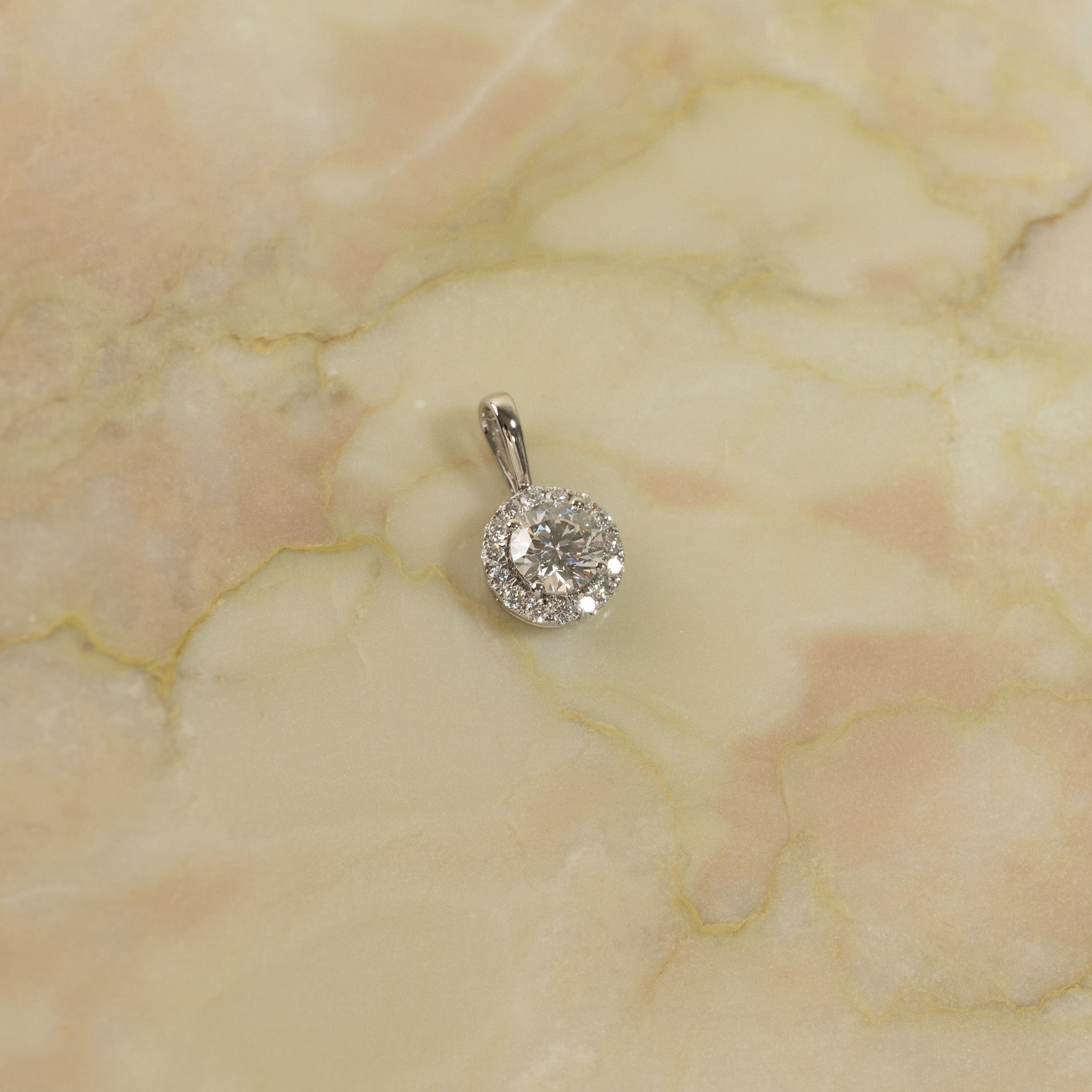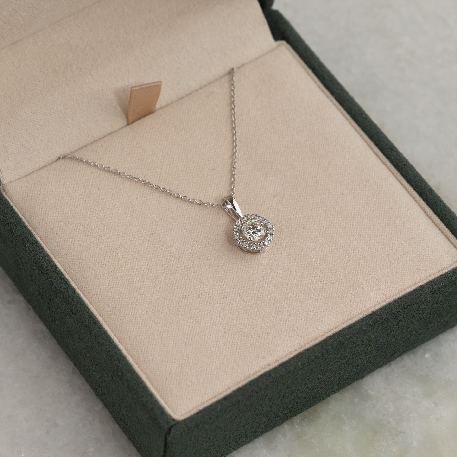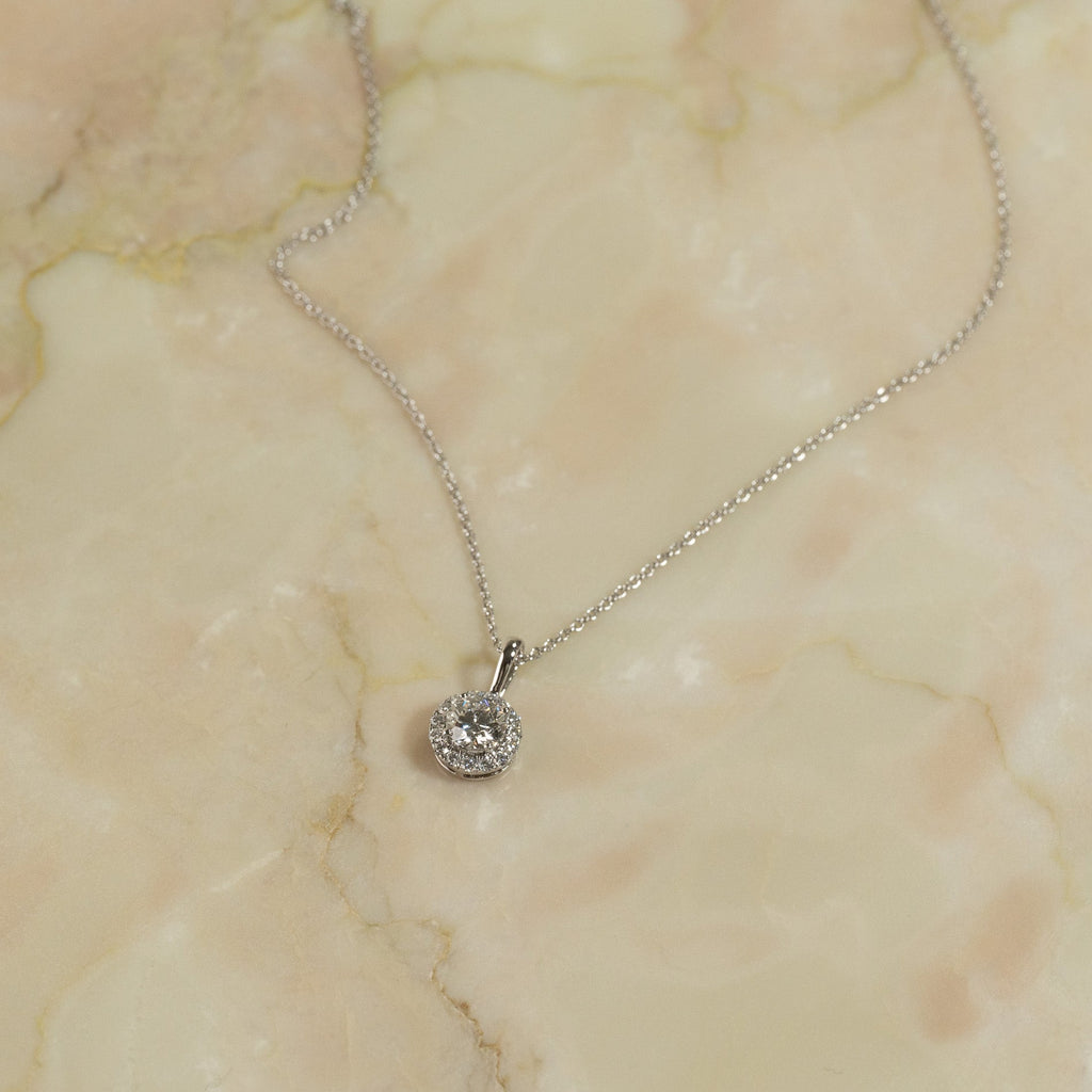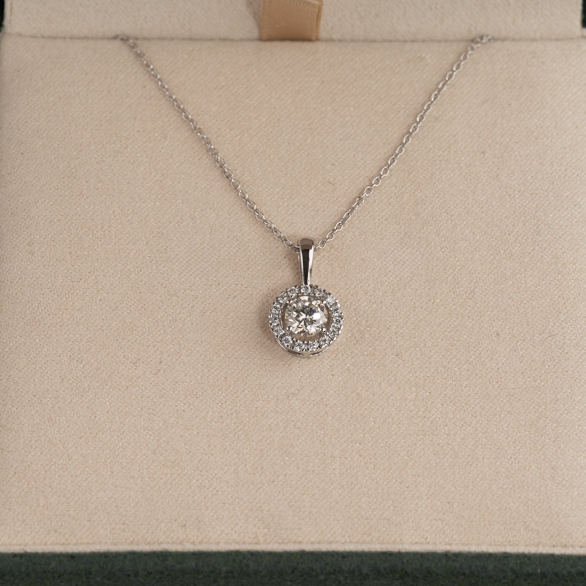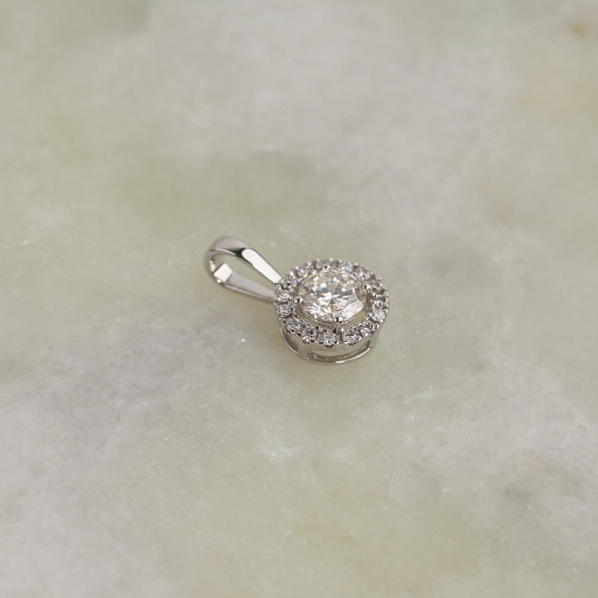 ROUND HALO DIAMOND PENDANT - 0.66ct - WG