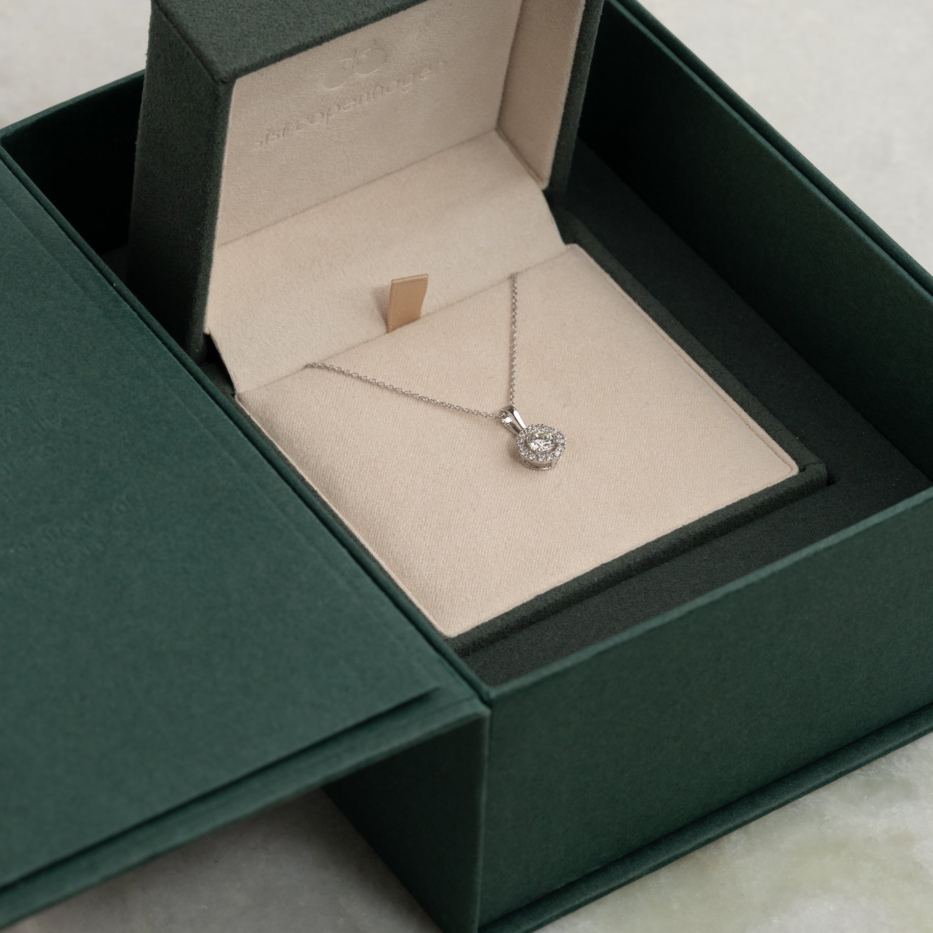 Smykket kommer i vår eksklusive Diamond Collection-boks med en flott smykkeske, sertifikat og smykkepose. Boksen er også perfekt hvis smykket skal gis som gave.