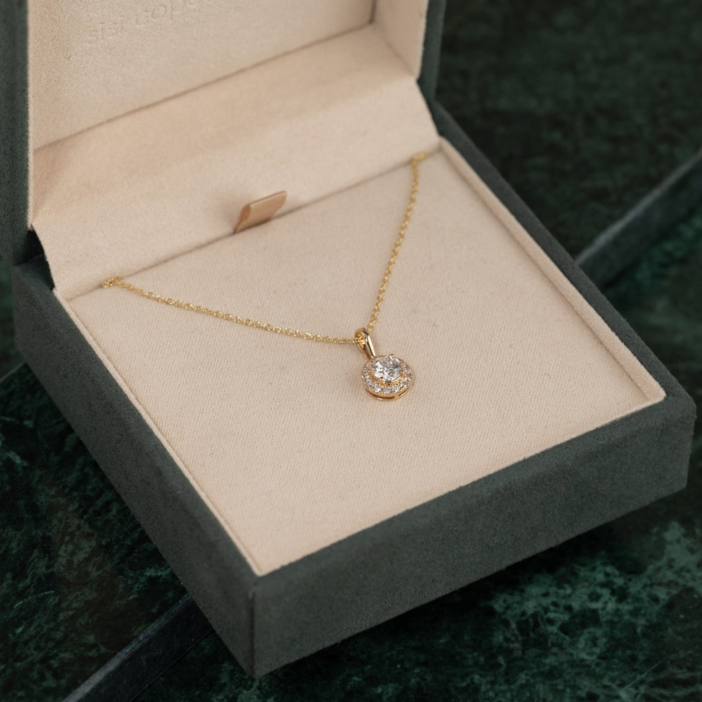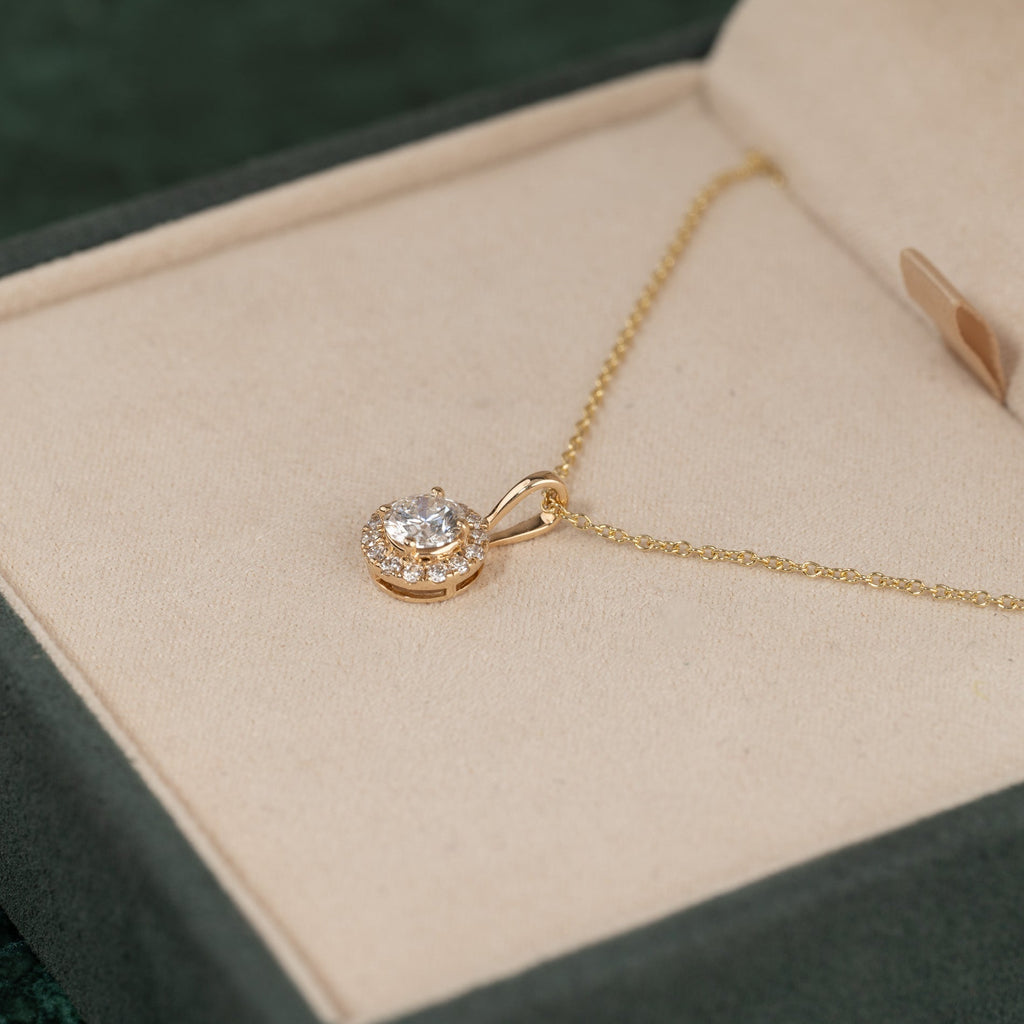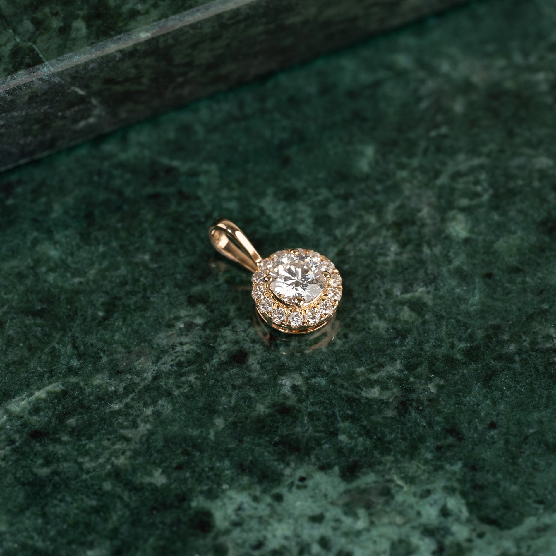 ROUND HALO DIAMOND PENDANT - 0.66ct - YG