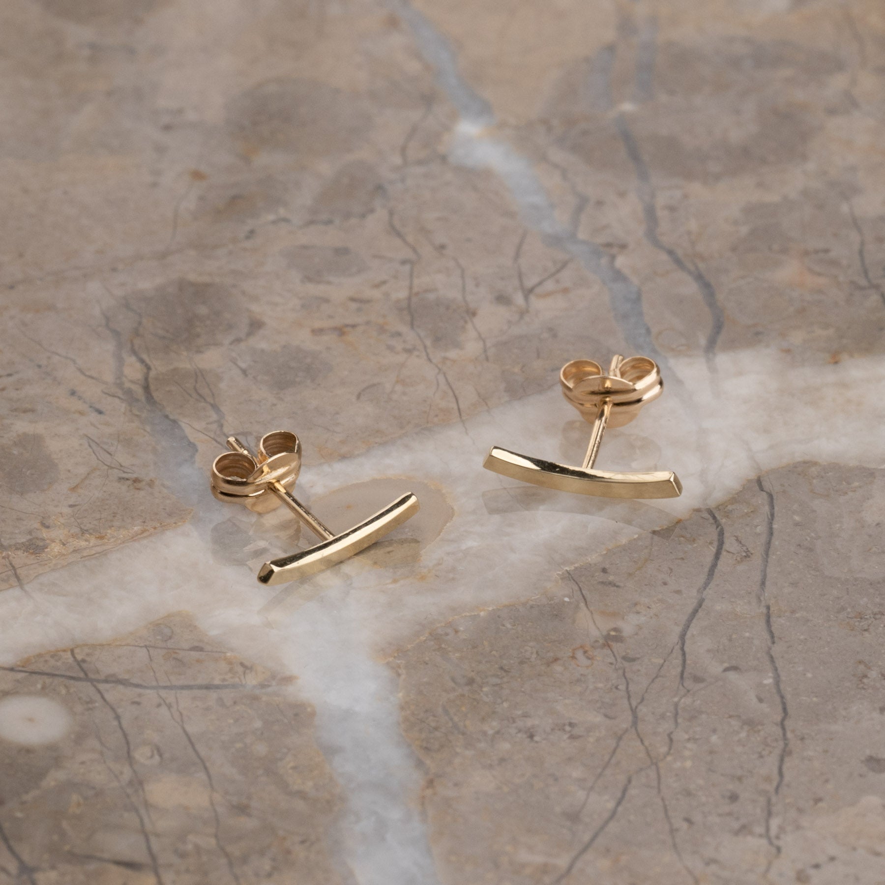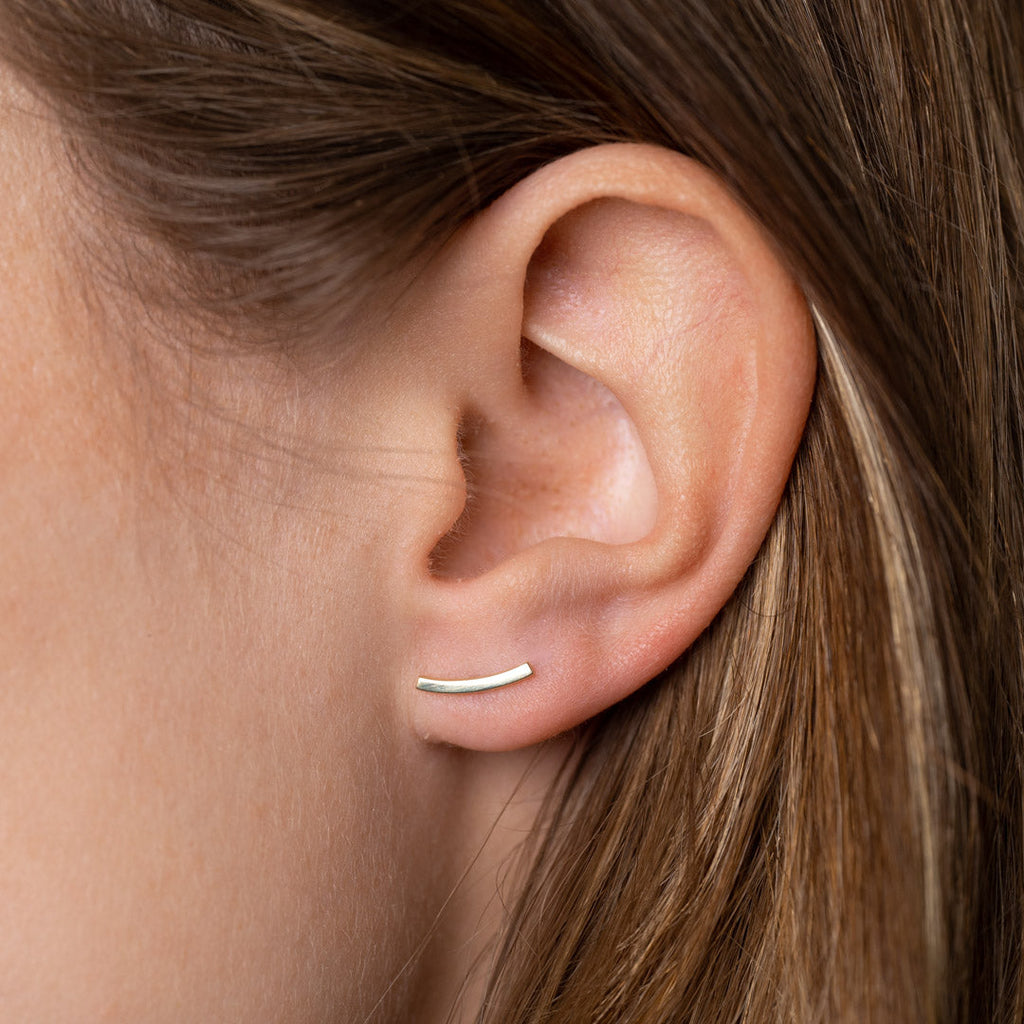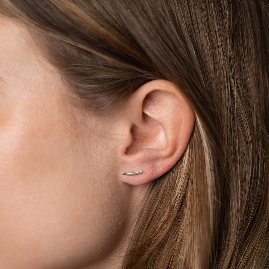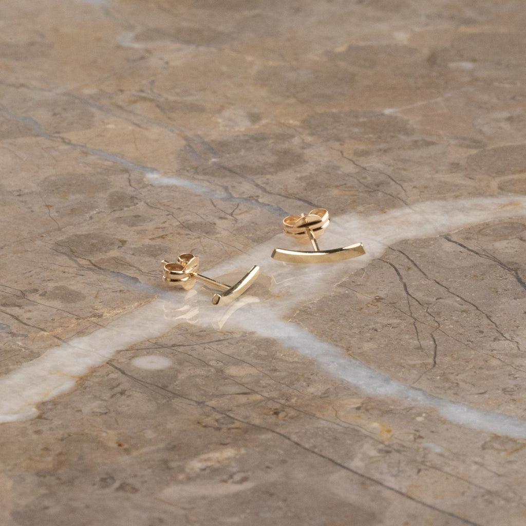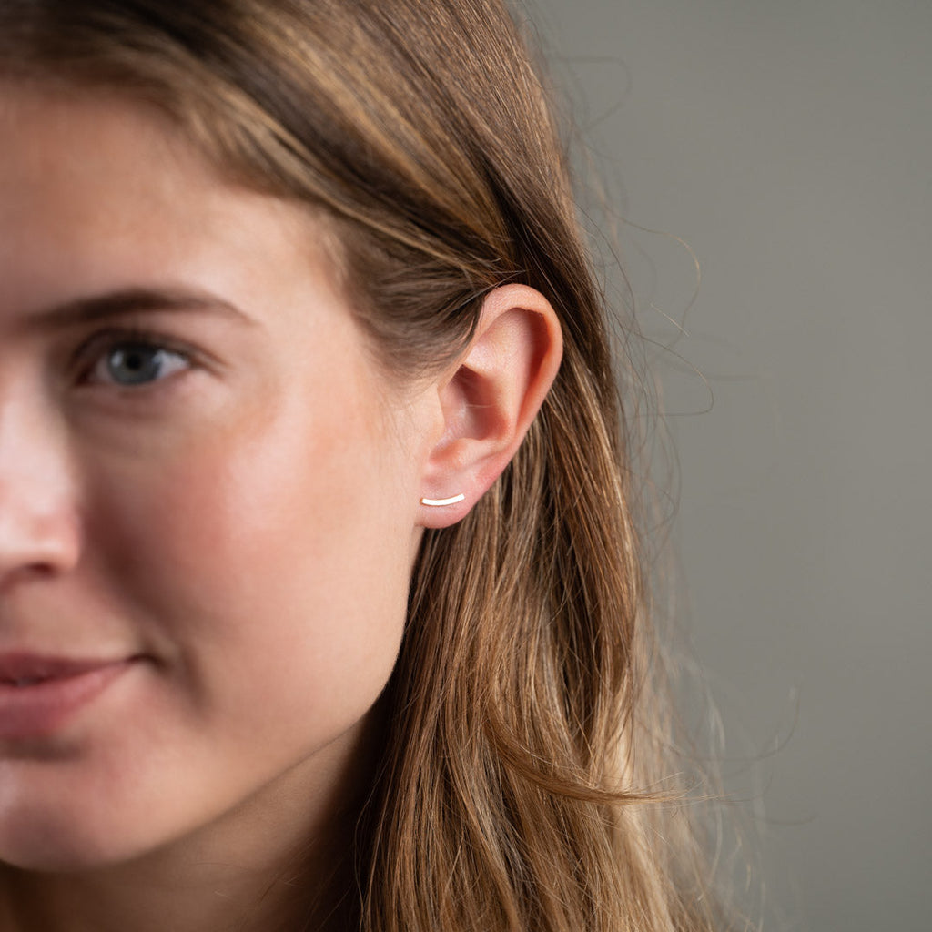 Våre øredobber Scarlett er laget av 100% resirkulert 9 karat massivt gull. De er designet som en buet linje. Den enkle utformingen kan styles slik at kurven følger konturen av øret. Øredobben kan også brukes i kombinasjon med andre øredobber hvis du har flere hull i ørene.