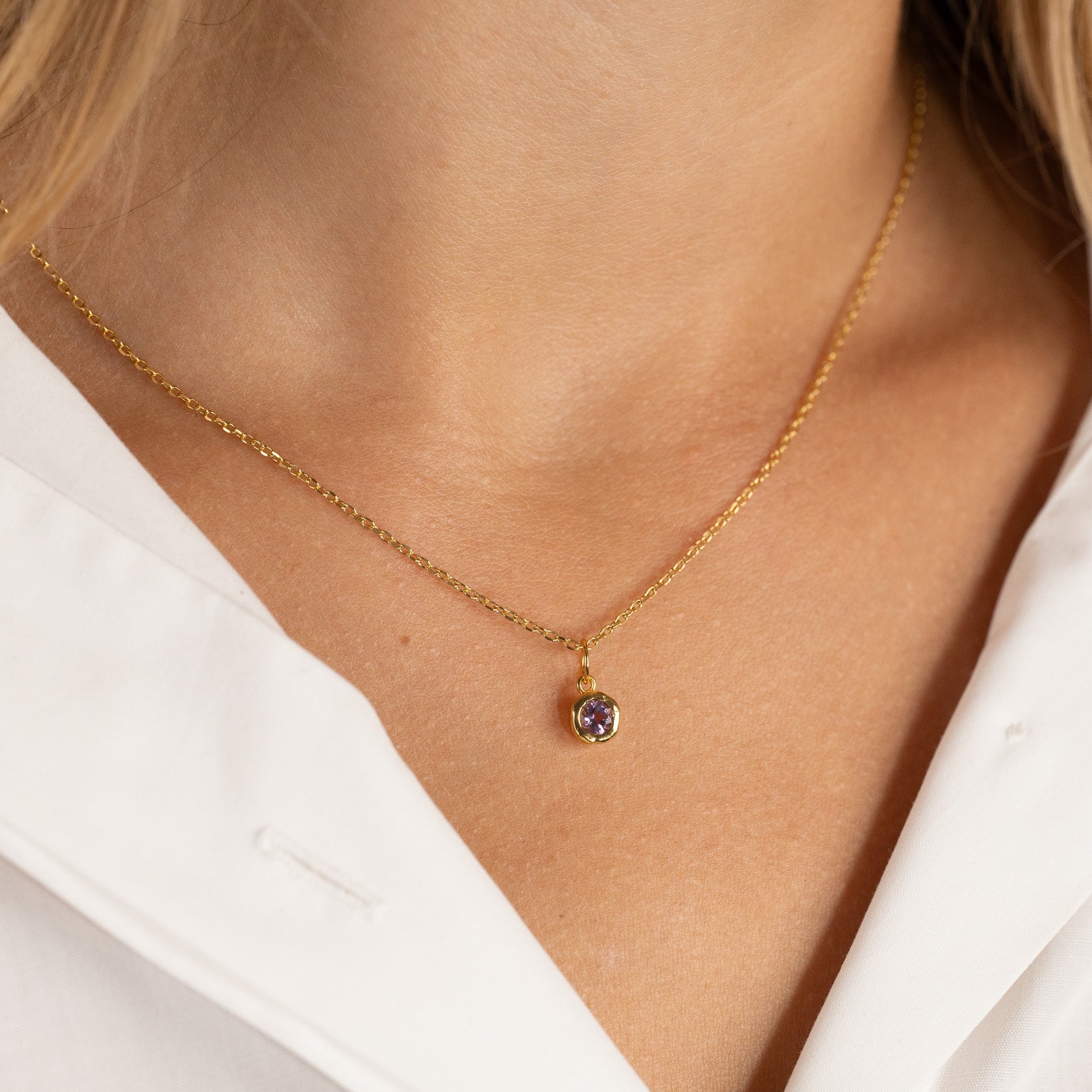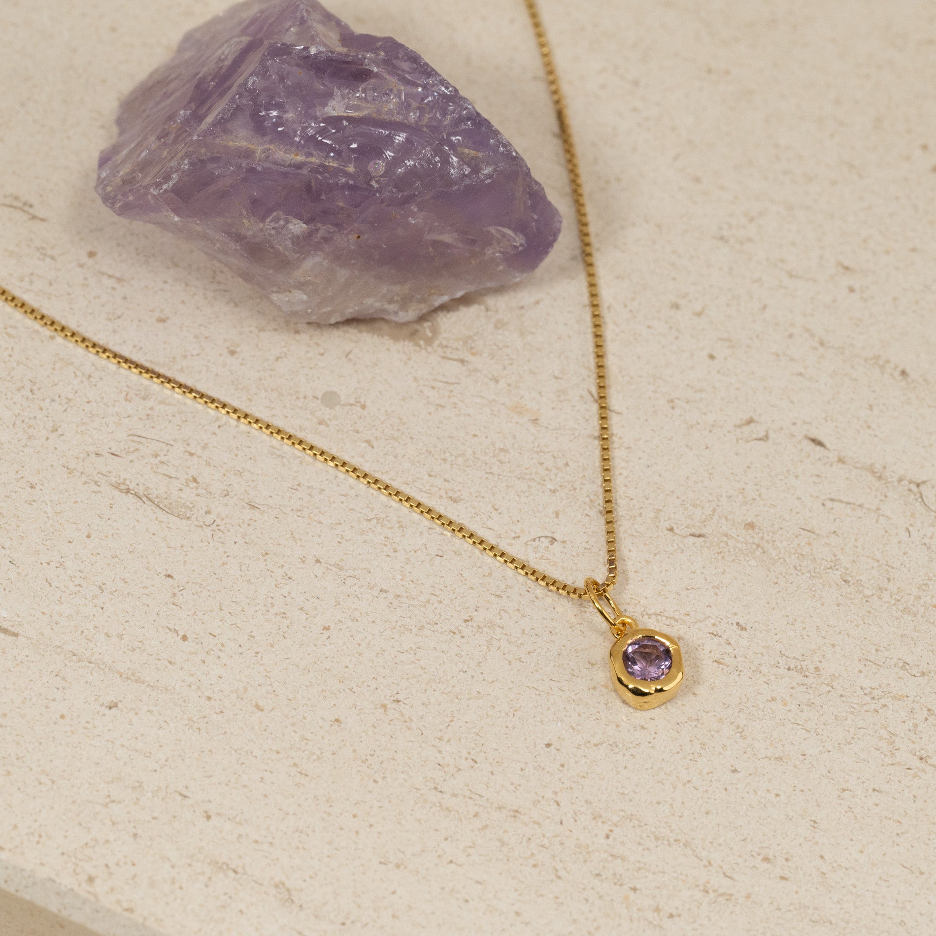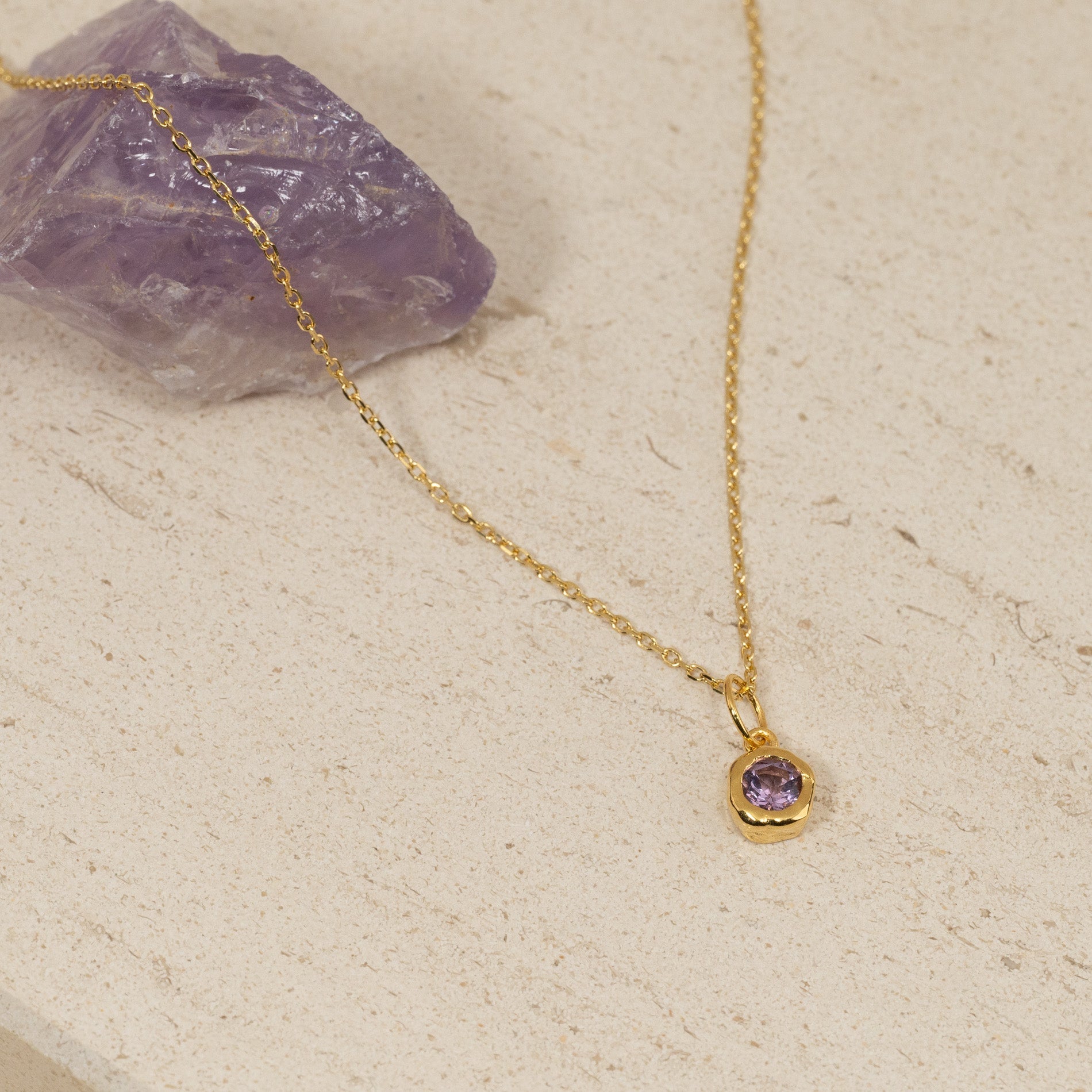 Halskjede anheng i 100% resirkulert 18 karat forgylt sterlingsølv med fasettslipt lilla ametyst.