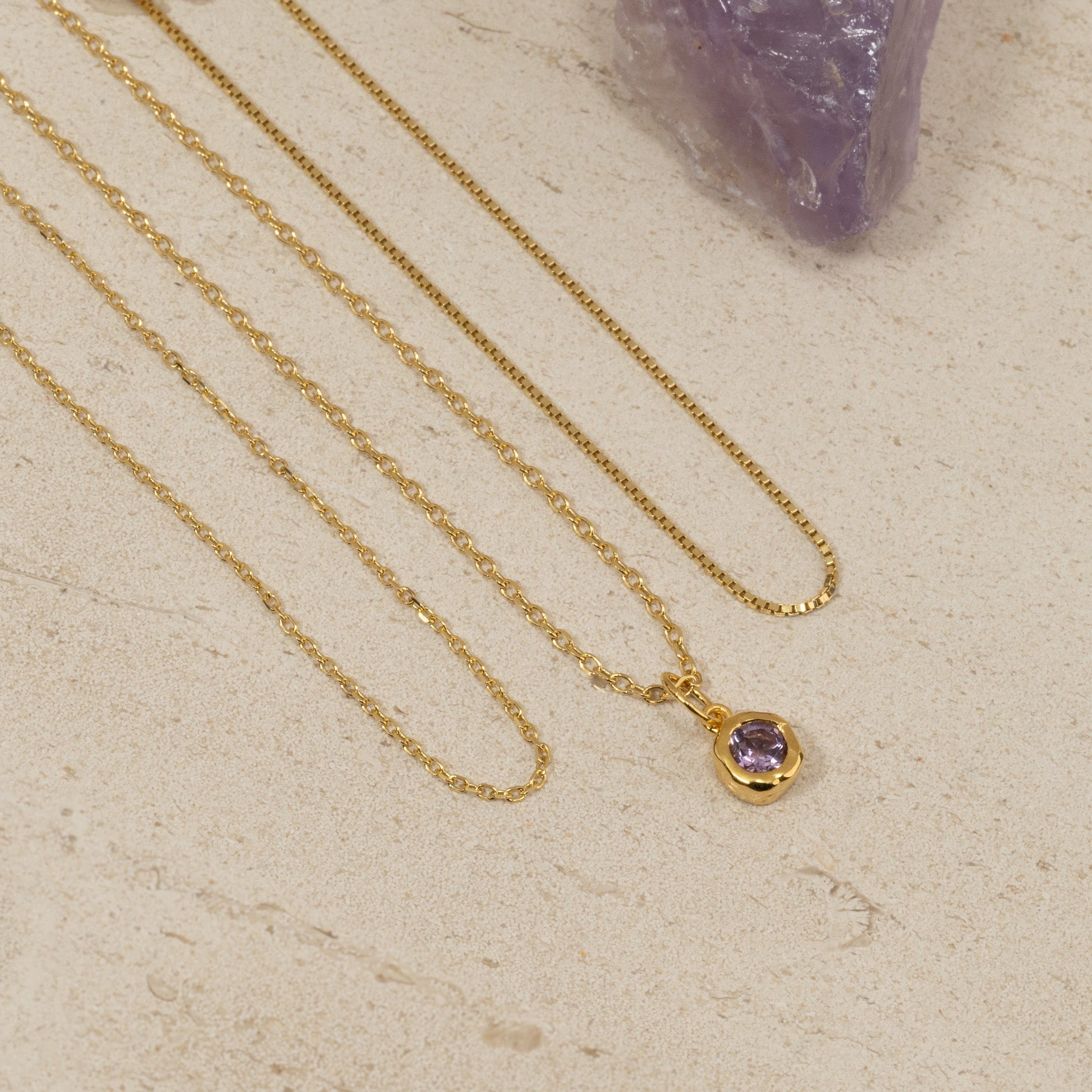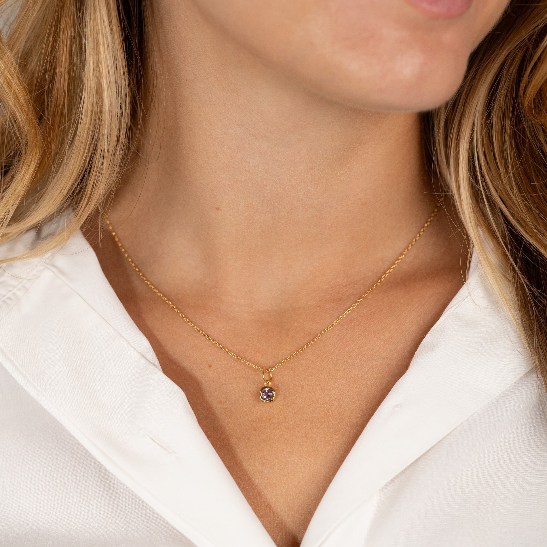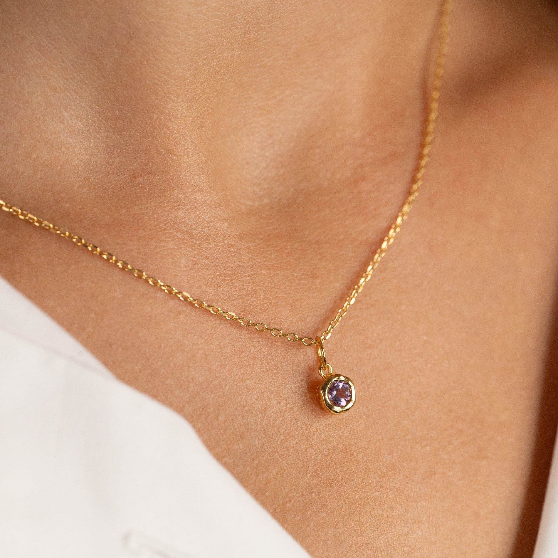 Halskjede anheng i 100% resirkulert 18 karat forgylt sterlingsølv med fasettslipt lilla ametyst.