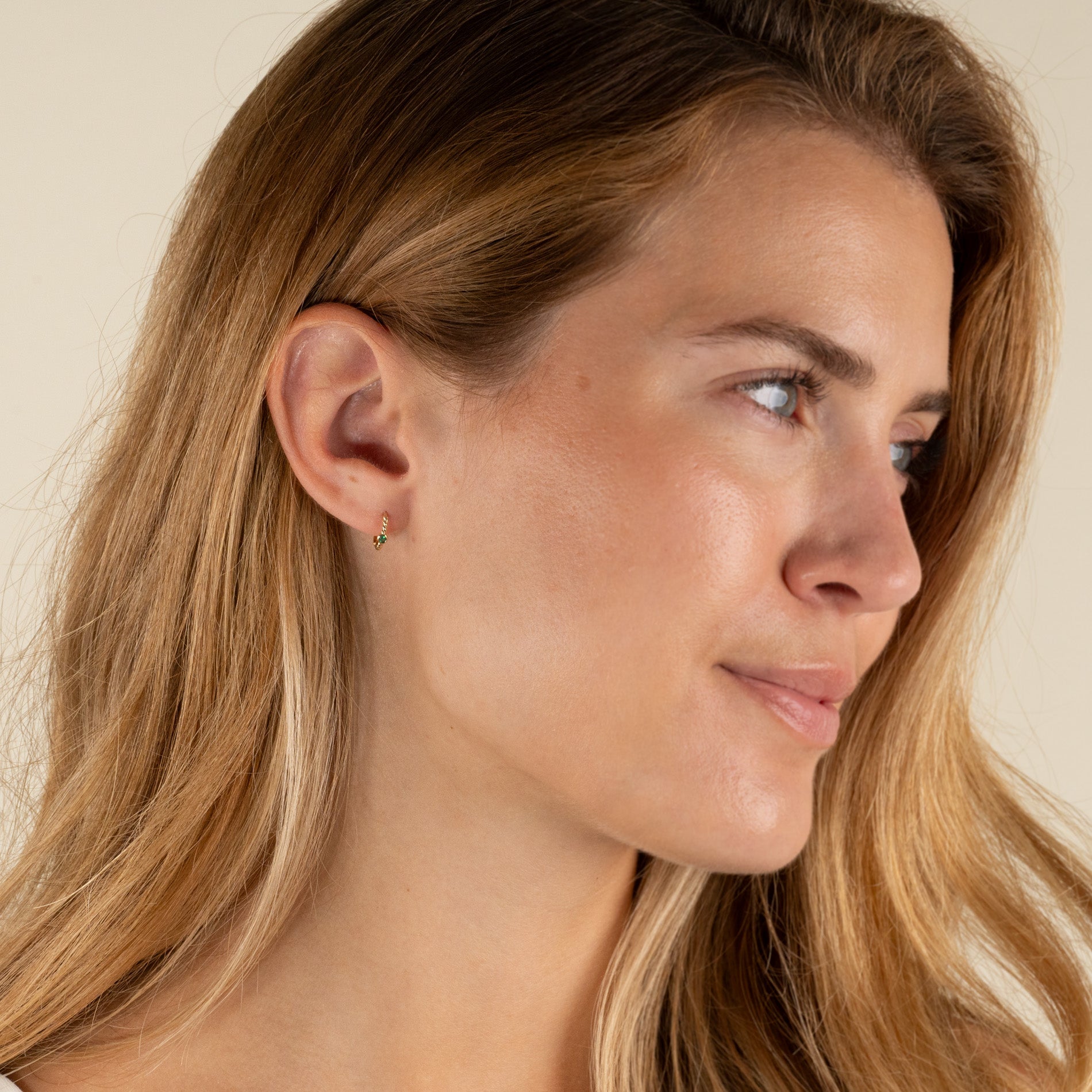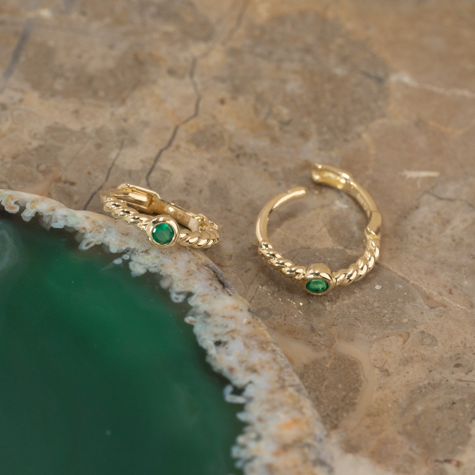 SIGRID GREEN AGATE SOLID GOLD CREOL EARRING