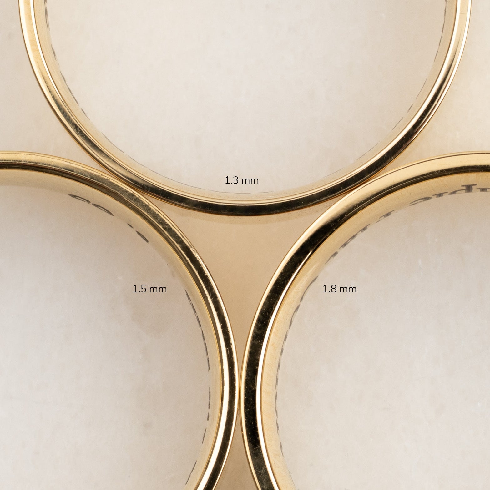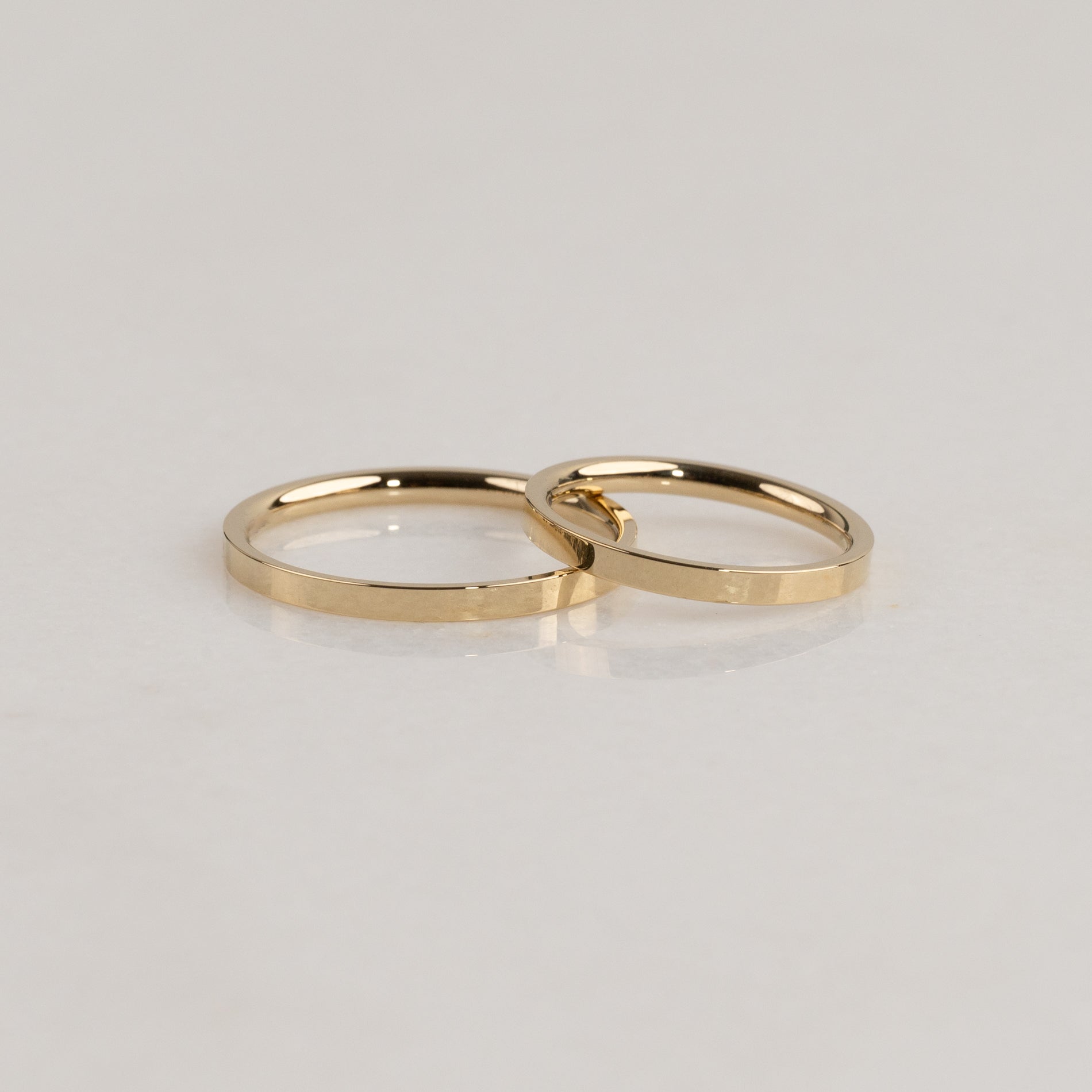 Ringen med en bredde på 2 mm er vår slankeste profil. I denne bredden anbefaler vi en tykkelse på 1,5 mm for å sikre balanserte proporsjoner og for at ringen ikke skal oppleves for spinkel, spesielt i ringstørrelser over 54.