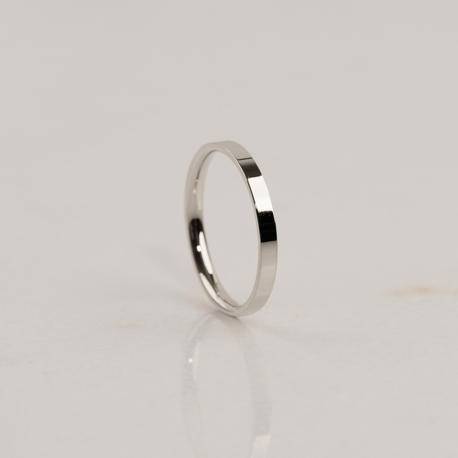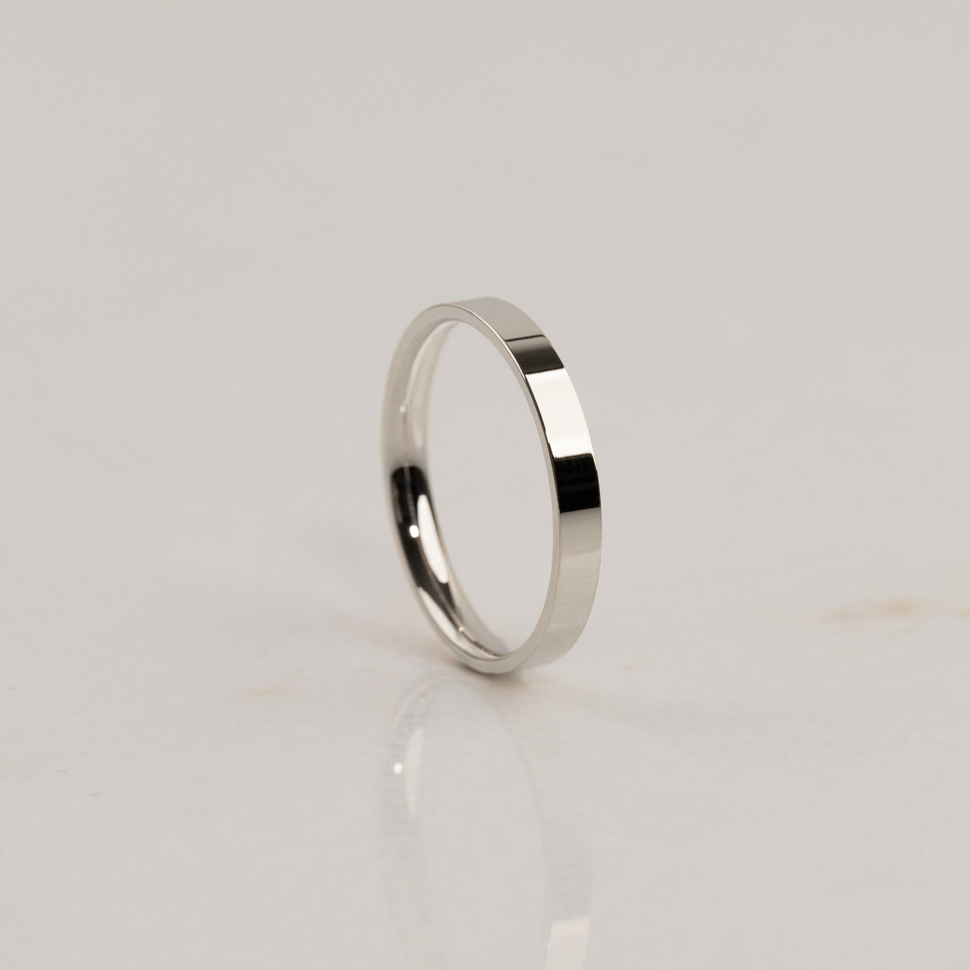 Vår Flat Comfort-profil er en moderne giftering med et minimalistisk uttrykk. Den flate yttersiden gir et markant uttrykk, mens den lett avrundede innsiden sikrer en komfortabel passform.