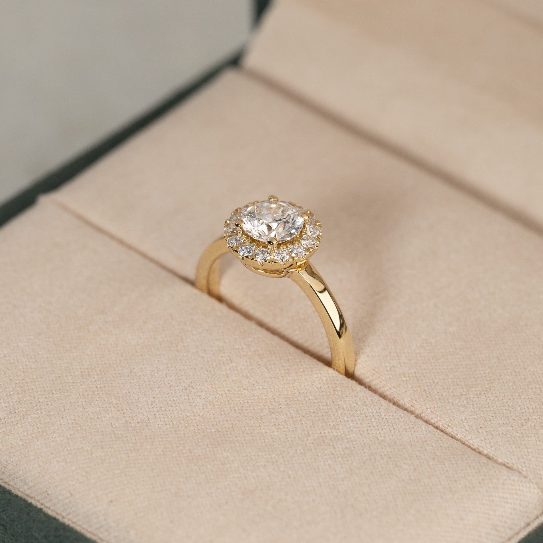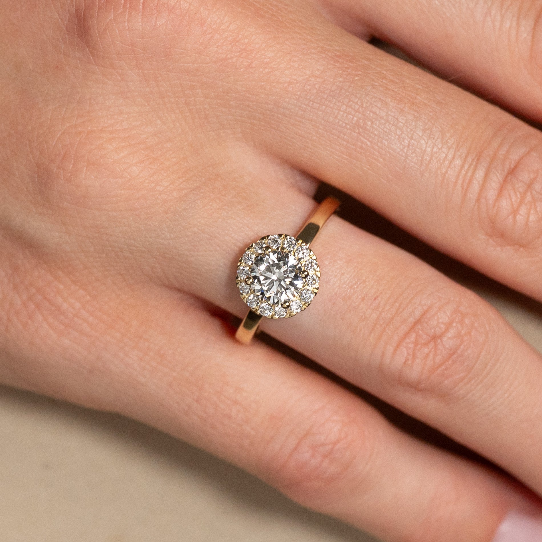 SIMPLE ROUND HALO LAB-DIAMOND RING - 1.25ct - YG