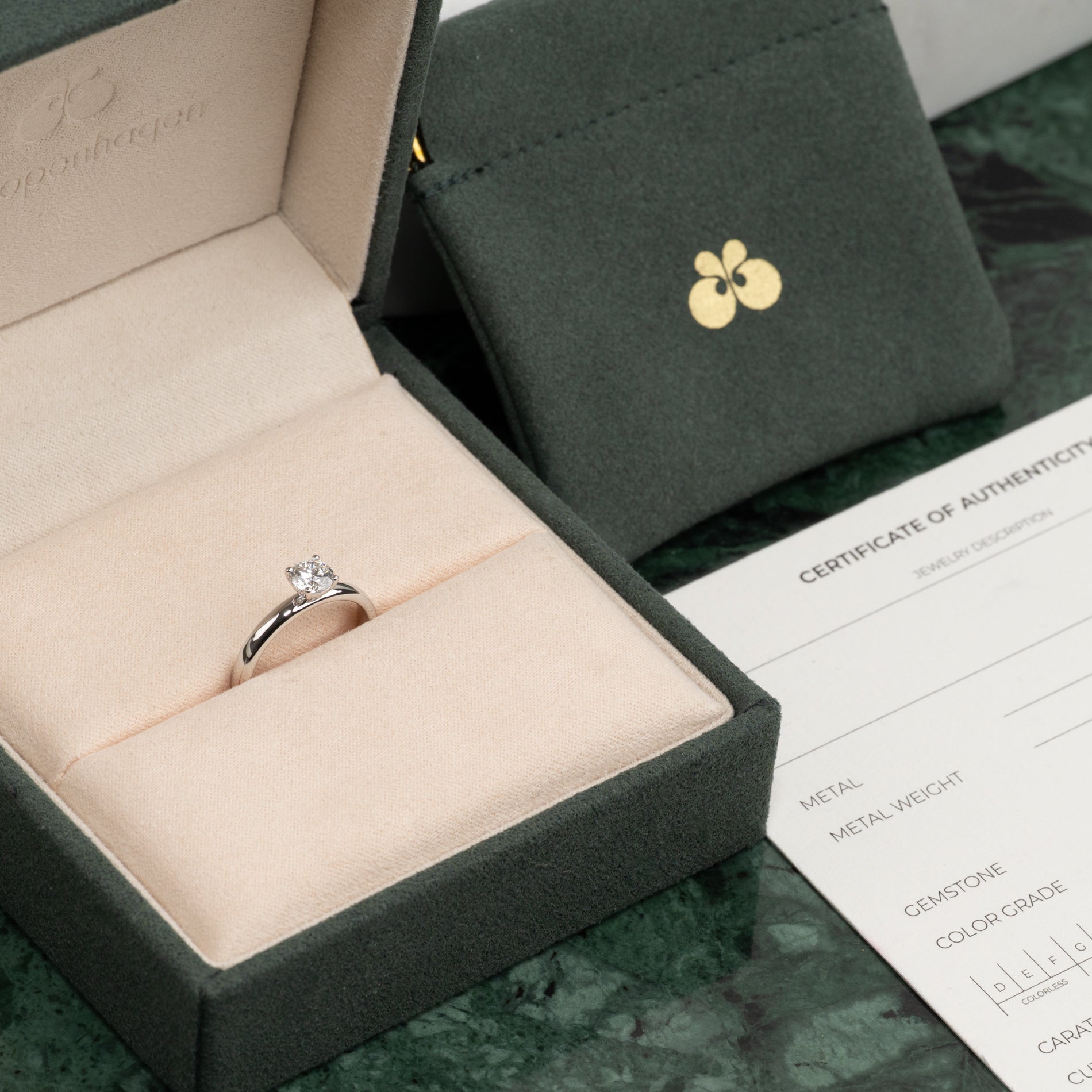 Ringen kommer i vår eksklusive Diamond Collection boks med en flott smykkeeske, diamantsertifikat og pouch. Boksen er også perfekt om smykket skal gis i gave.
